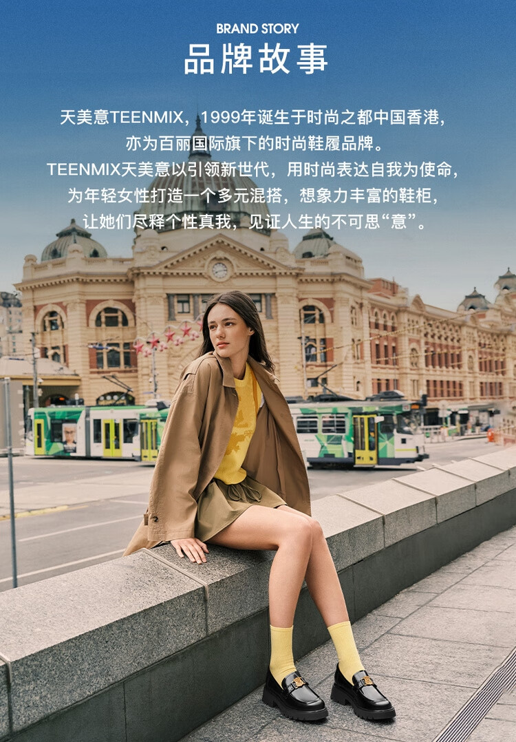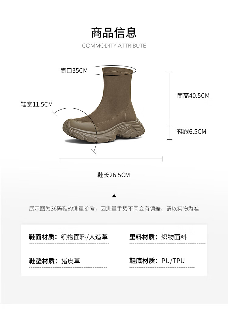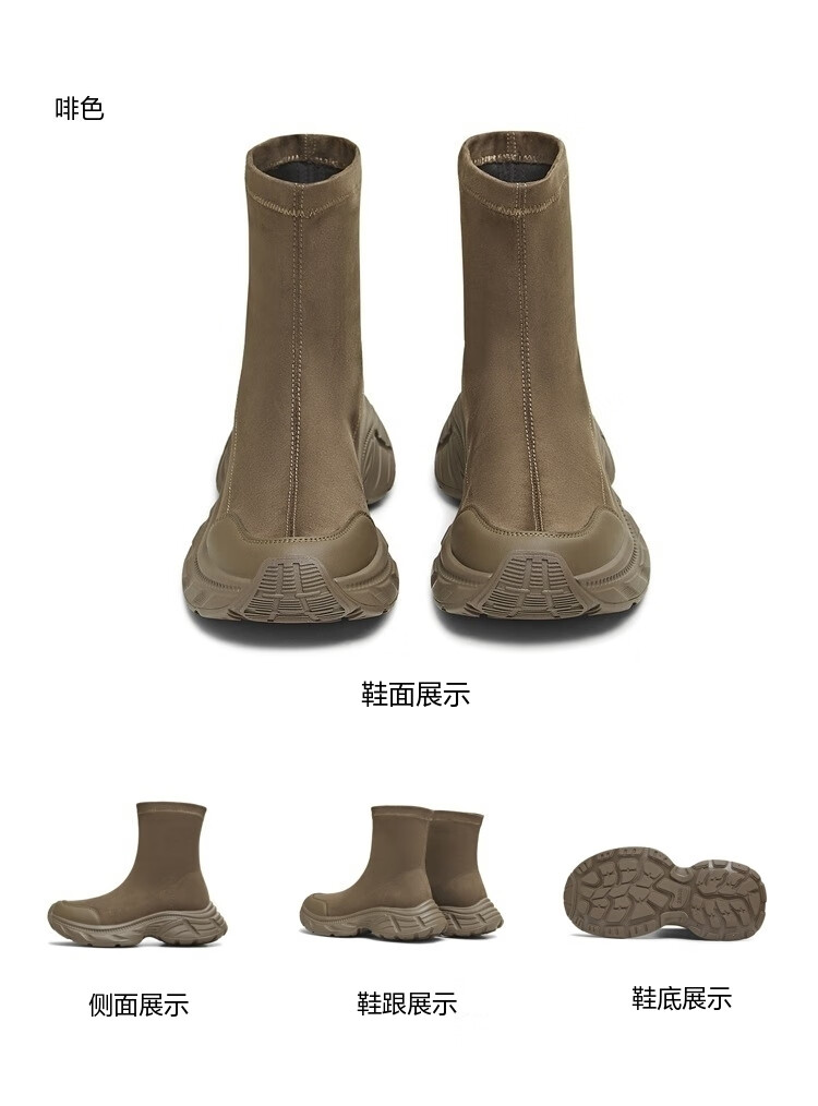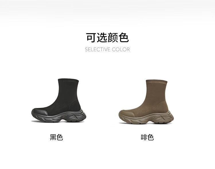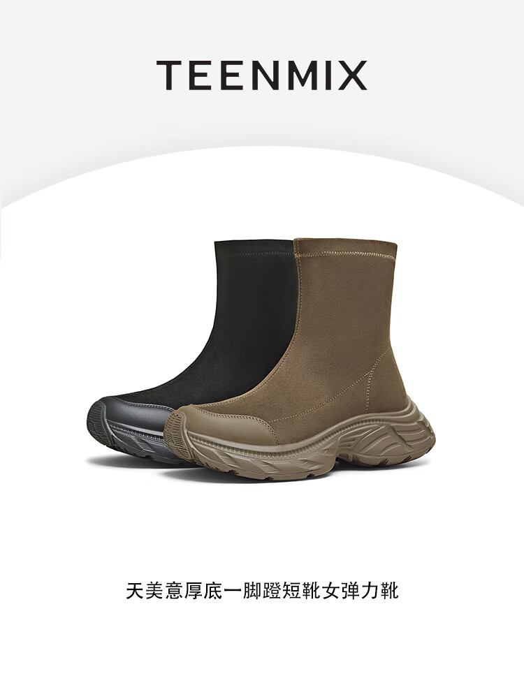 天美意弹力靴厚底百搭短靴一脚蹬显瘦百搭女靴2025新款KTX24DZ5 啡色 37
