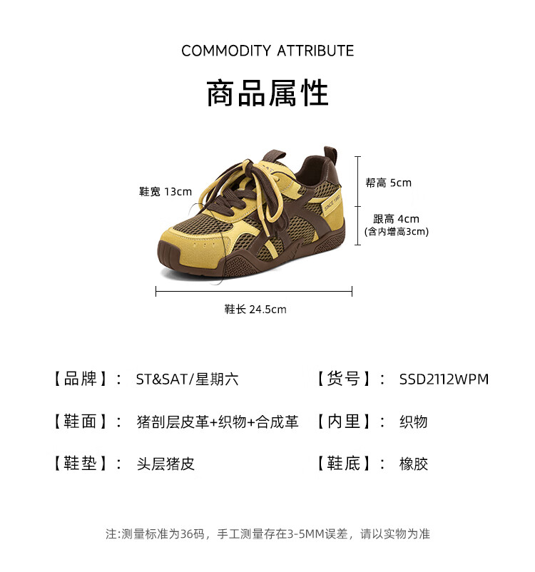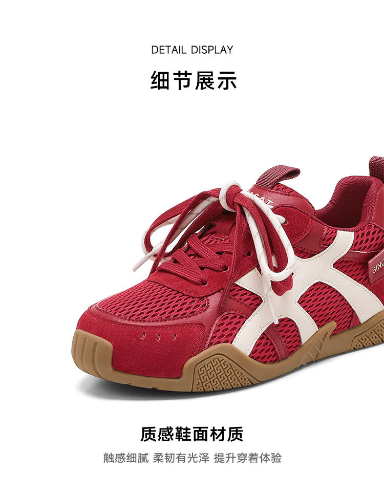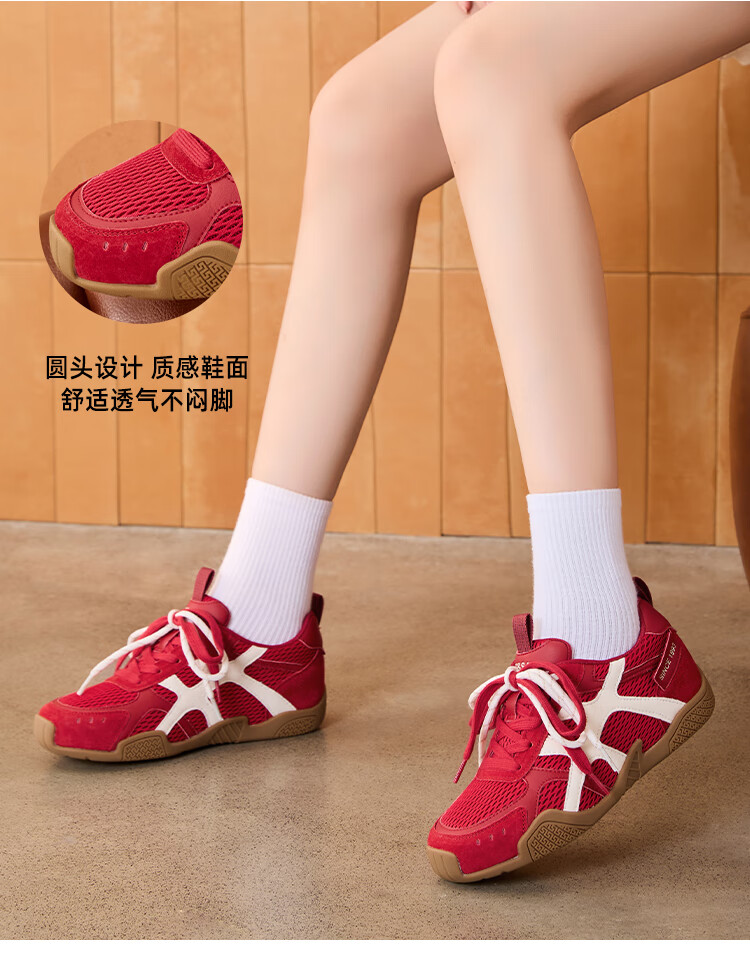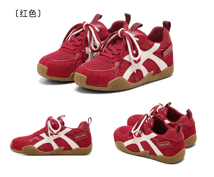 星期六圆头时尚百搭休闲鞋2025夏季新款舒适运动女鞋MTSSD2112WPM 红色 35