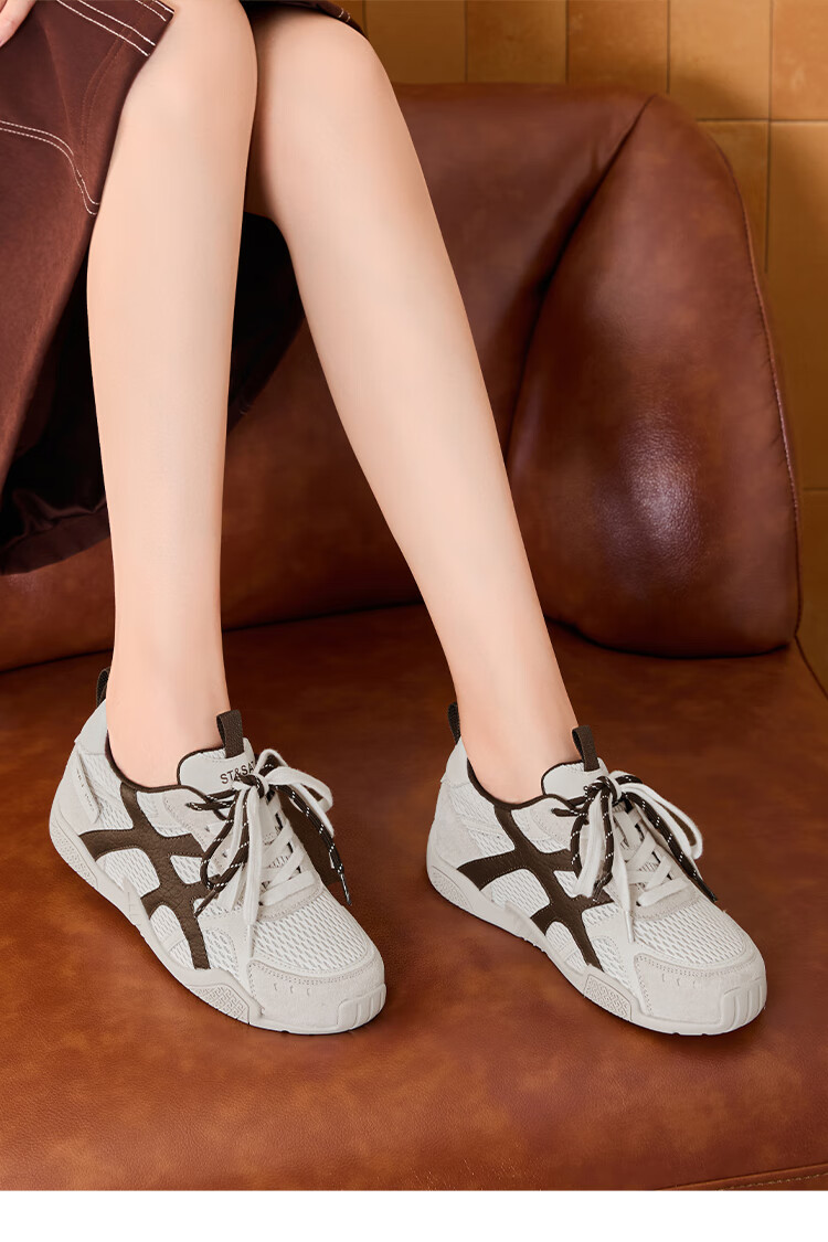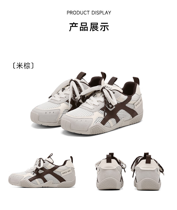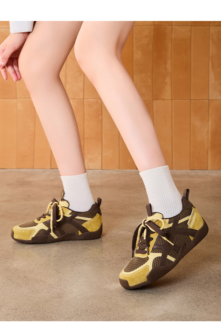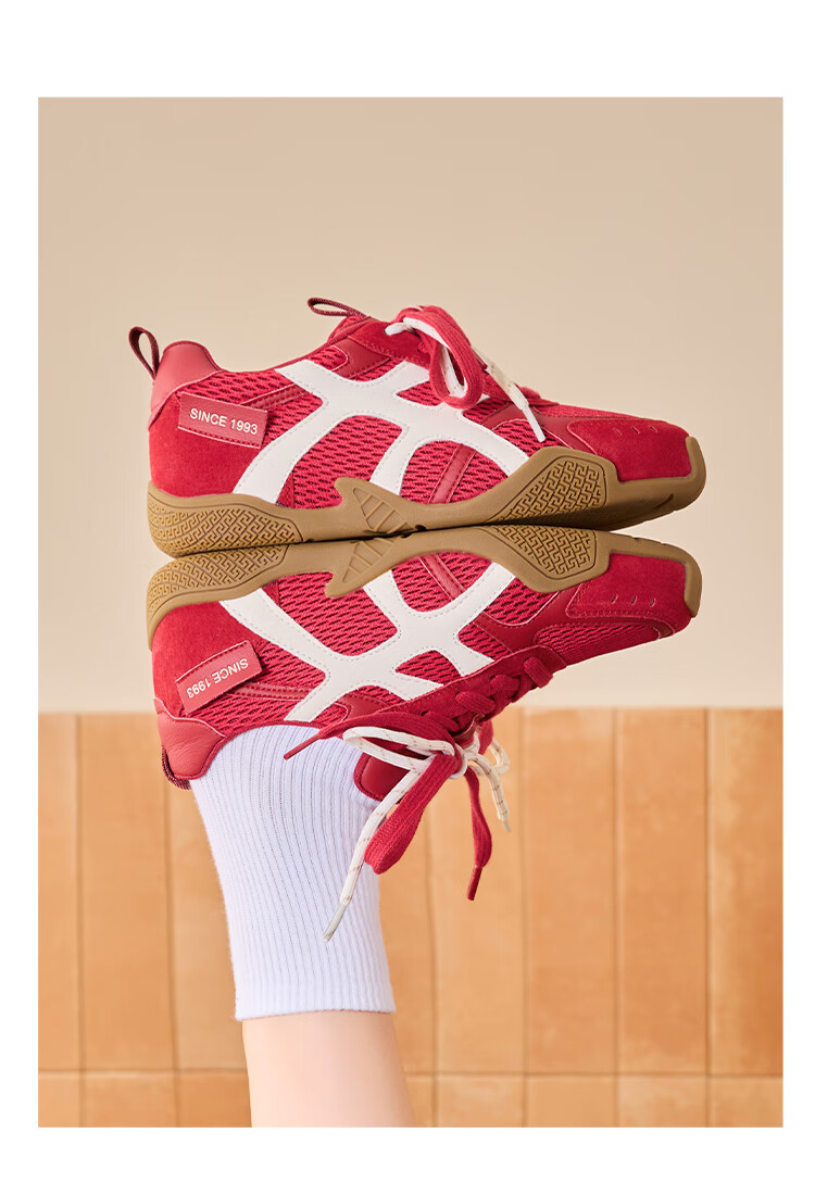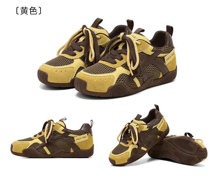 大东老爹鞋女鞋2025年秋季新款时尚潮流休闲鞋拼接5015 米红色 35