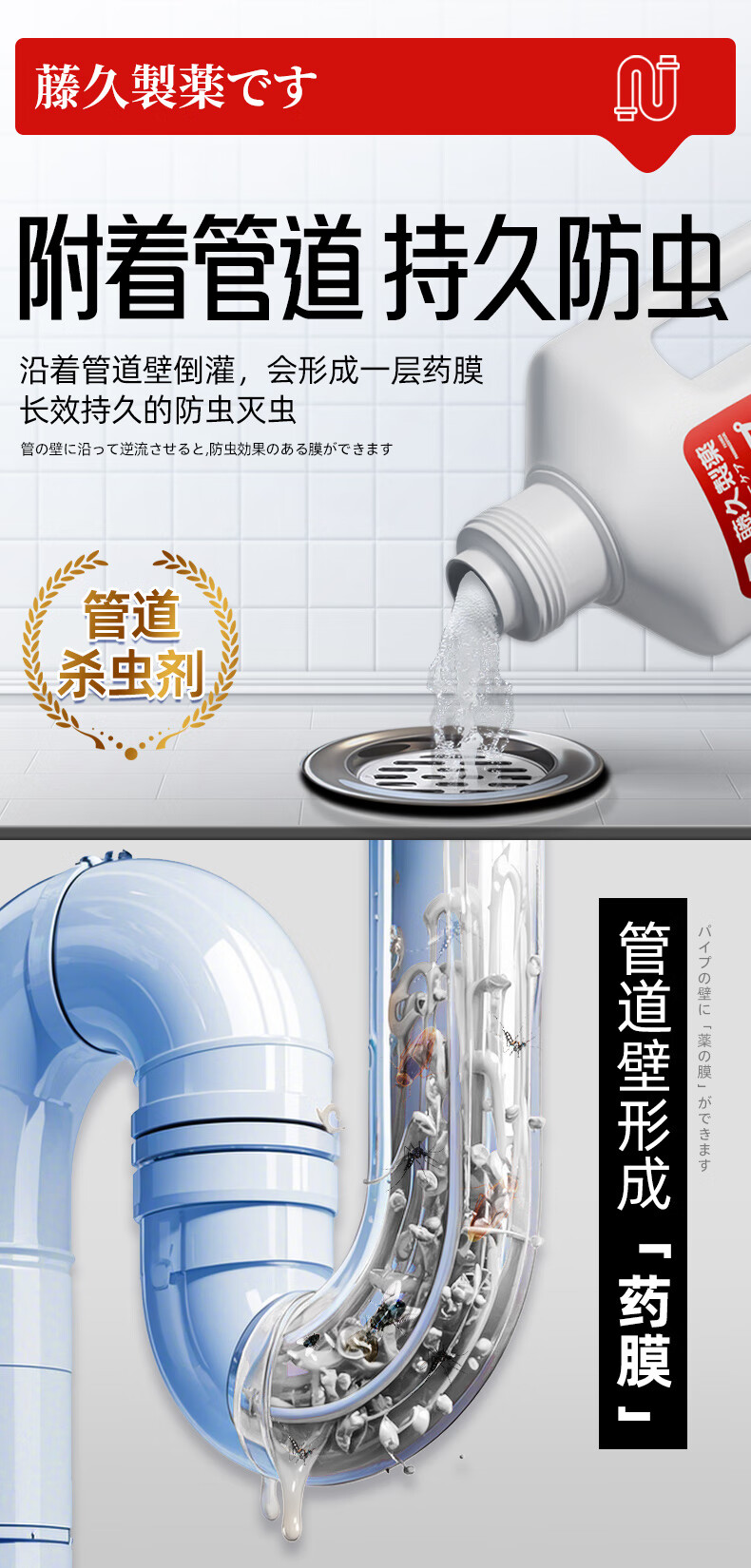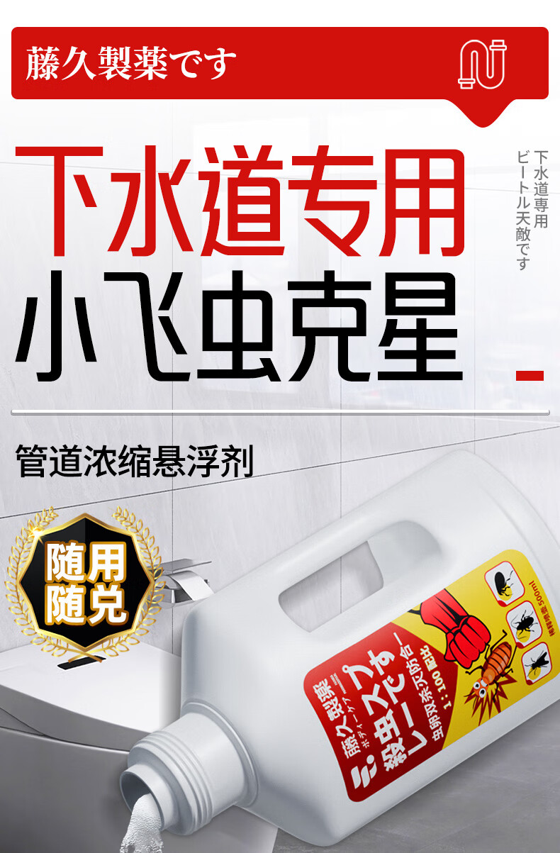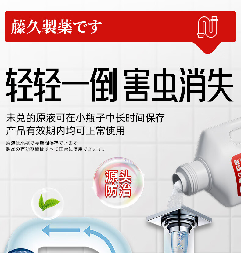 藤久制药下水道杀虫剂兑2500ml蟑螂药厕所小飞虫灭杀神器管道去除蛾蚋25ml