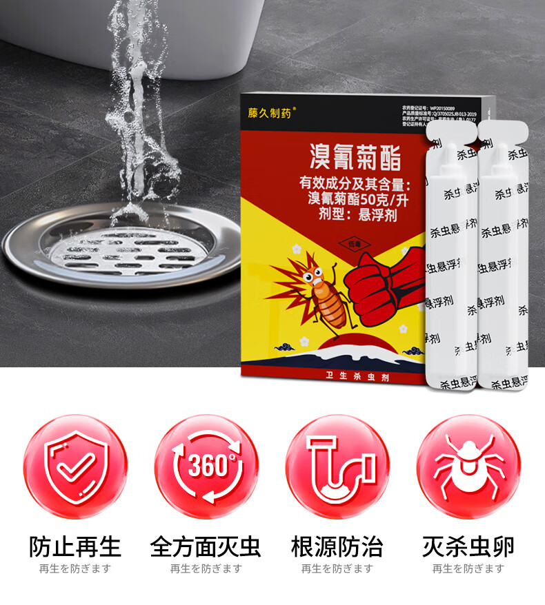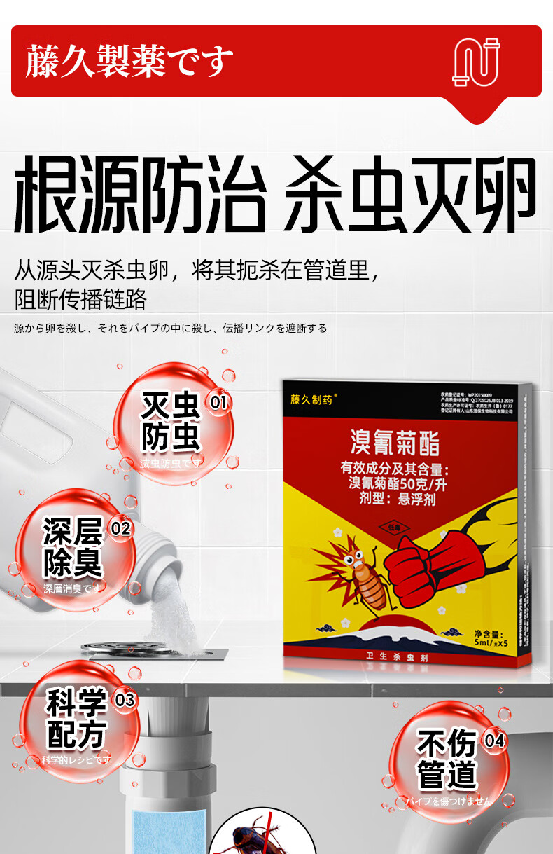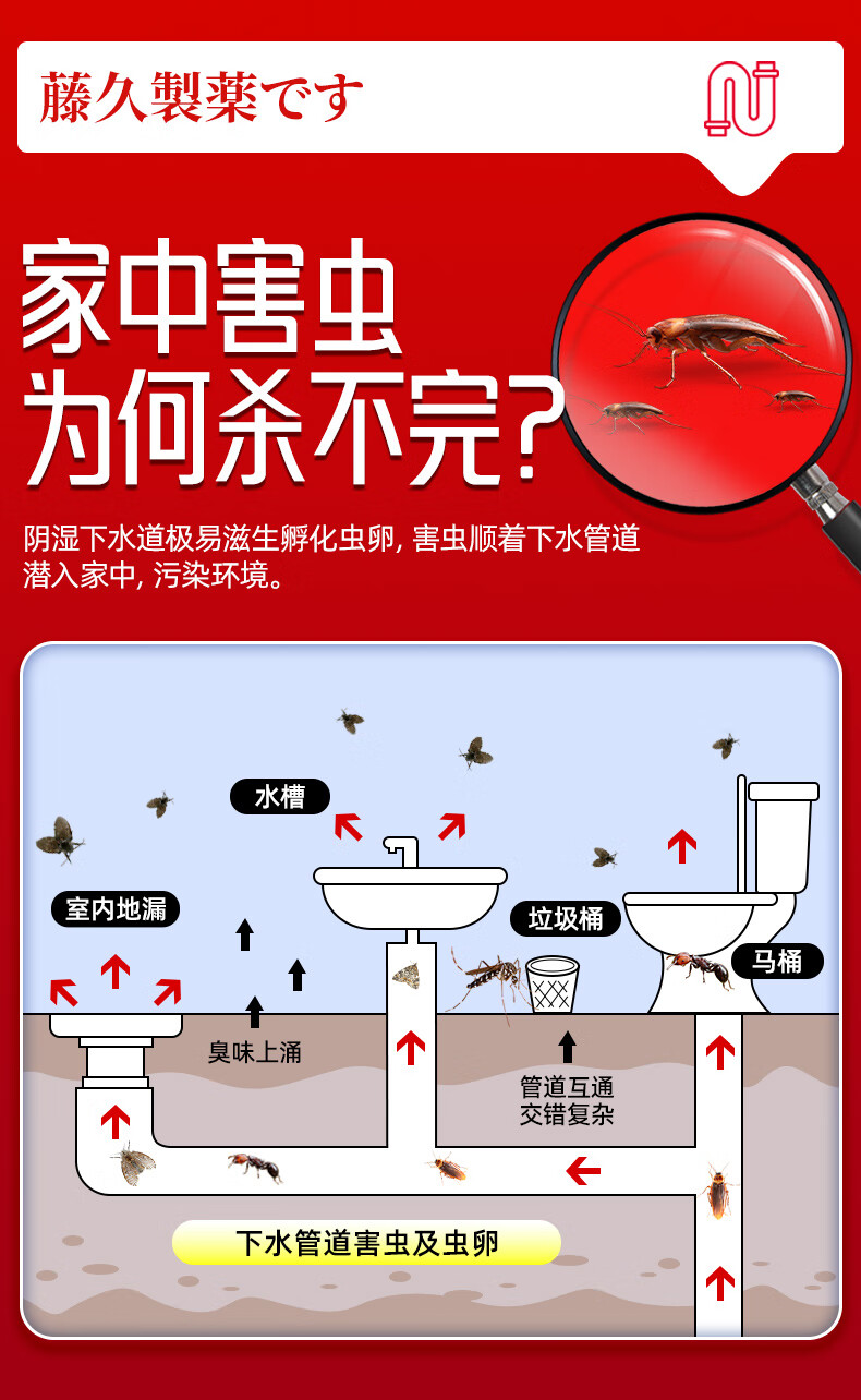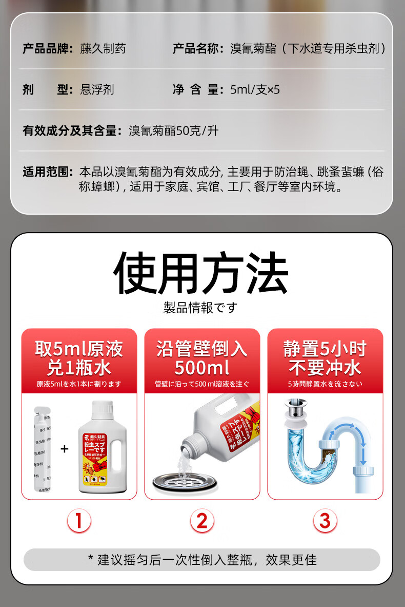 藤久制药下水道杀虫剂兑2500ml蟑螂药厕所小飞虫灭杀神器管道去除蛾蚋25ml