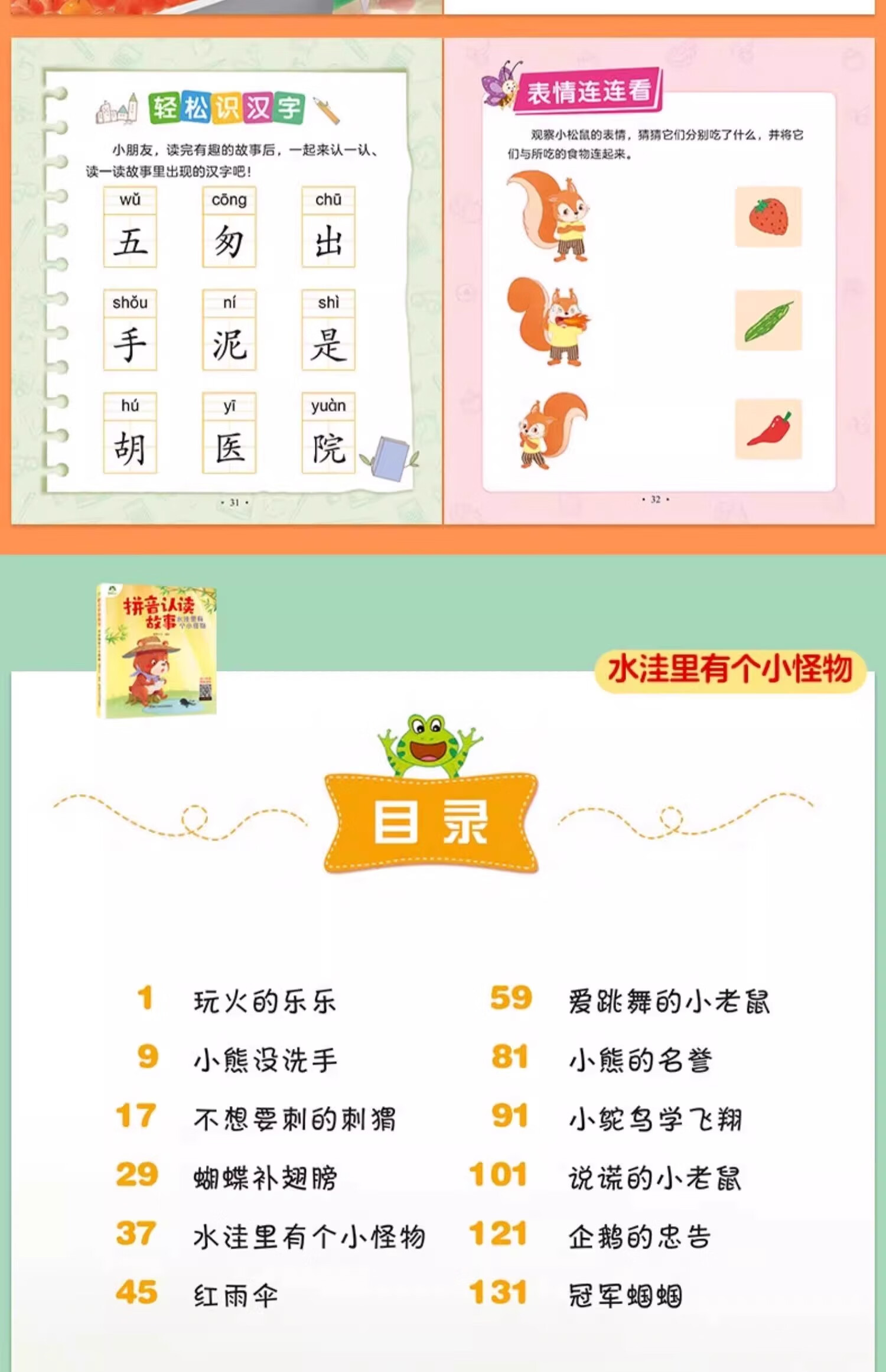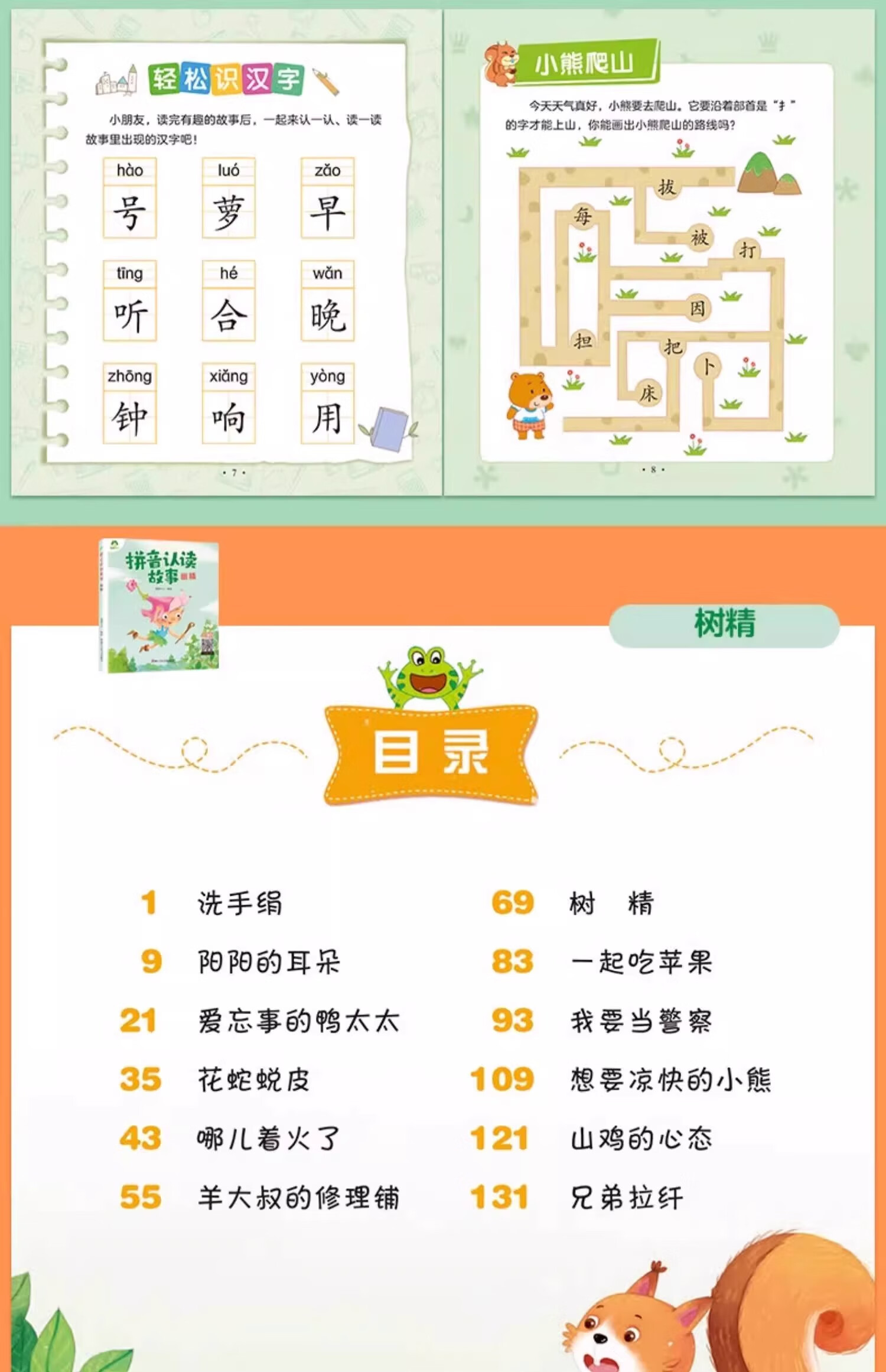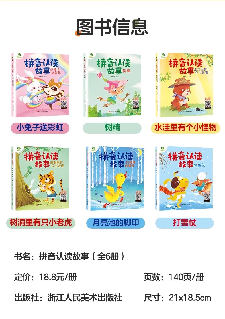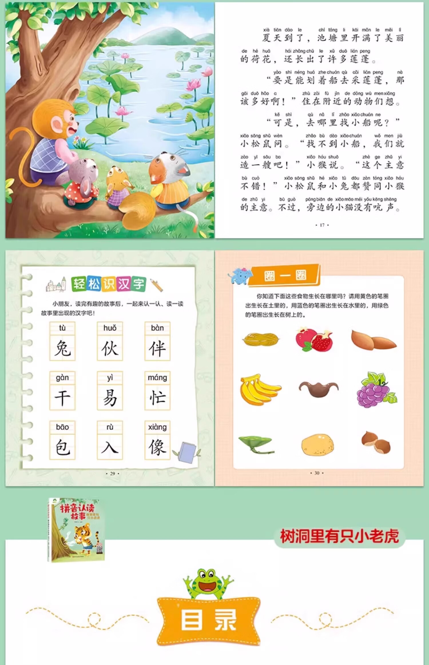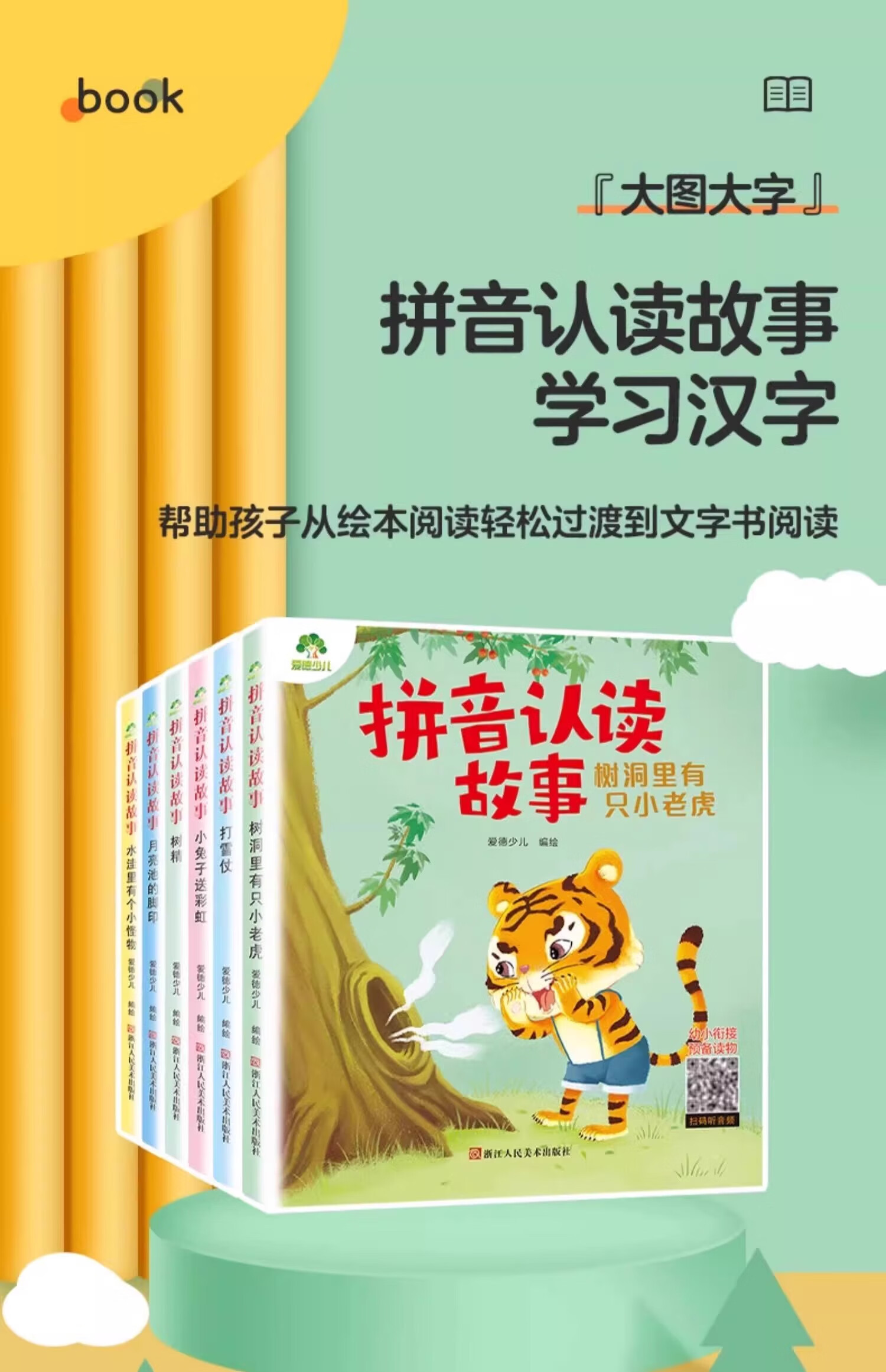 【自选】爱德少儿拼音认读故事书6册 3-6岁儿童宝宝看图识字书幼小衔接树洞里有只小老虎 拼音认读故事 3-6岁儿童汉字启蒙故事绘本拼音读物 【全套6册】拼音认读 新华书店正版