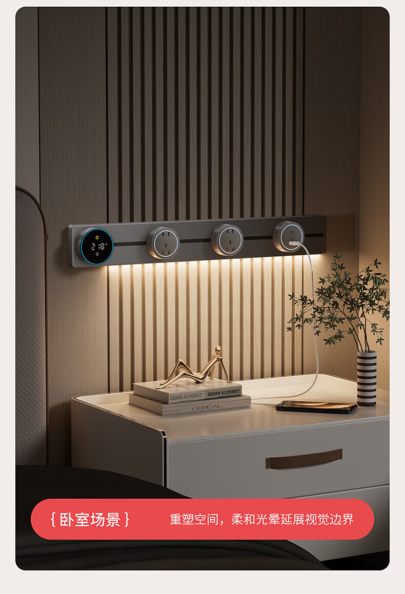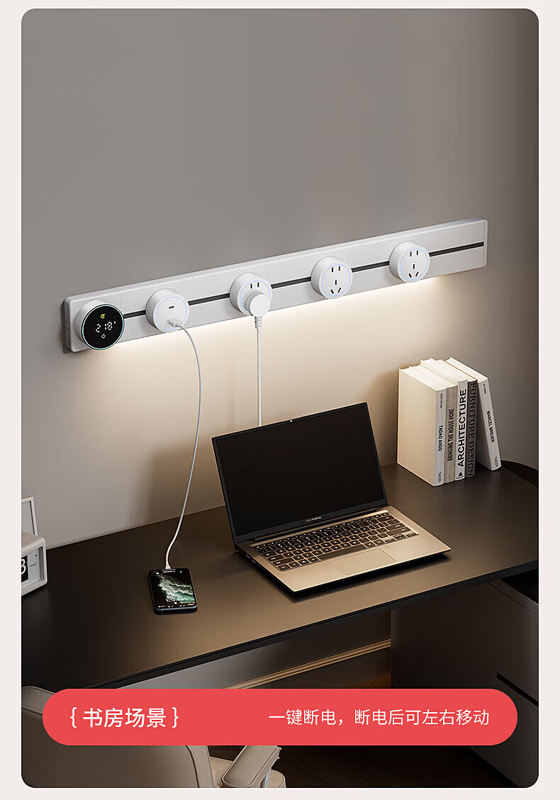 FDD国际电工酒柜轨道插座功率监测智能数显屏大功率带触摸灯滑动插排大间距 墨黑色*40厘米导轨*带屏显+2个大五孔