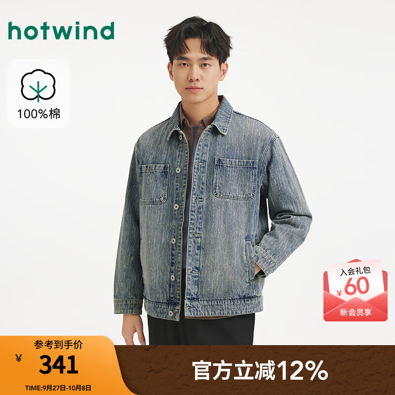 热风【商场同款】男士牛仔夹克外套2025年秋新款复古做旧潮流翻领夹克 06兰色 S