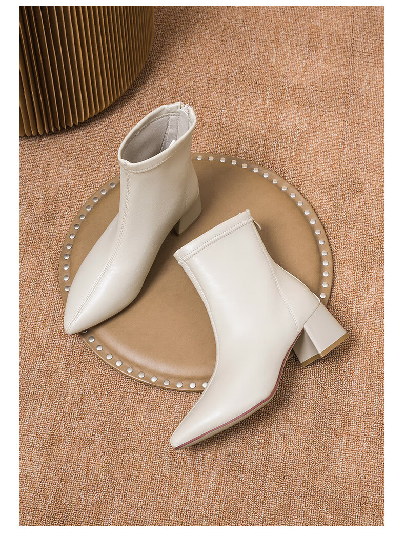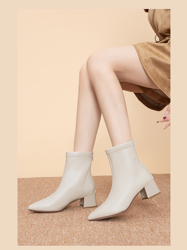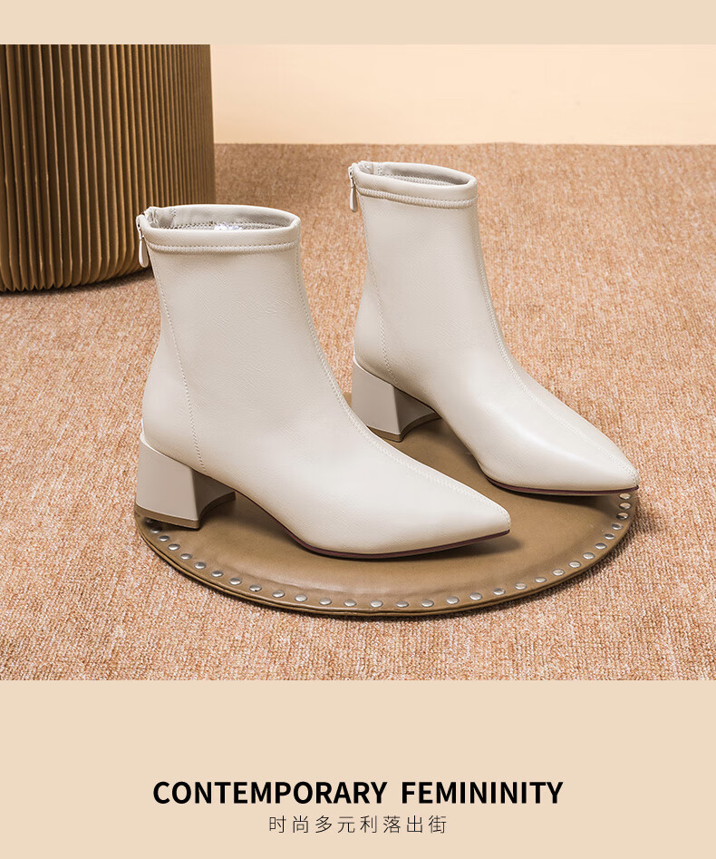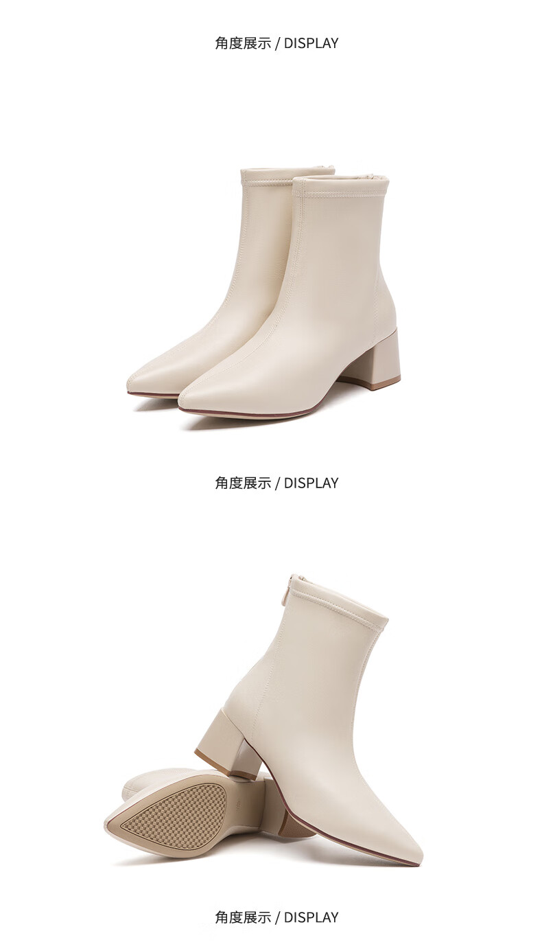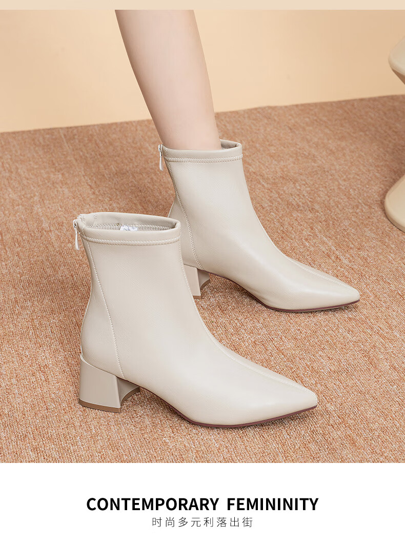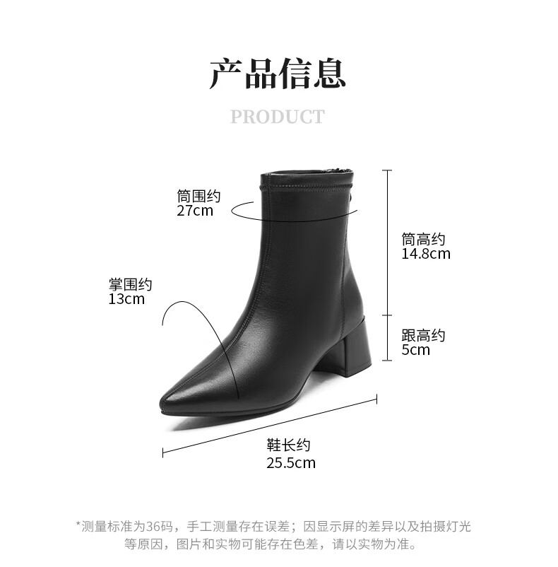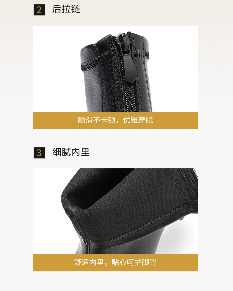 大东时装靴女鞋2025冬季新款休闲优雅粗跟后拉链尖头中跟鞋0006A 黑色 34