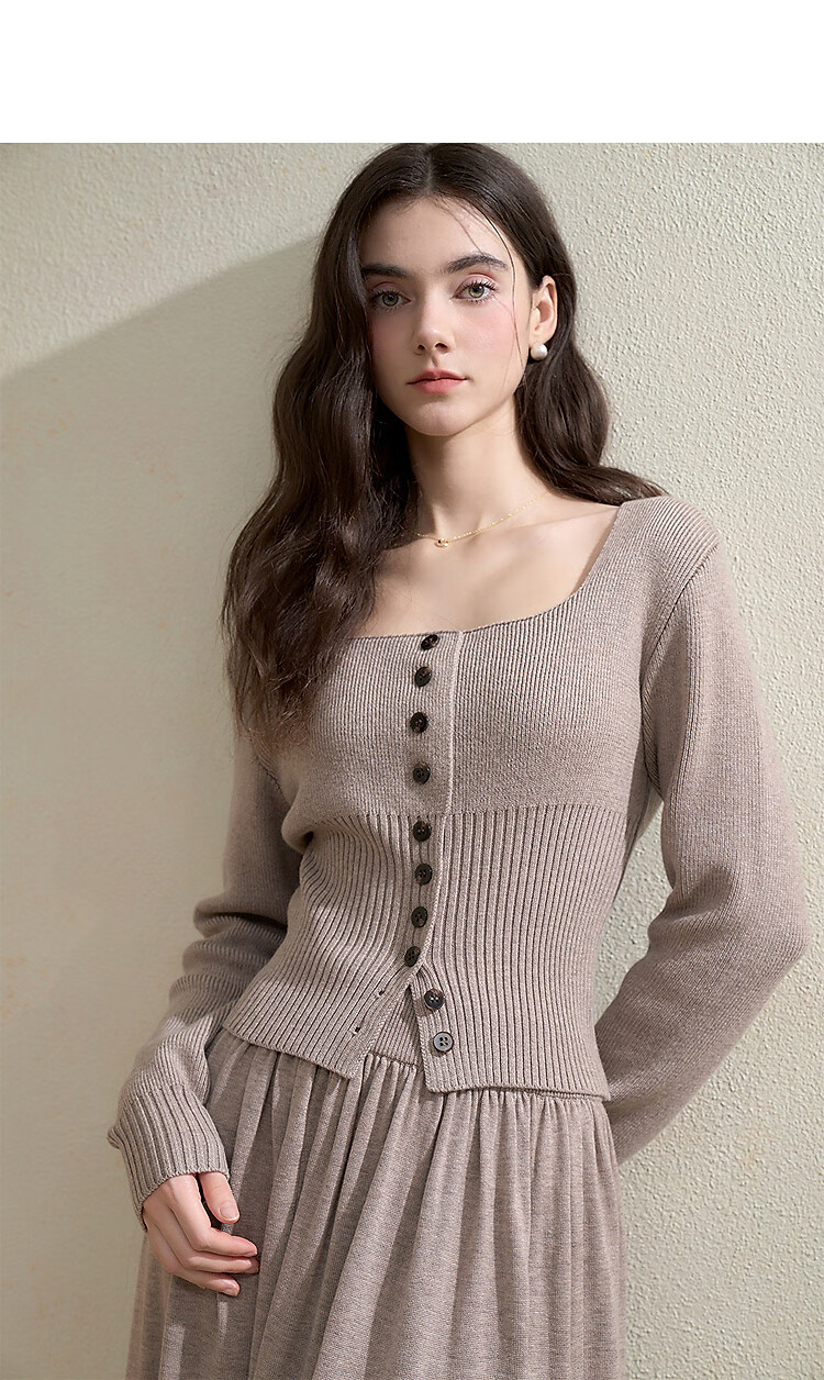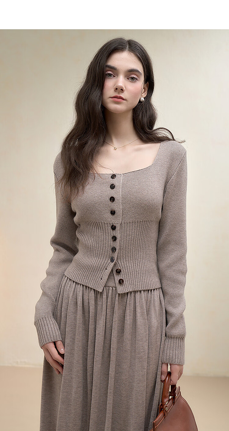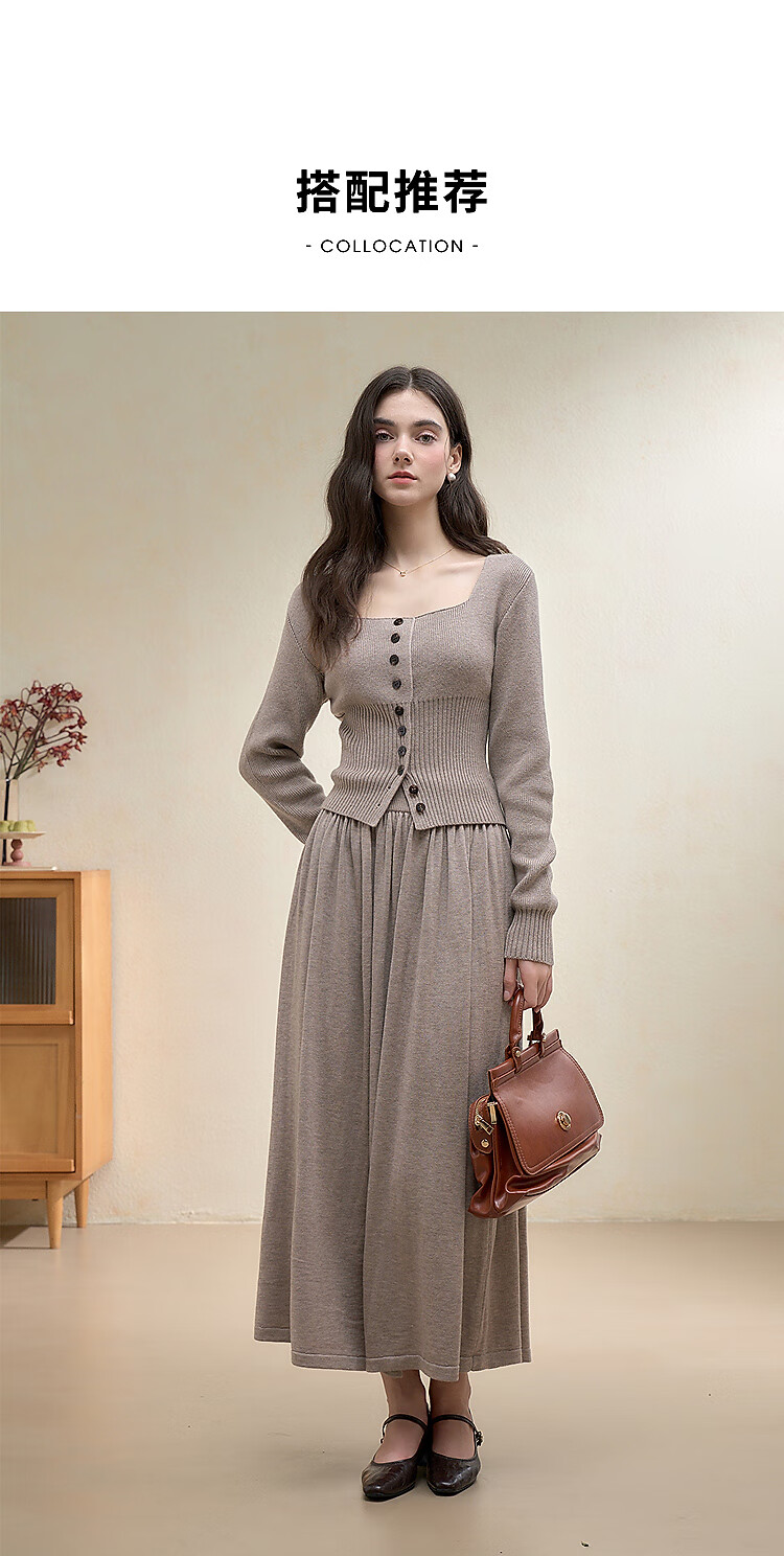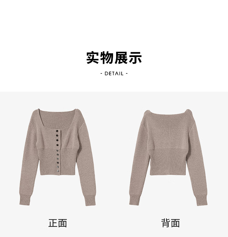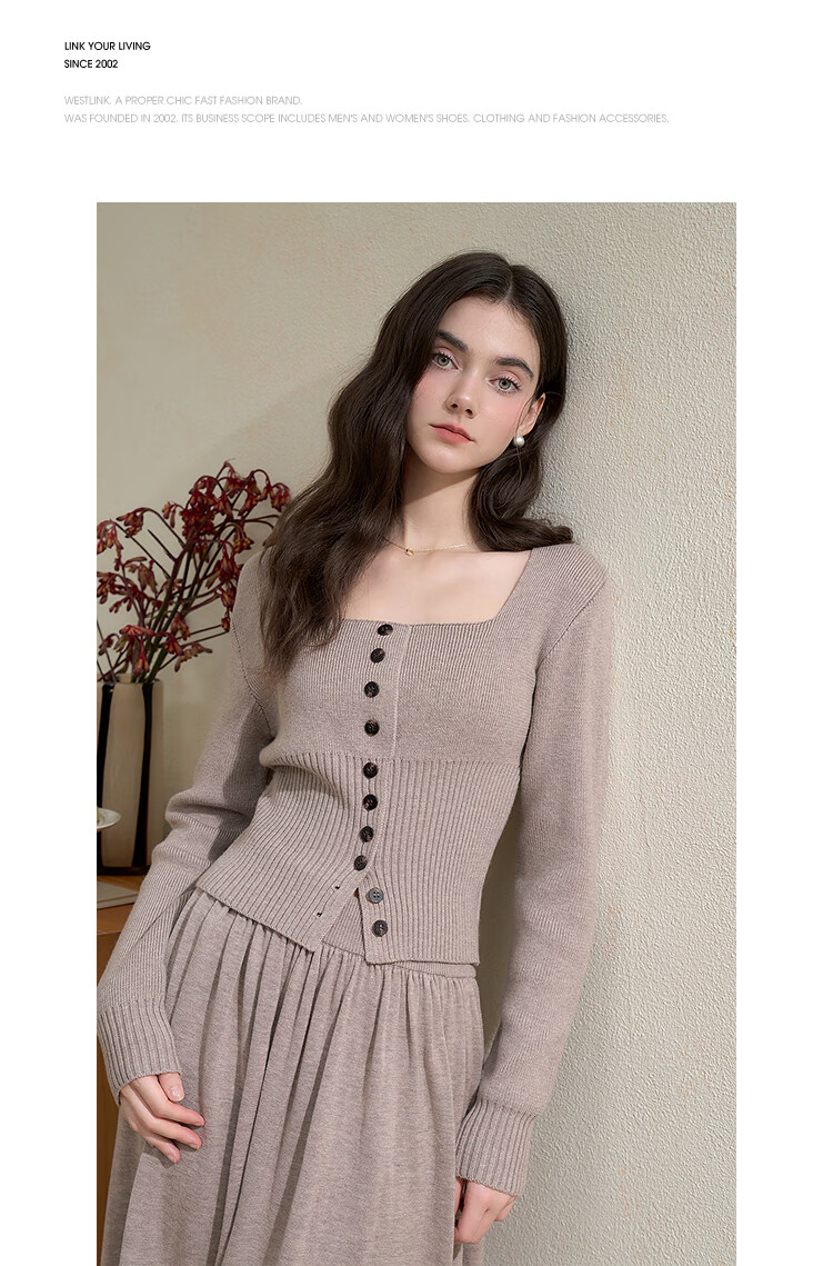 西遇(Westlink)西遇法式气质方领单排扣针织衫女秋季正肩收腰显瘦长袖上衣 杏色 S (155)