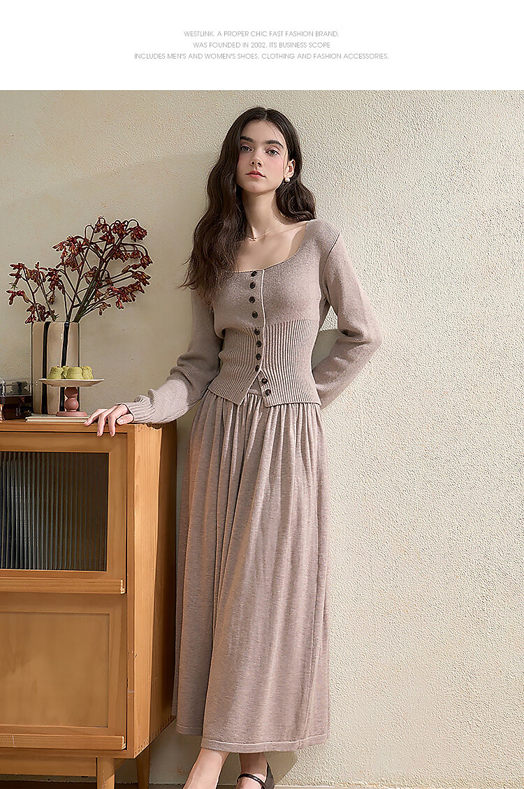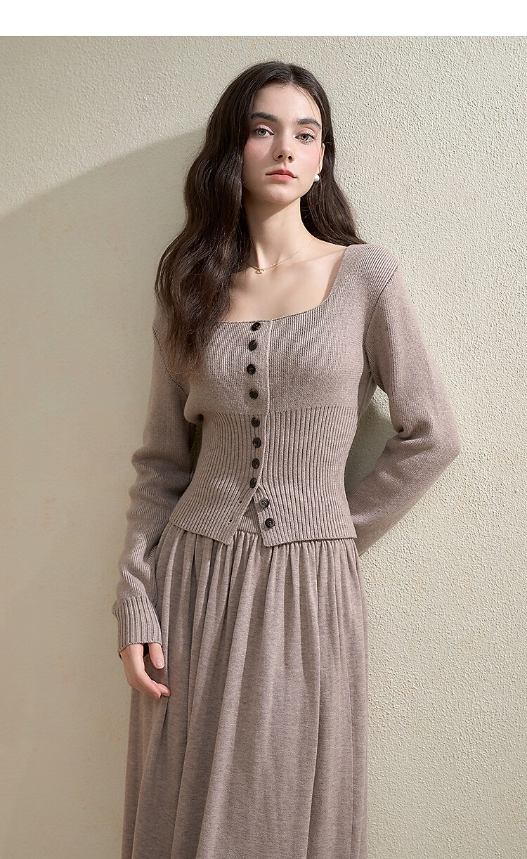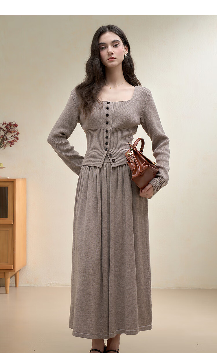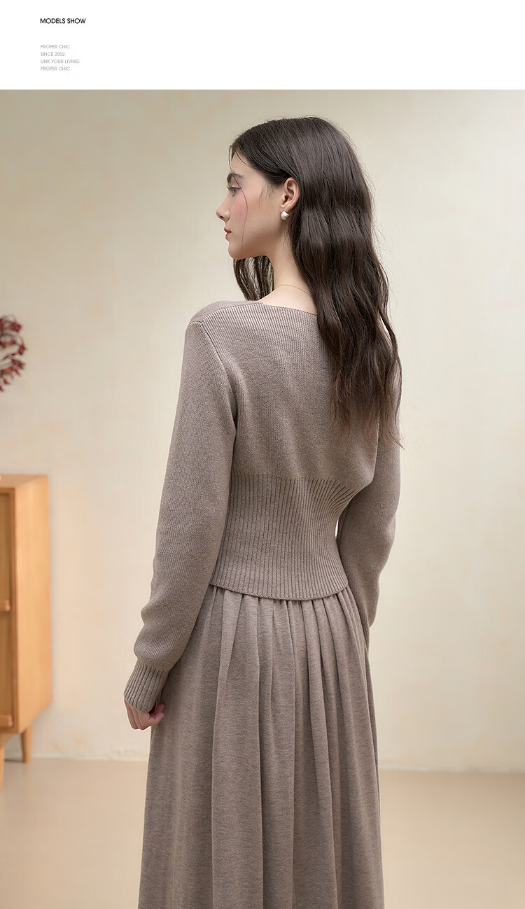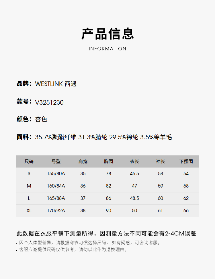 西遇(Westlink)西遇法式气质方领单排扣针织衫女秋季正肩收腰显瘦长袖上衣 杏色 S (155)