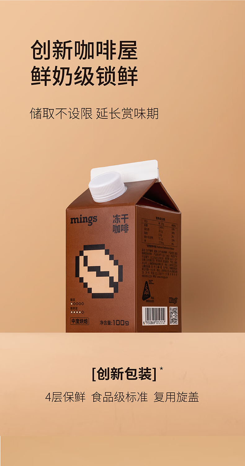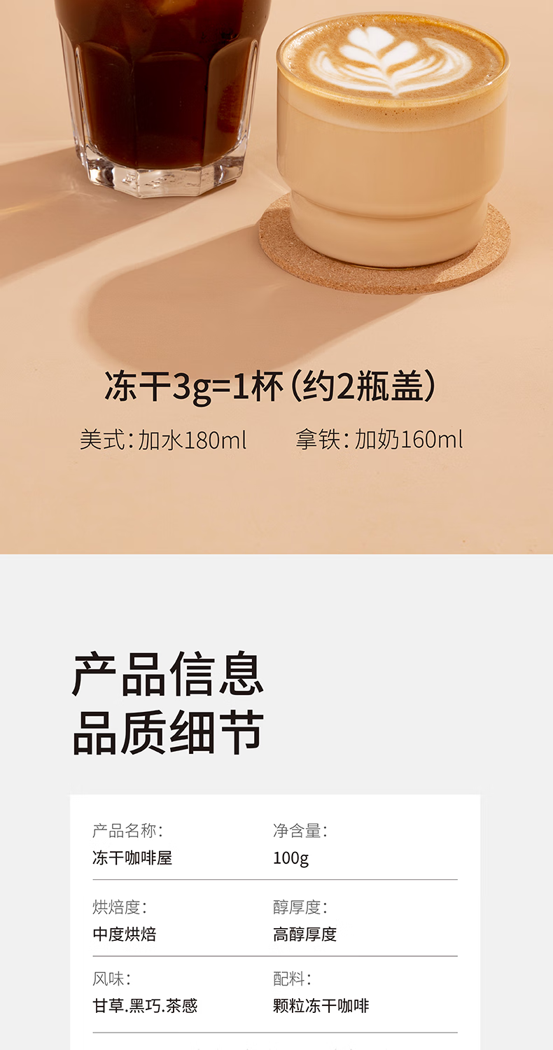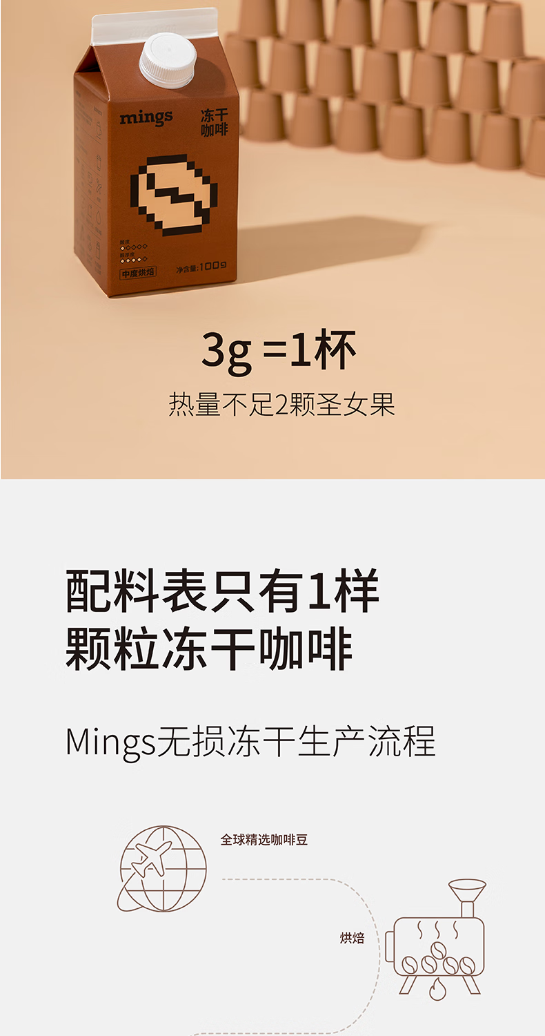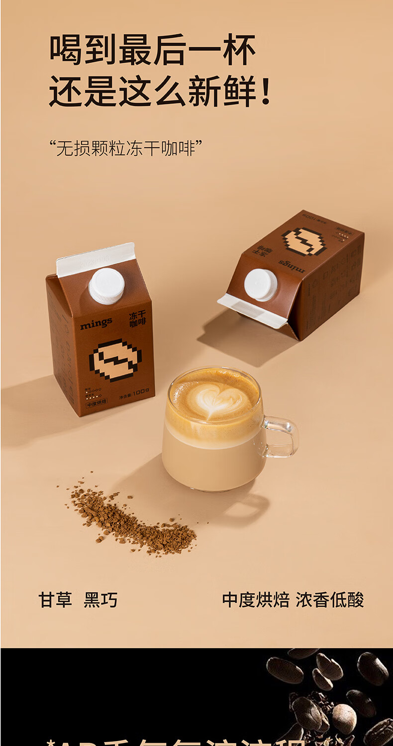 铭氏(Ming's)冻干咖啡 速溶便捷黑咖啡 0脂肪0蔗糖 美式拿铁咖啡粉100g