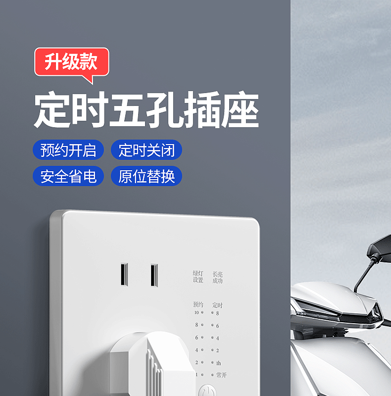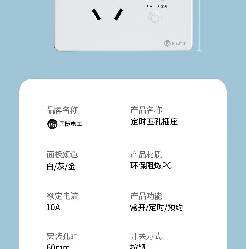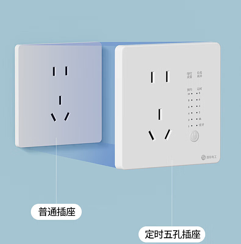 国际电工86型定时五孔插座预约带开关墙壁多功能面板电源充电保护自动断电 暗装-五孔定时【白色】 插座