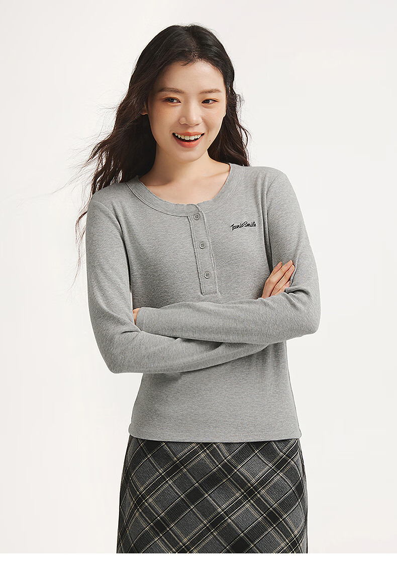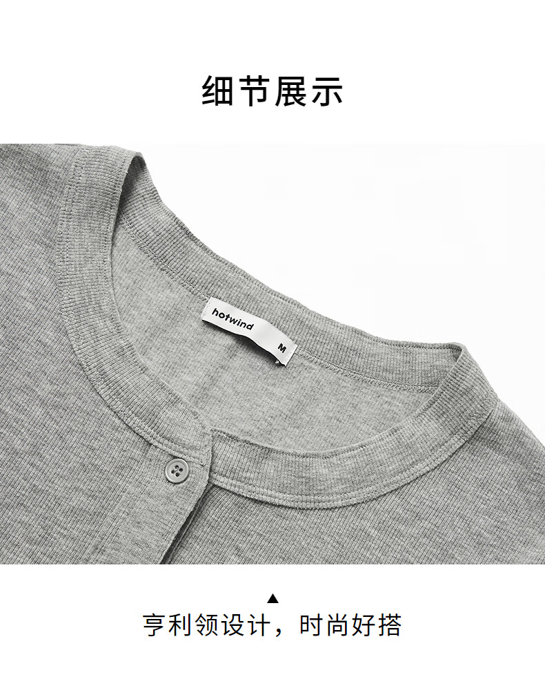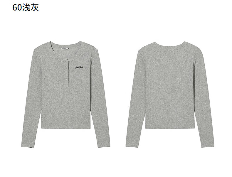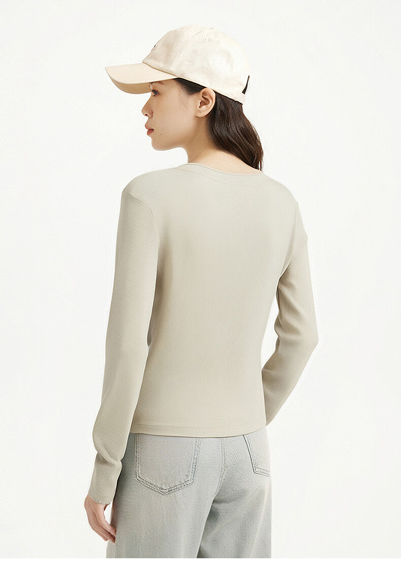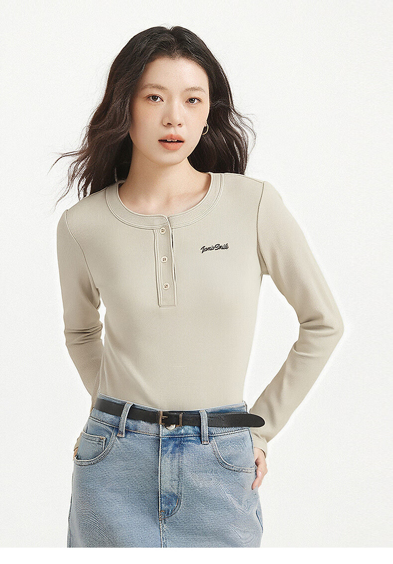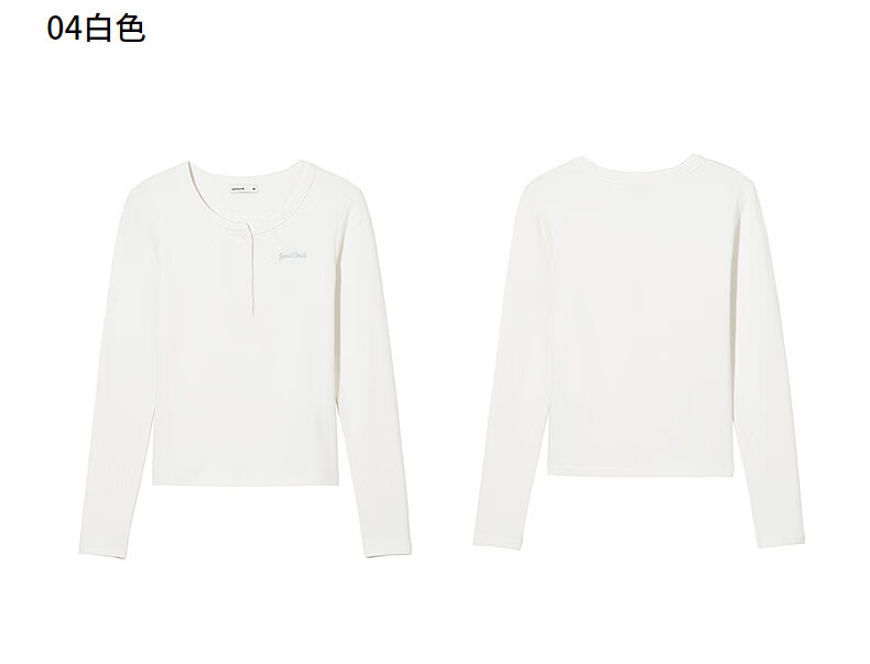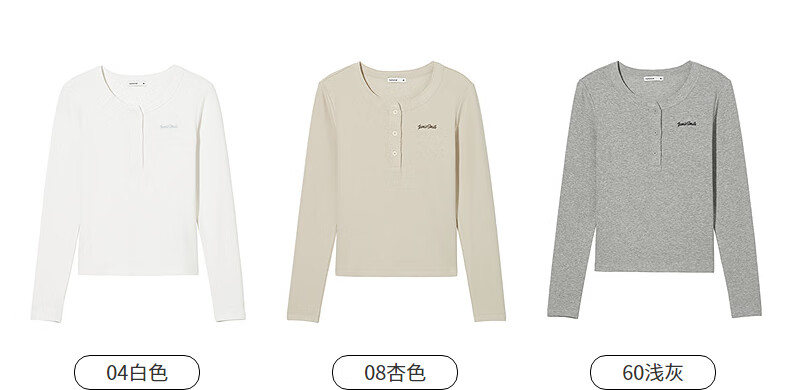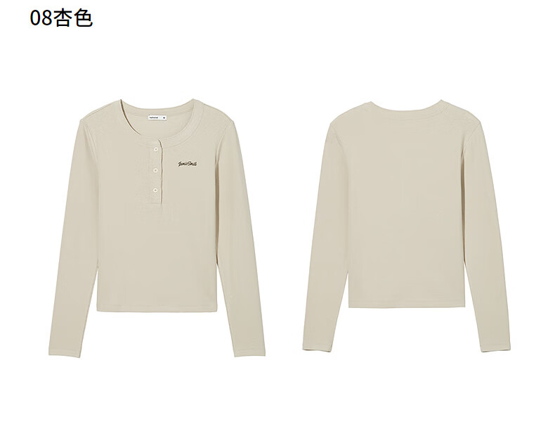 热风女士长袖T恤上衣2025年冬季新款亨利领长袖修身显瘦内搭打底 08杏色 S