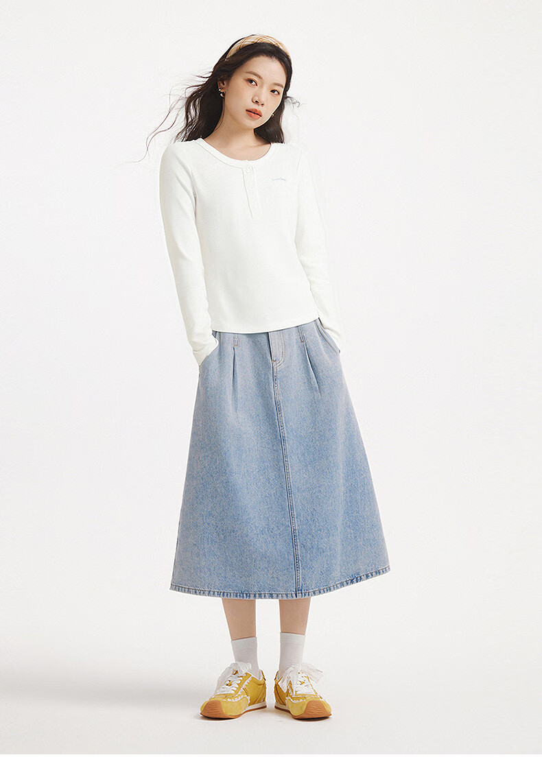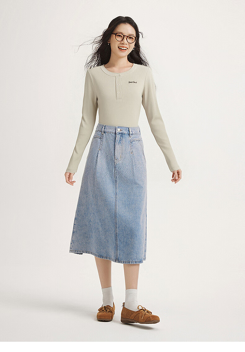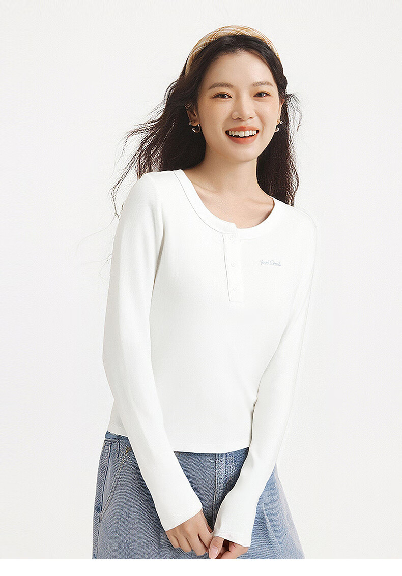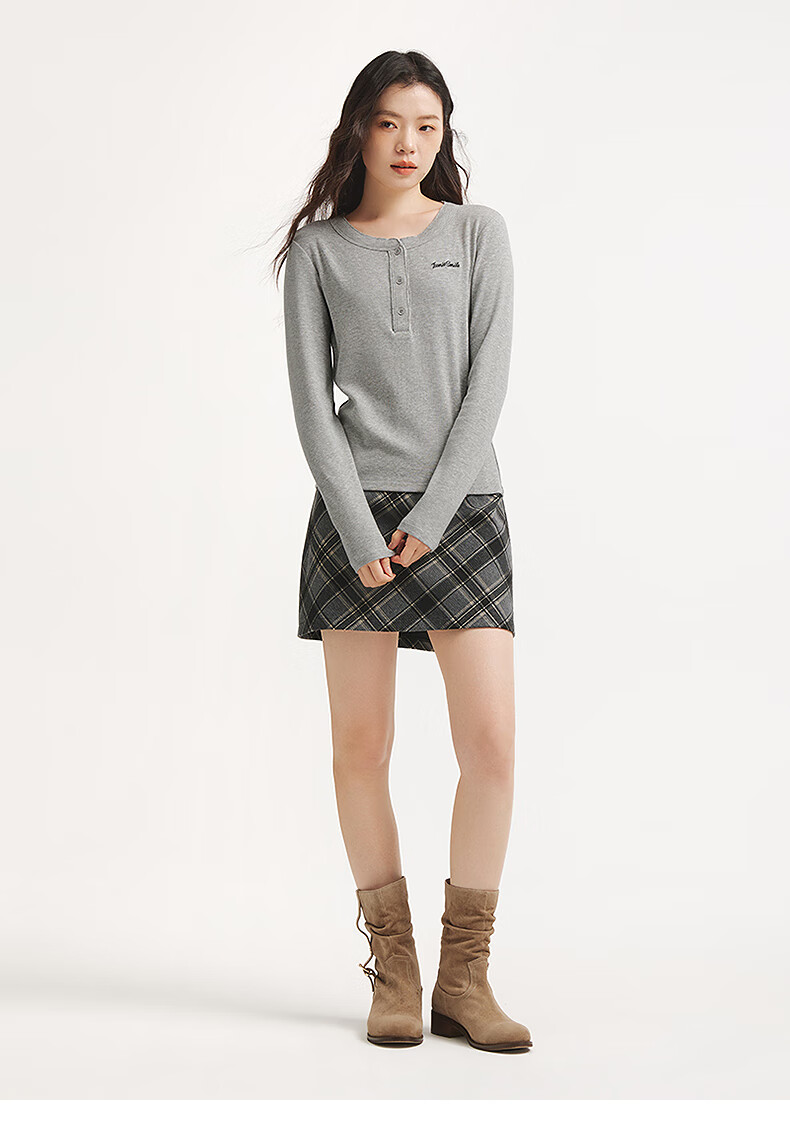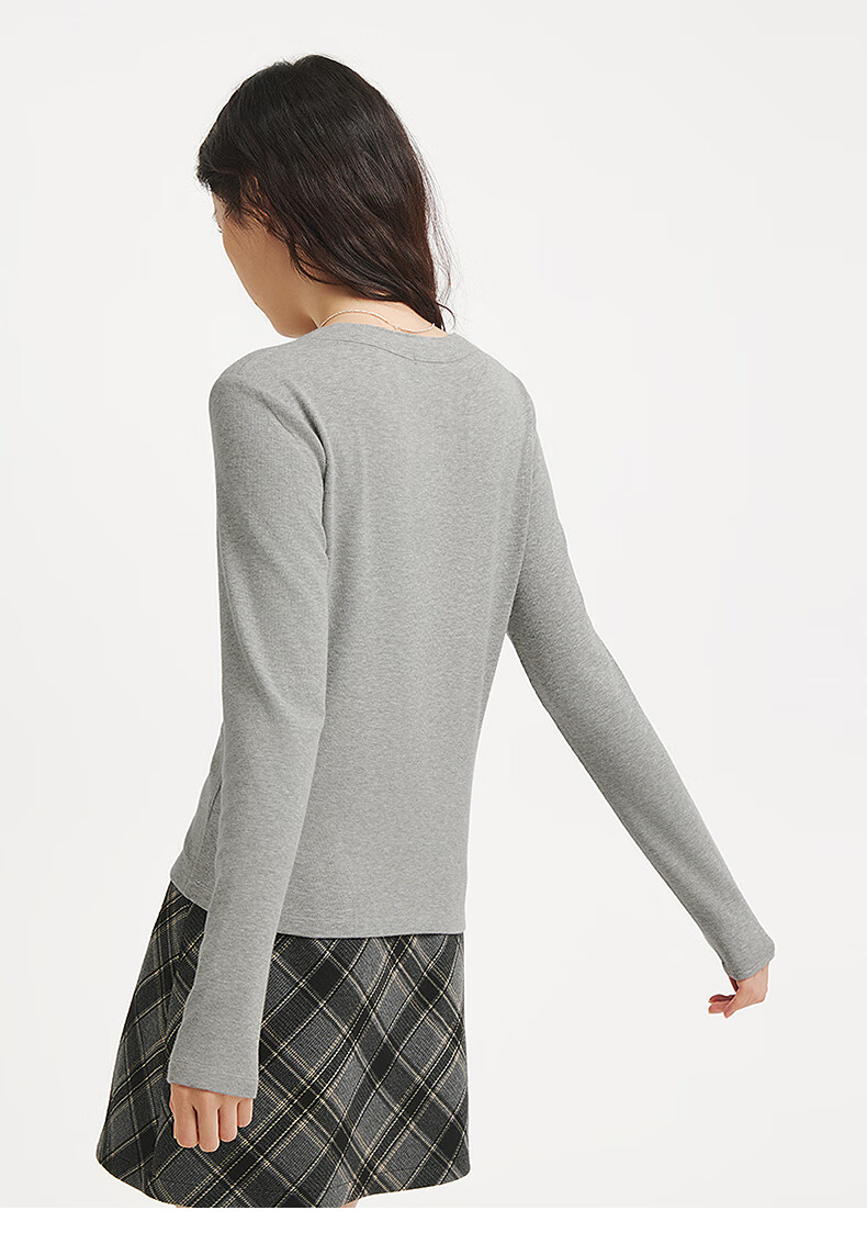 热风女士长袖T恤上衣2025年冬季新款亨利领长袖修身显瘦内搭打底 08杏色 S