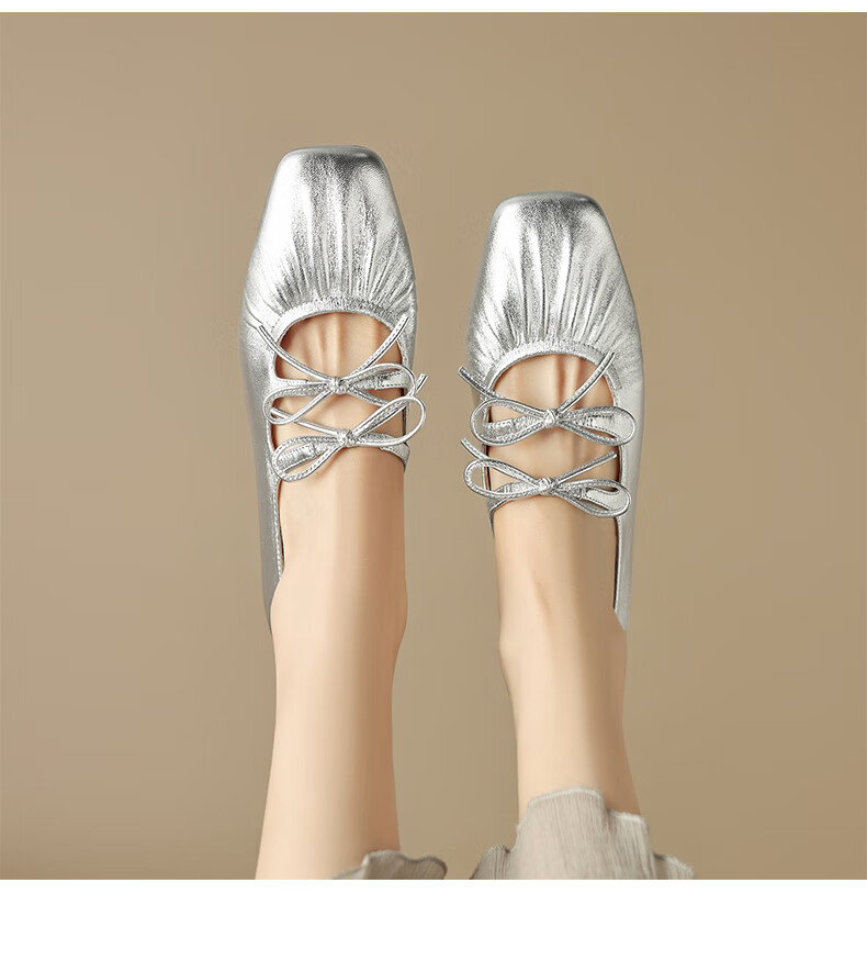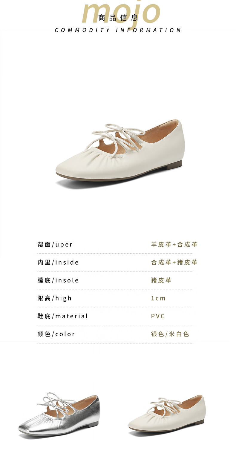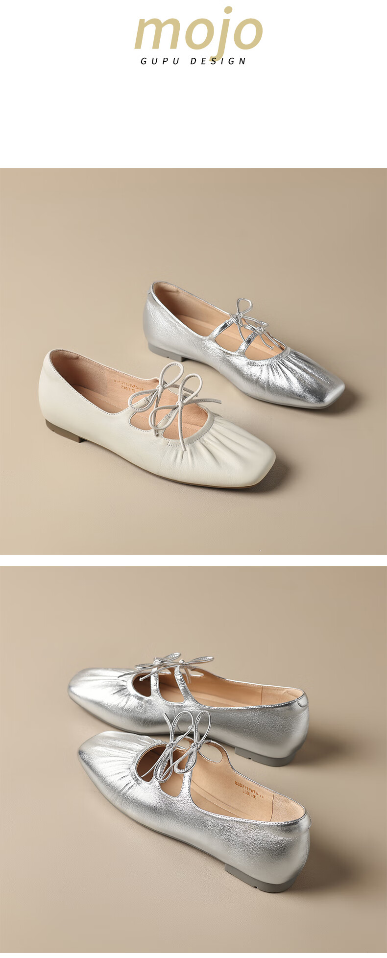 星期六(St&Sat)羊皮软面软底玛丽珍鞋女法式平底轻奢小皮鞋浅口单鞋JXSSD2111WFU 银色 35