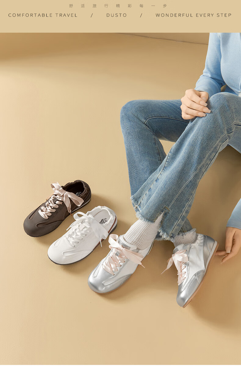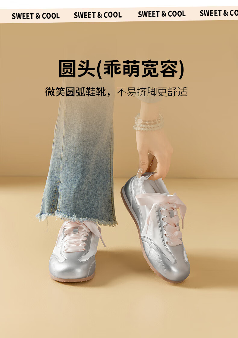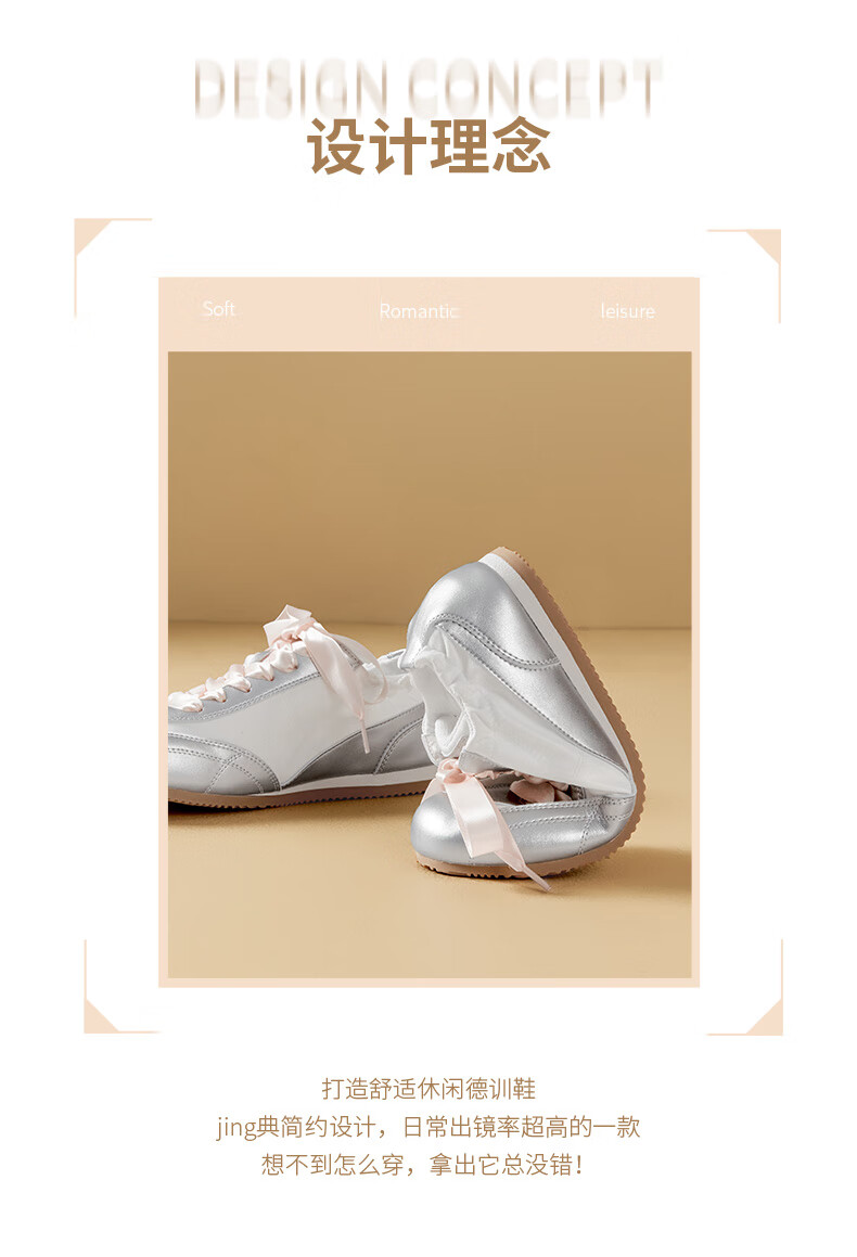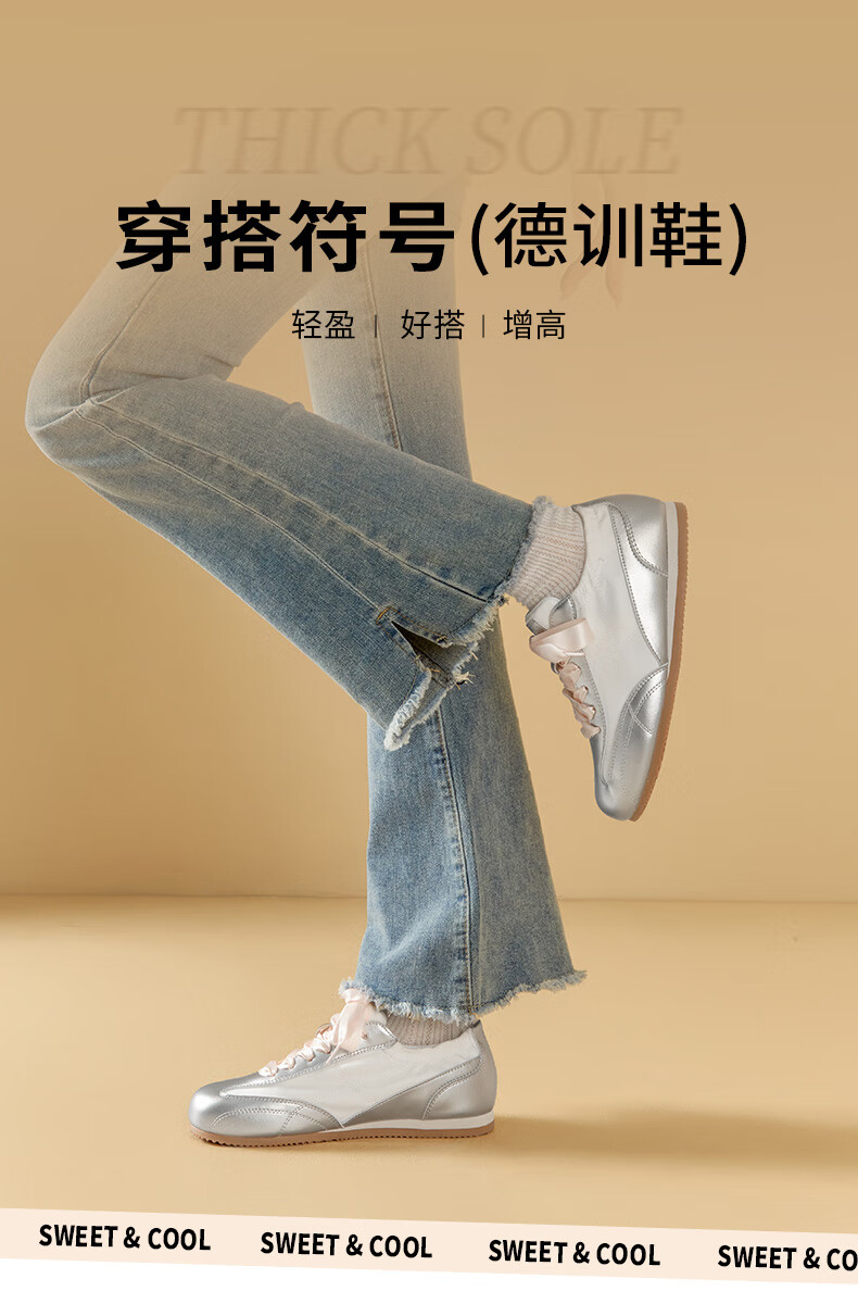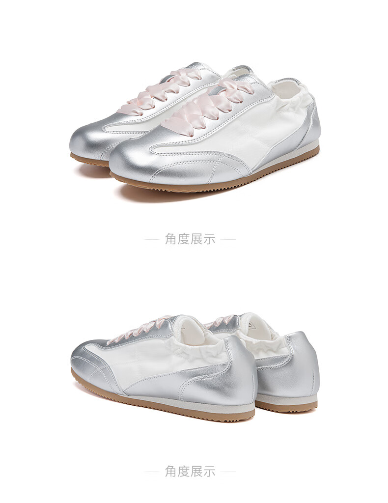 大东德训鞋女鞋2025年秋季新款时尚甜美圆头系带0783 银色 35