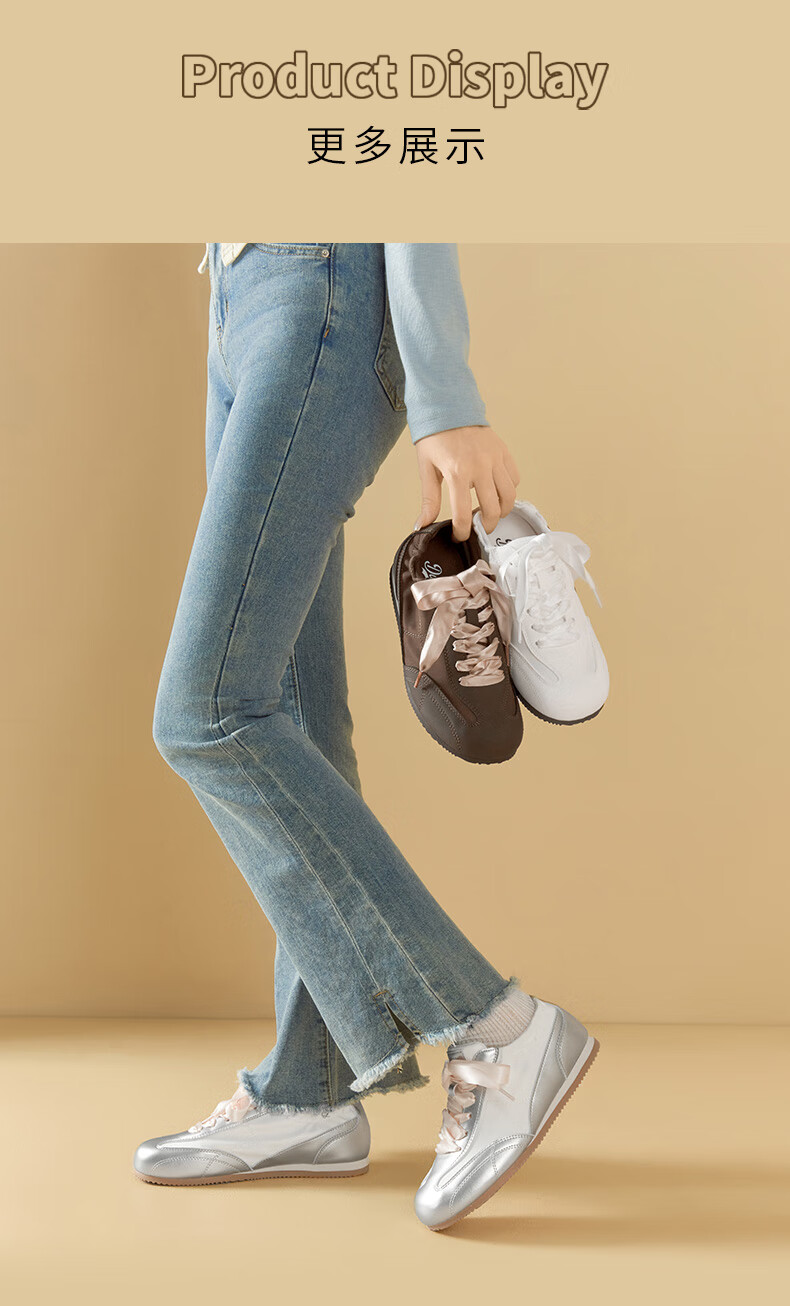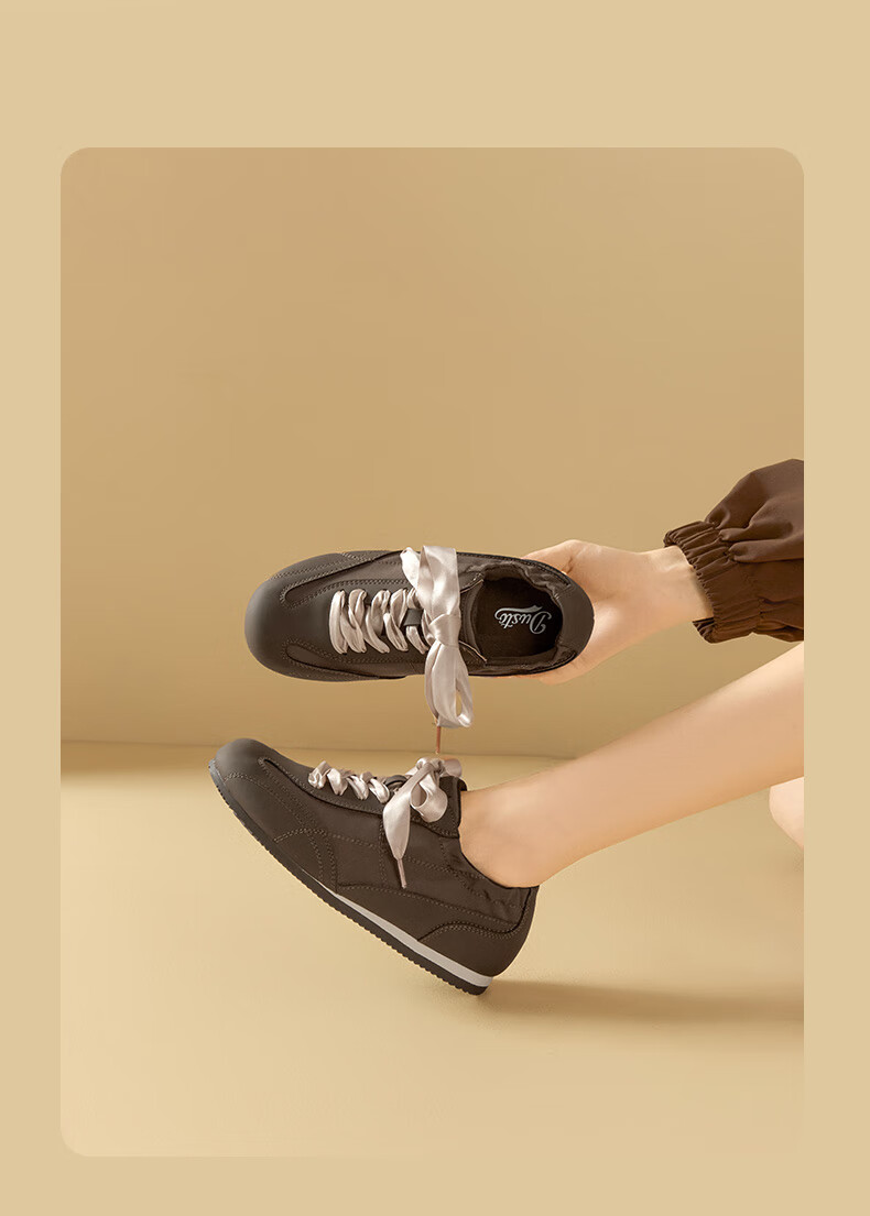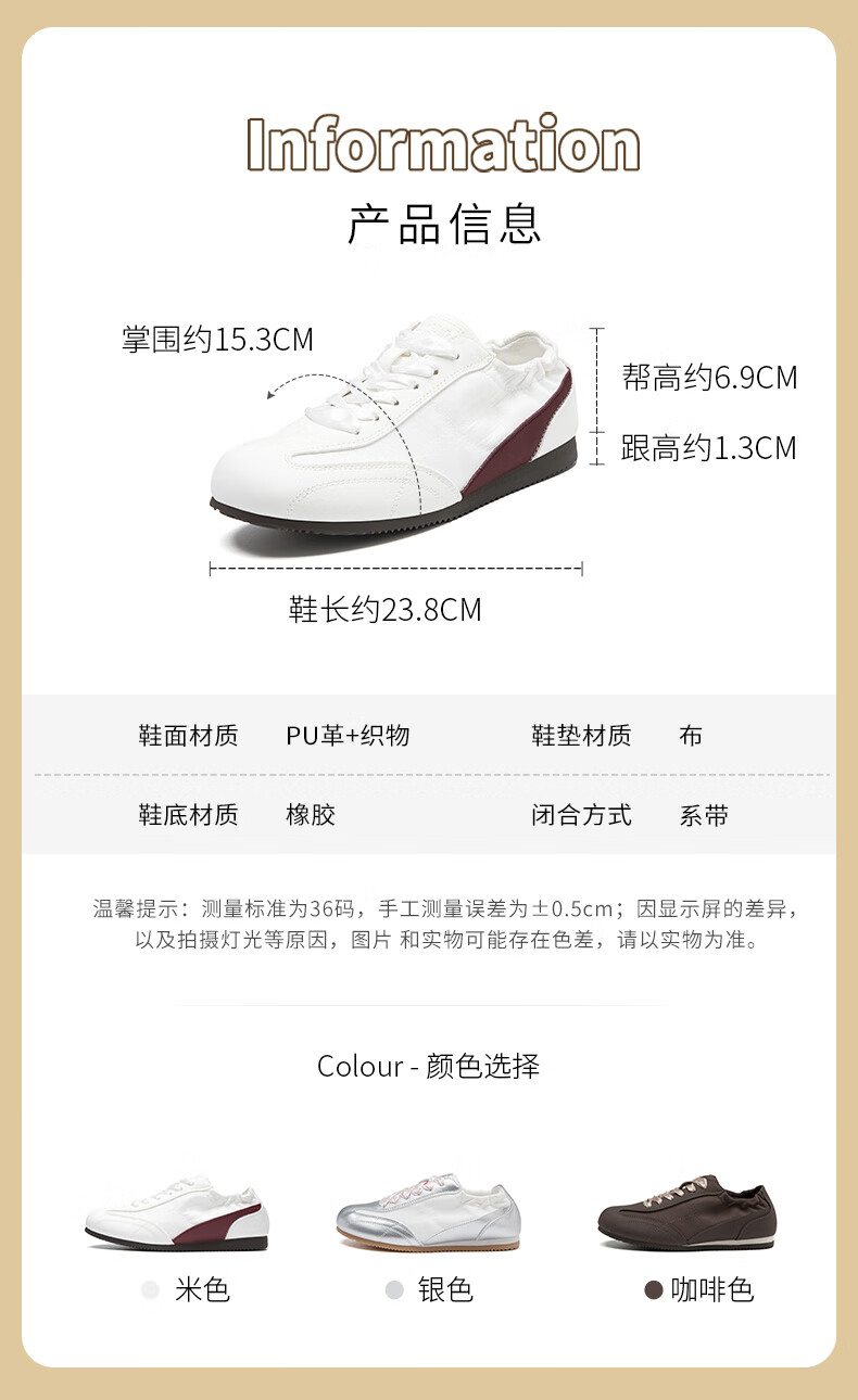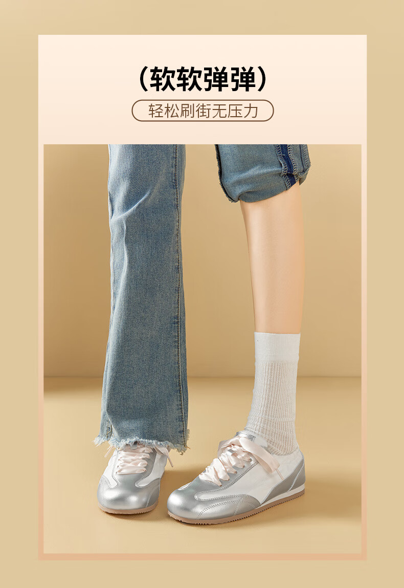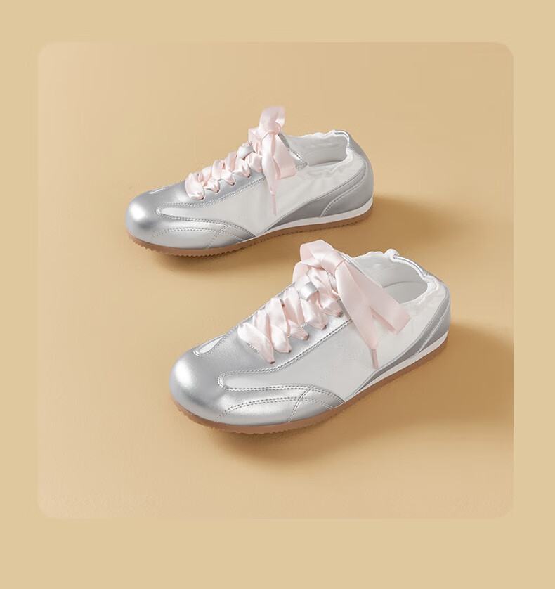 大东德训鞋女鞋2025年秋季新款时尚甜美圆头系带0783 银色 35