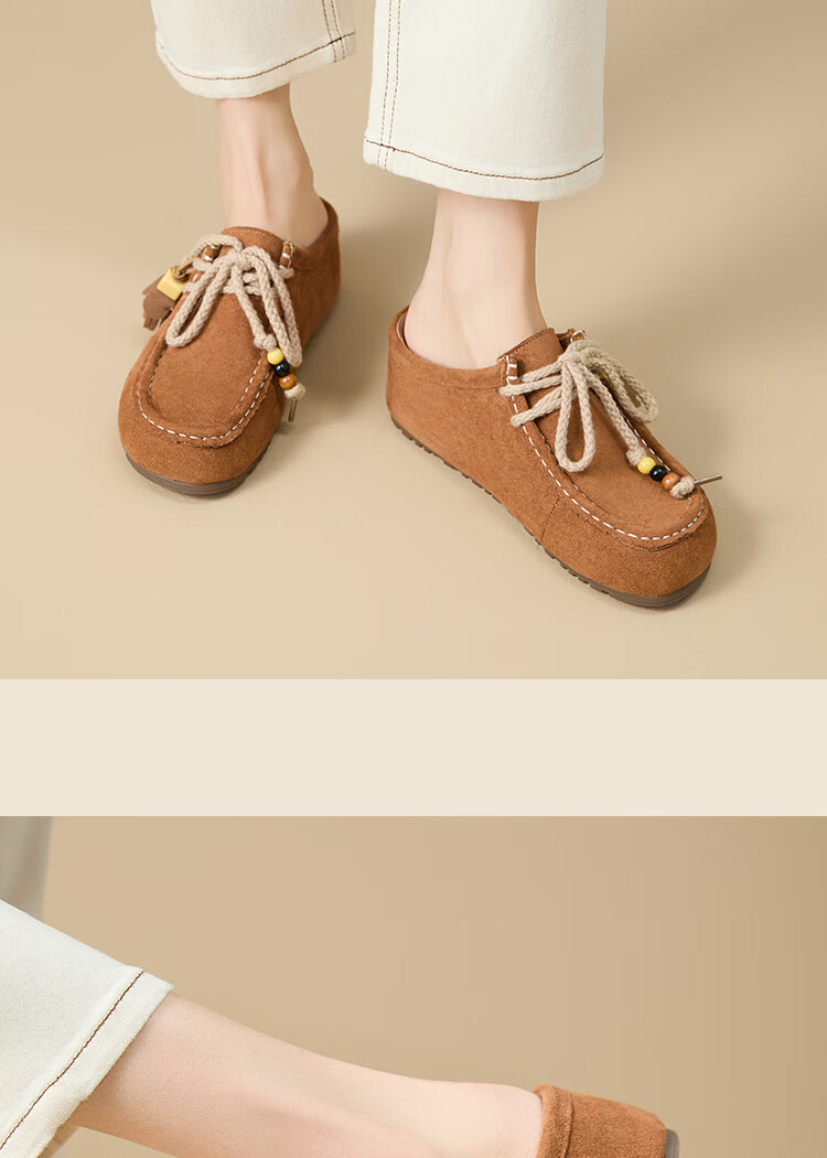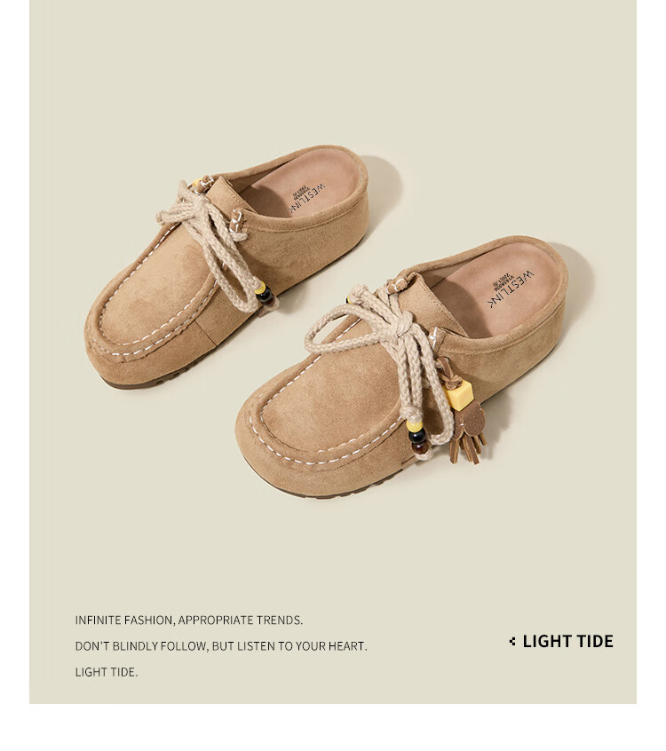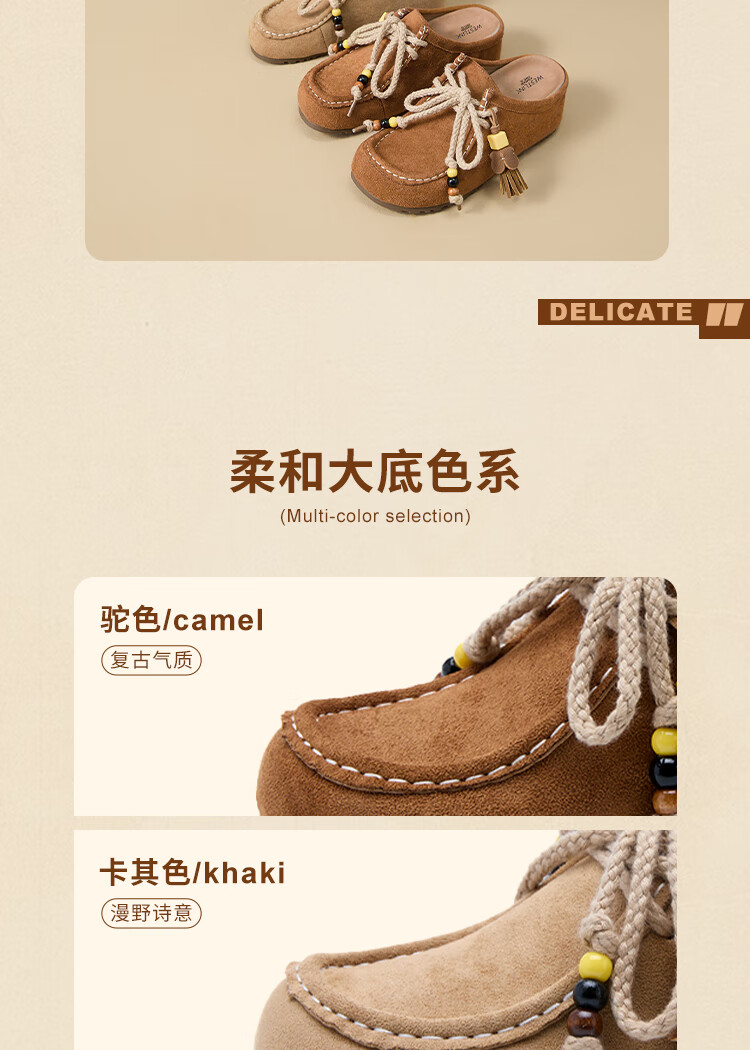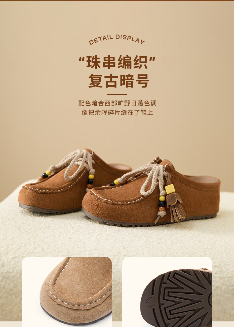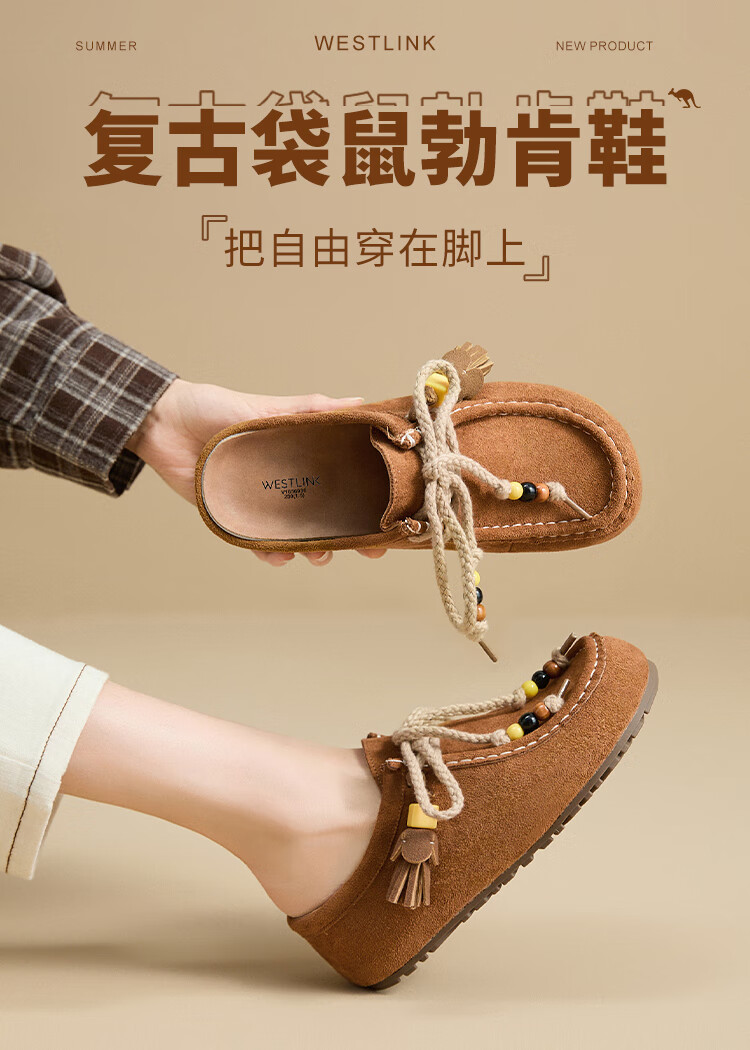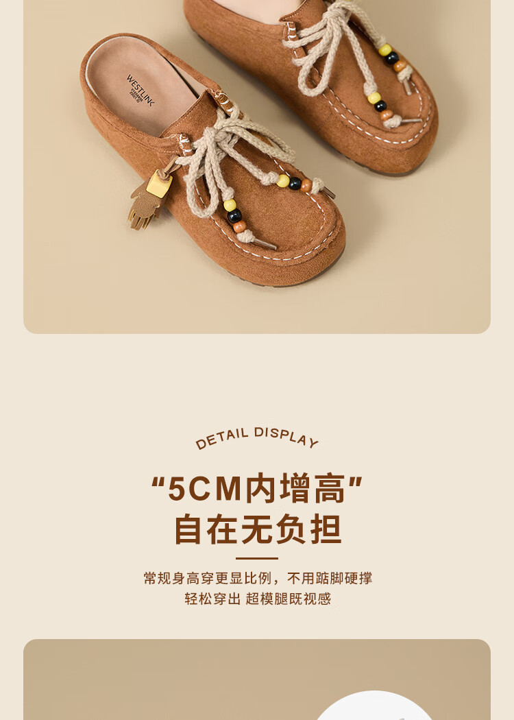 西遇内增高勃肯鞋女2025新款秋季复古袋鼠鞋包头半拖鞋 卡其色 36 (230)
