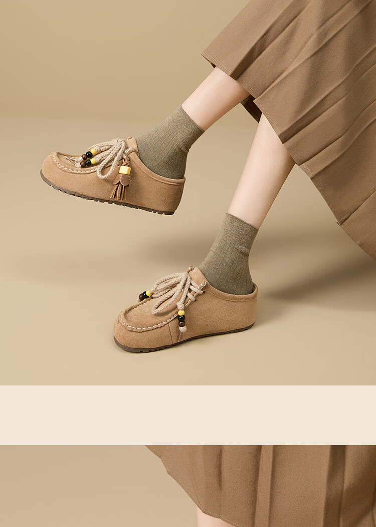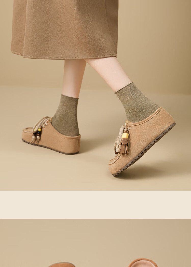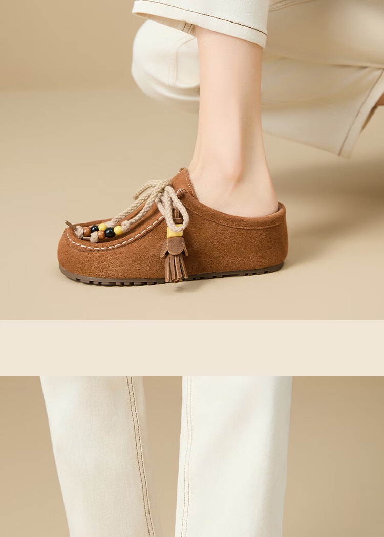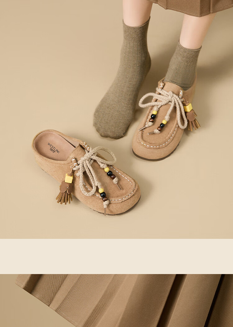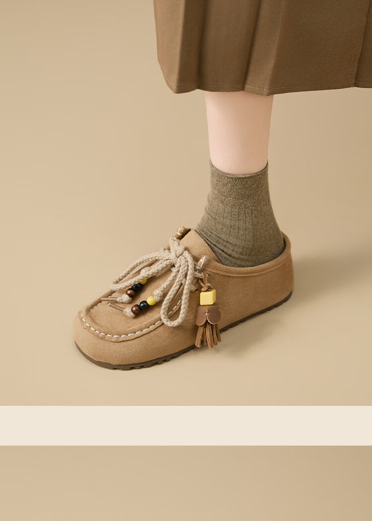 西遇内增高勃肯鞋女2025新款秋季复古袋鼠鞋包头半拖鞋 卡其色 36 (230)