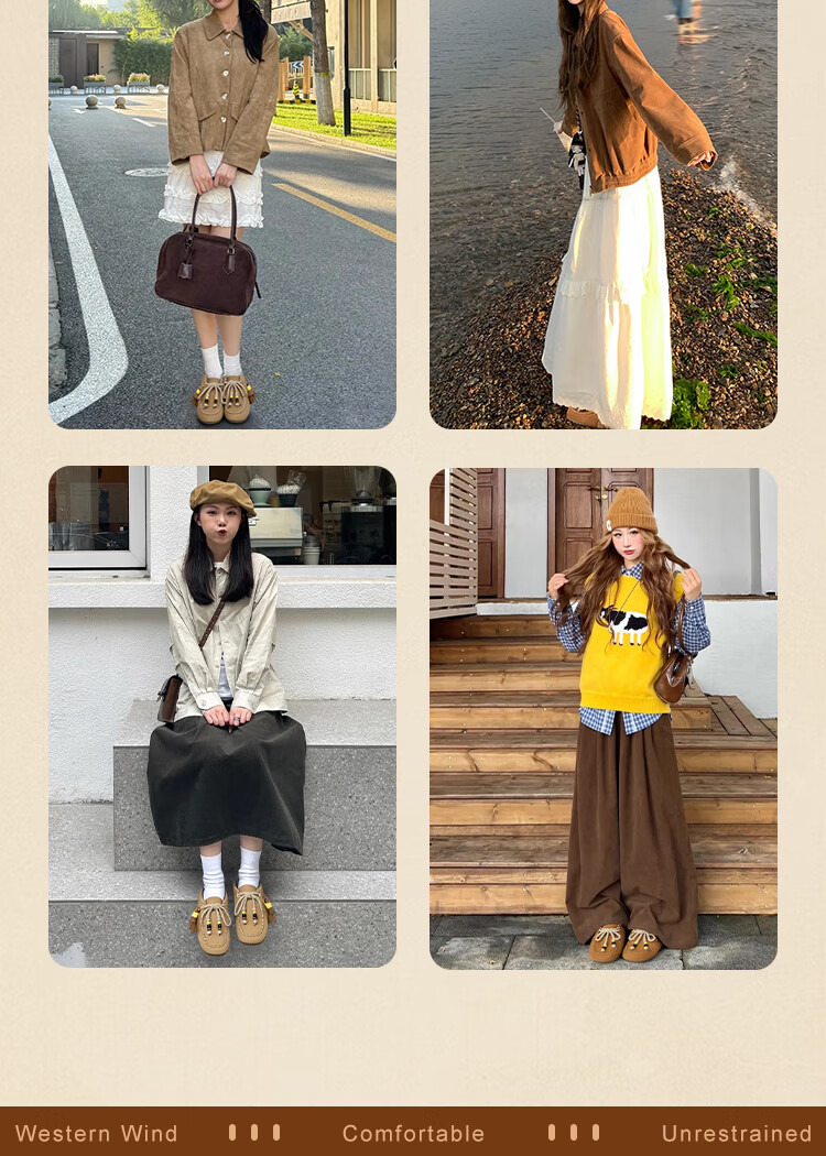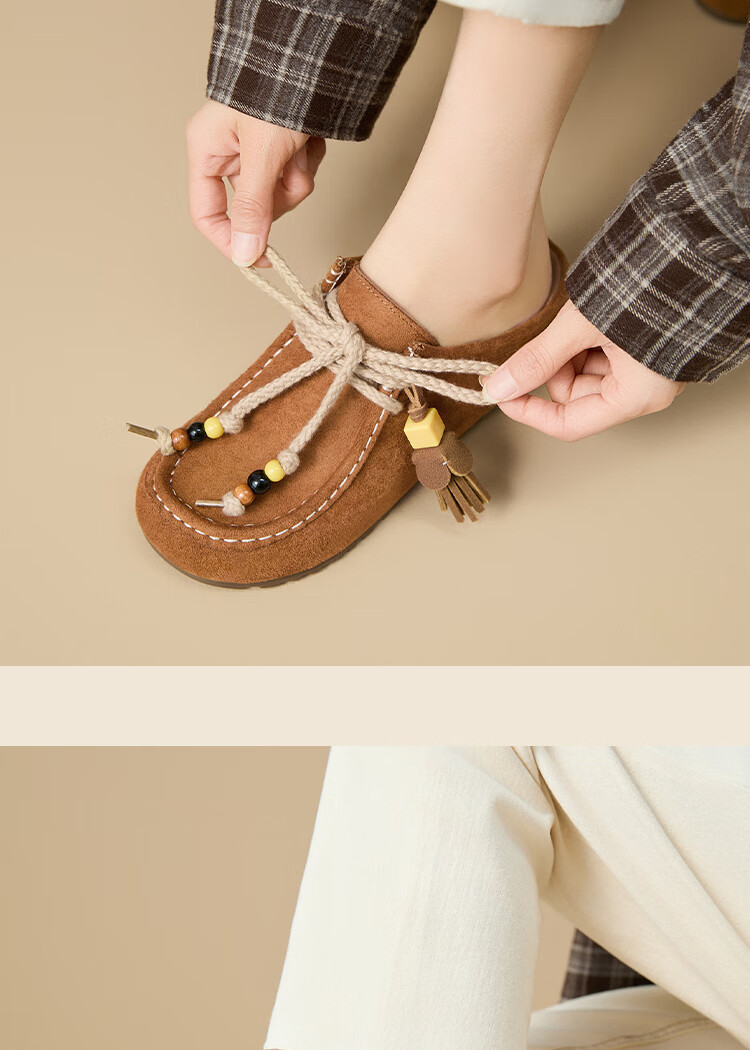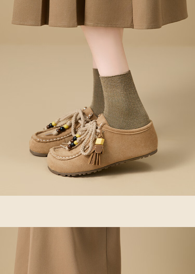 热风【迪士尼系列】复古西部靴女靴2025年冬季新款美拉德休闲时装靴子 08杏色 37