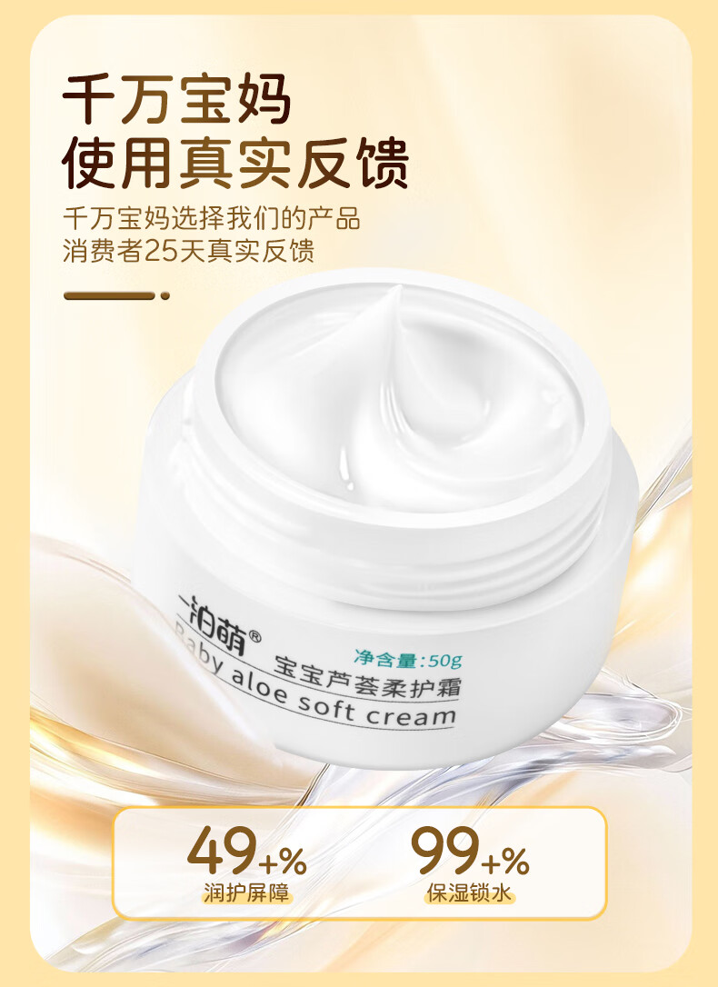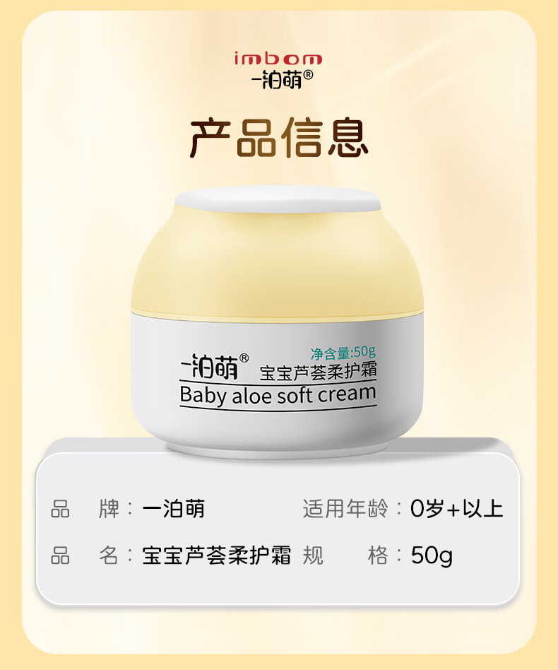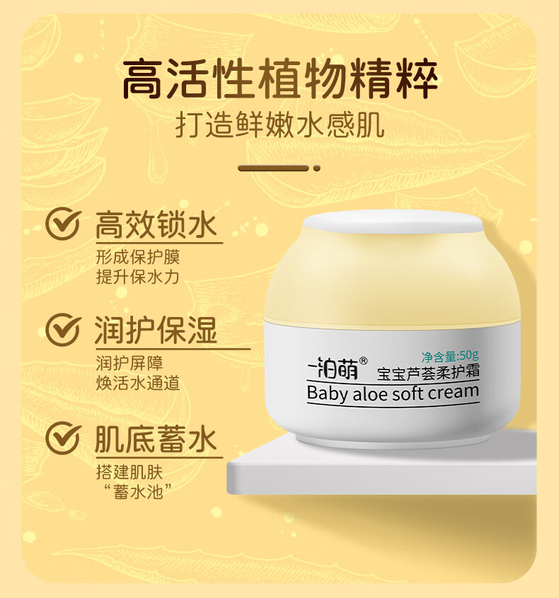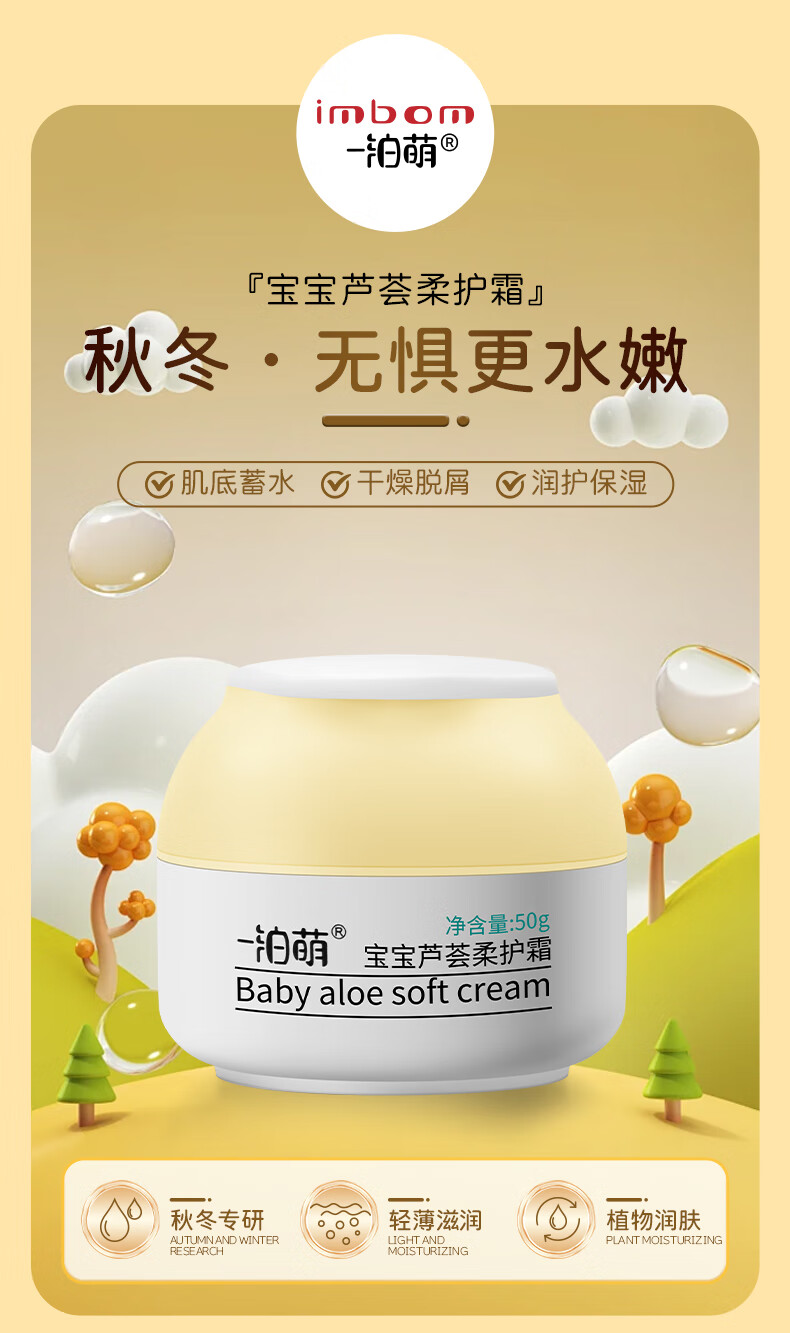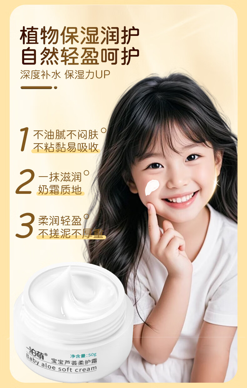 一泊萌【官方】宝宝芦荟柔护霜宝宝春秋滋润面霜儿童面霜苹果脸润肤保湿 芦荟霜50g*1+维E50g*1+身体乳*1