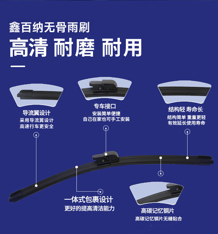 鑫百纳无骨雨刷器静音雨刮片专车专用雨刮工厂直供【北汽专用】 无骨雨刷1对装 威旺S50(2016)20+16 A