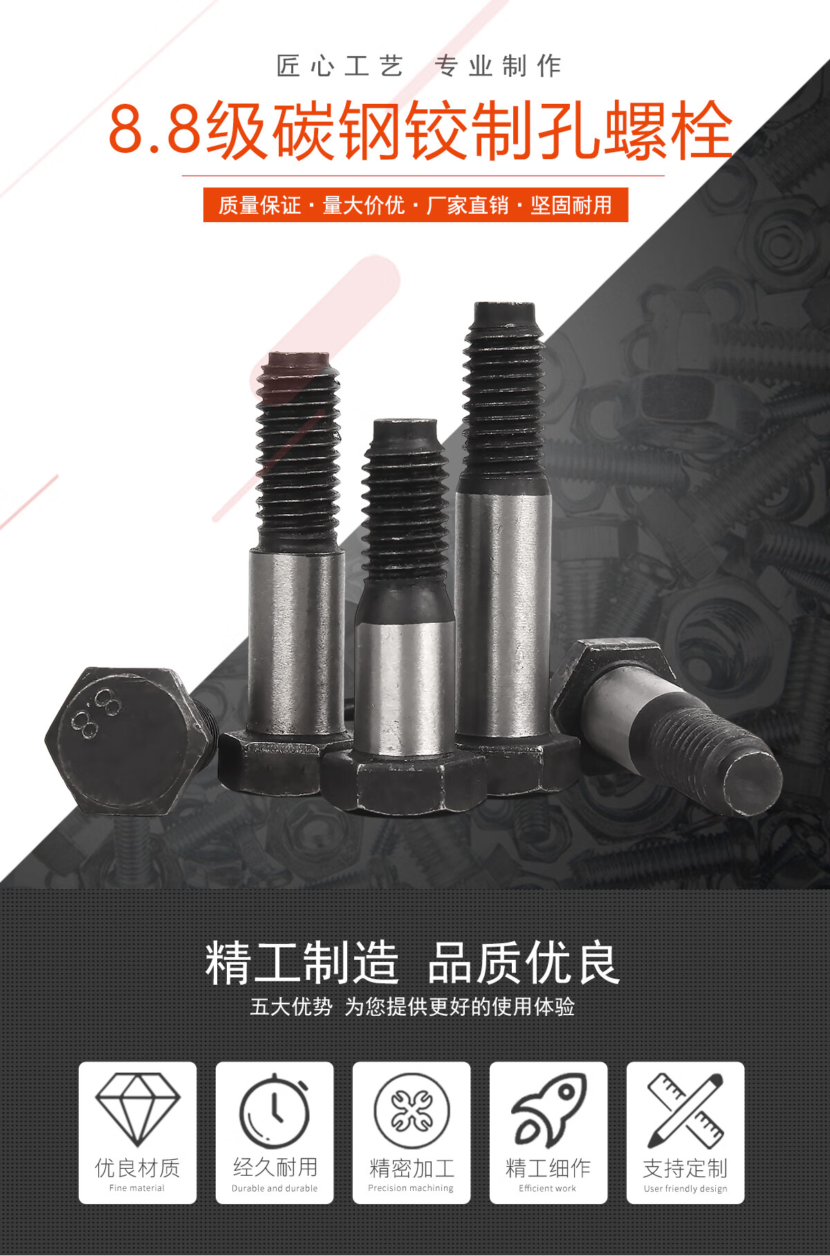 宝德丰8.8级铰制孔螺栓绞制孔用螺栓gb27定位塞打螺丝M8M10M12M16M20M36 M10*35[20个]