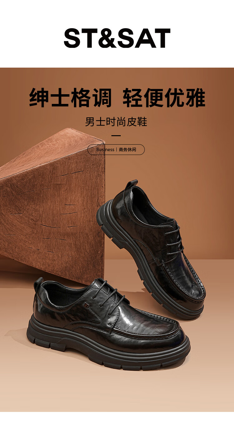 星期六男鞋时尚头层牛皮商务正装皮鞋男百搭休闲皮鞋通勤鞋子男