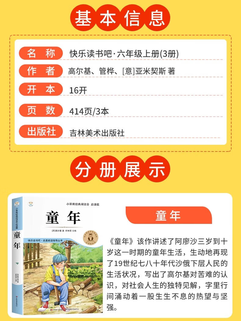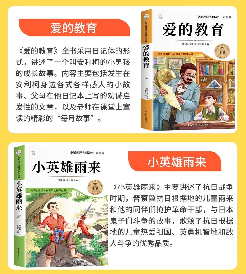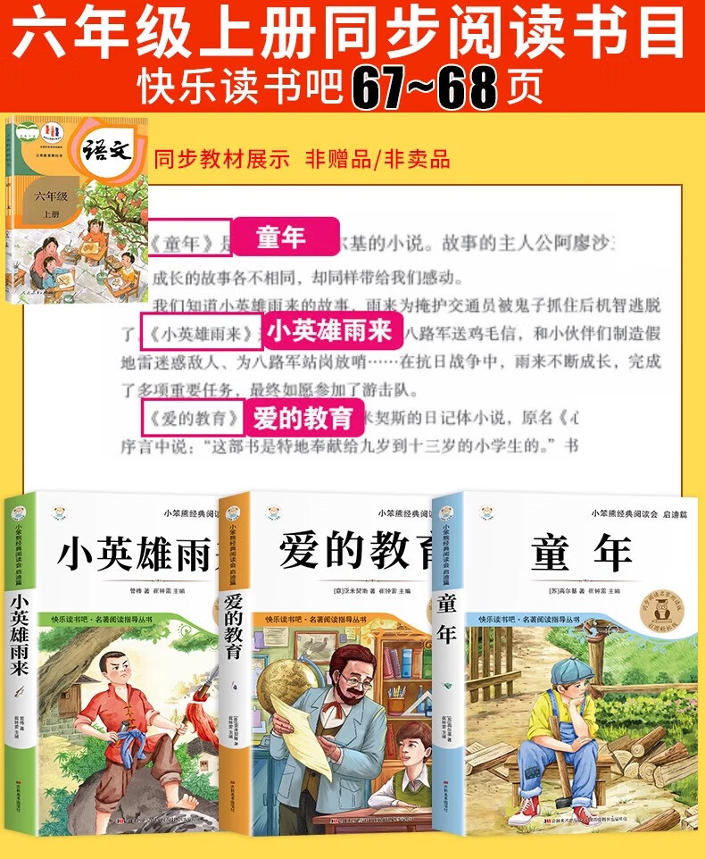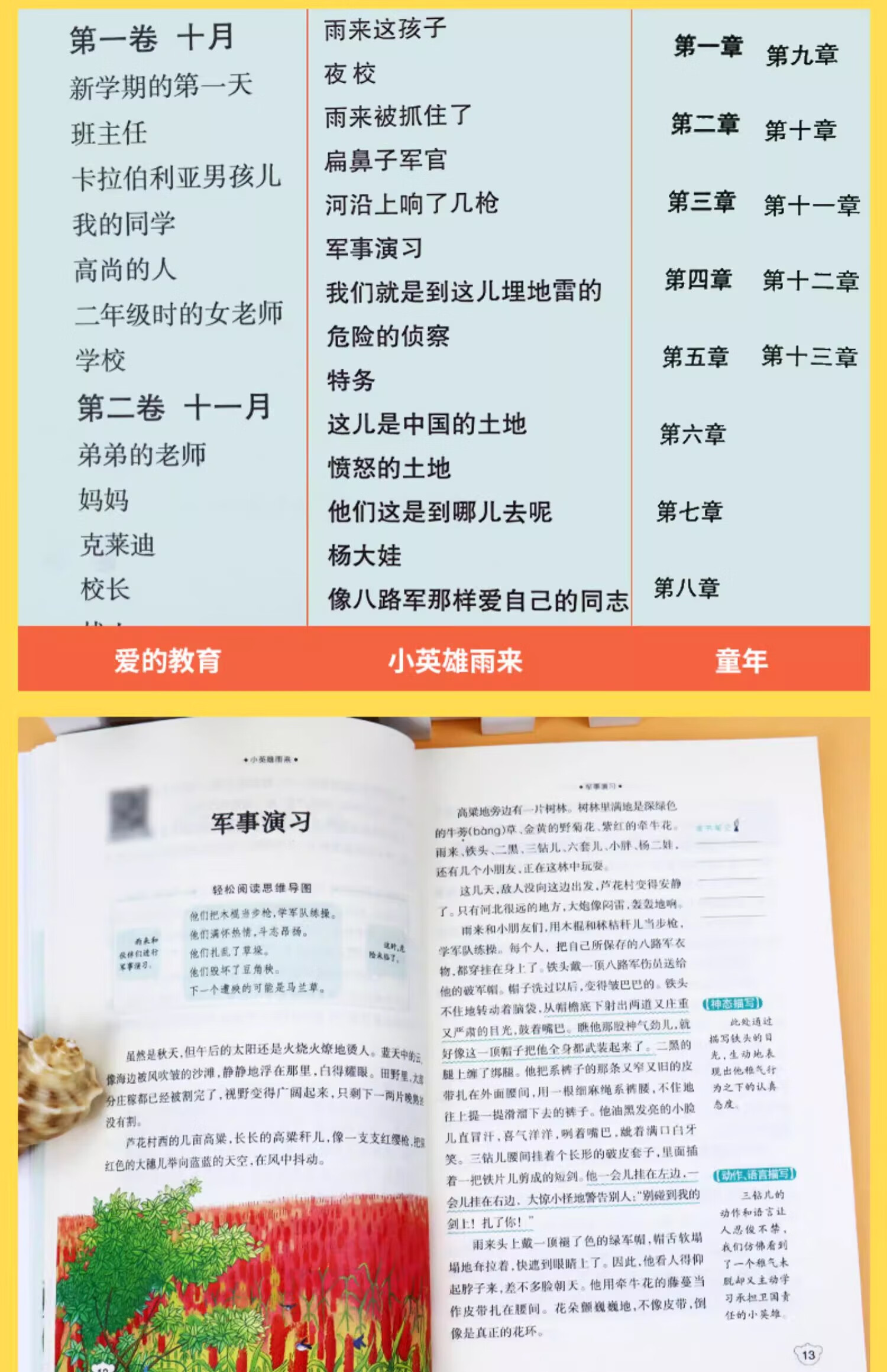【邺水定制】童年爱的教育六年级上册课外阅读快乐读书吧英雄雨来 童年+爱的教育+小英雄雨来