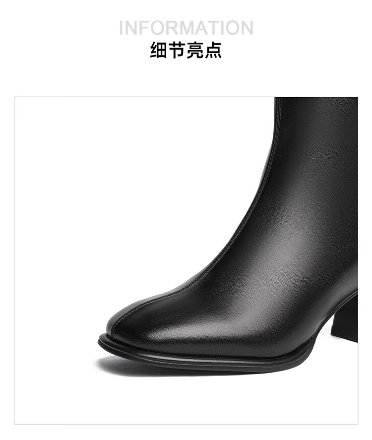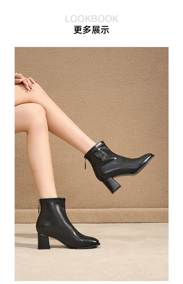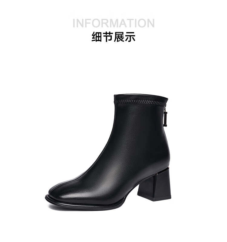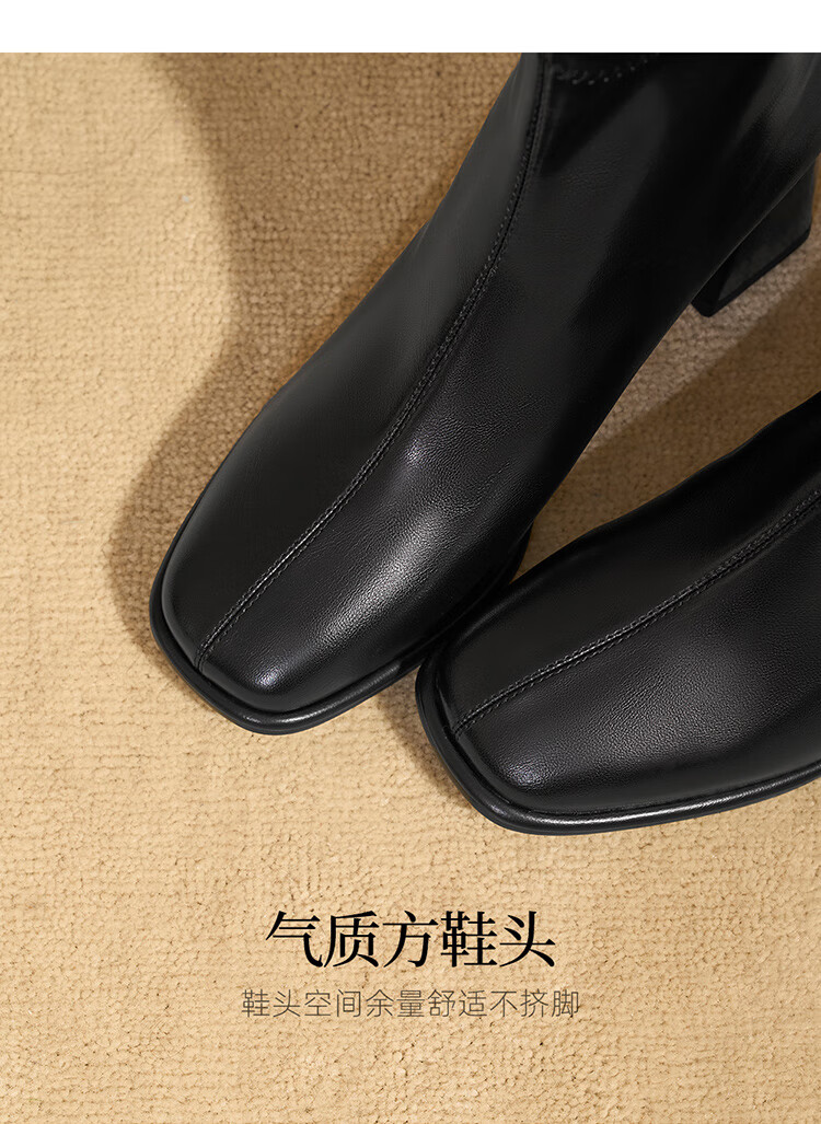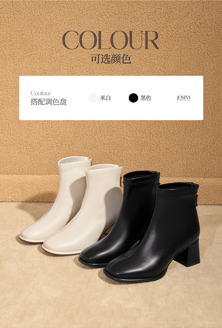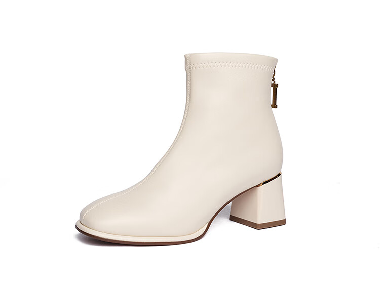 卓诗尼优雅方头时装靴女2025秋季新款舒适后拉链气质高跟短靴 米白色 35