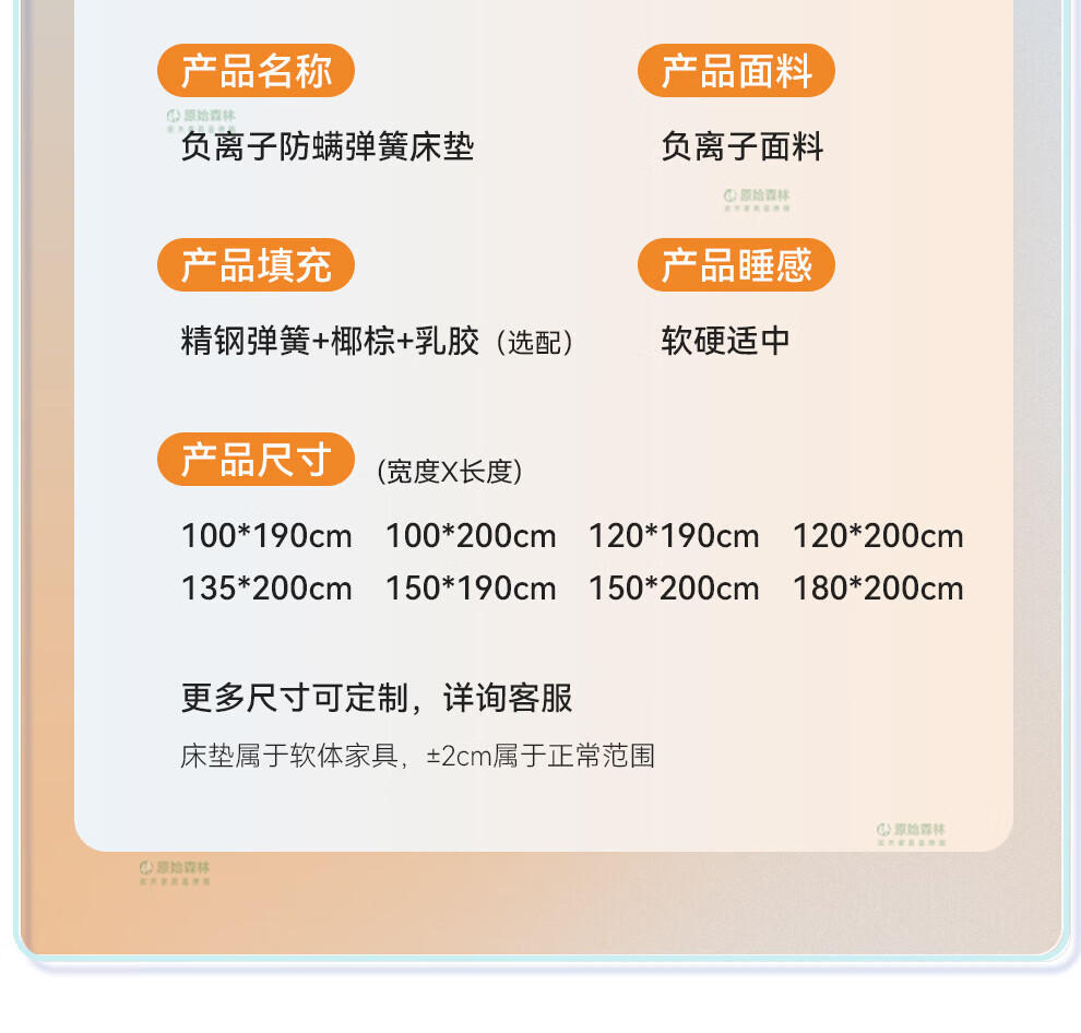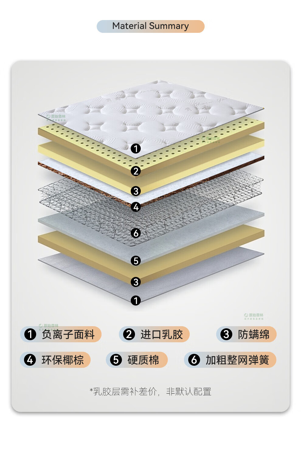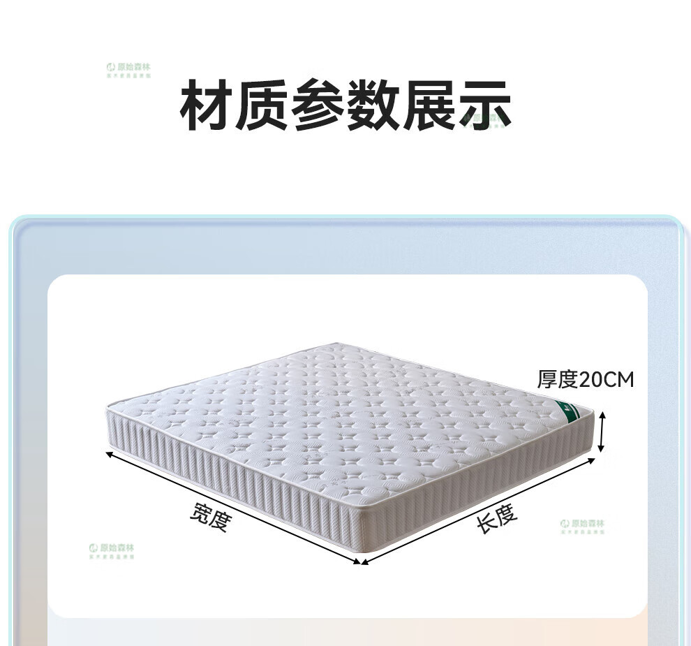 原始森林20cm弹簧床垫精钢弹簧椰棕乳胶床垫抗菌高回弹不塌陷家用加厚床垫 20cm弹簧床垫 1200mm*1900mm
