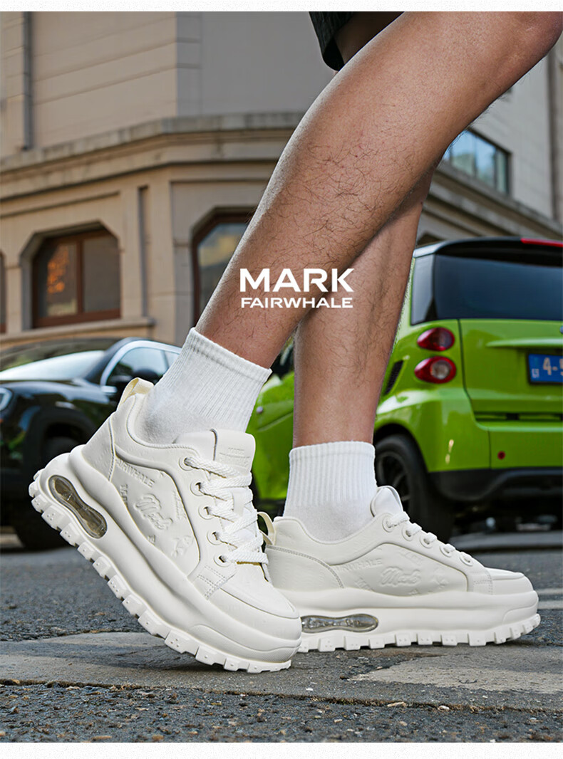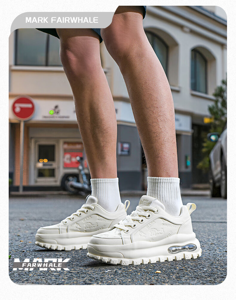 马克华菲男鞋厚底老爹鞋2025新款秋季增高鞋子男士运动休闲鞋 白棕 45