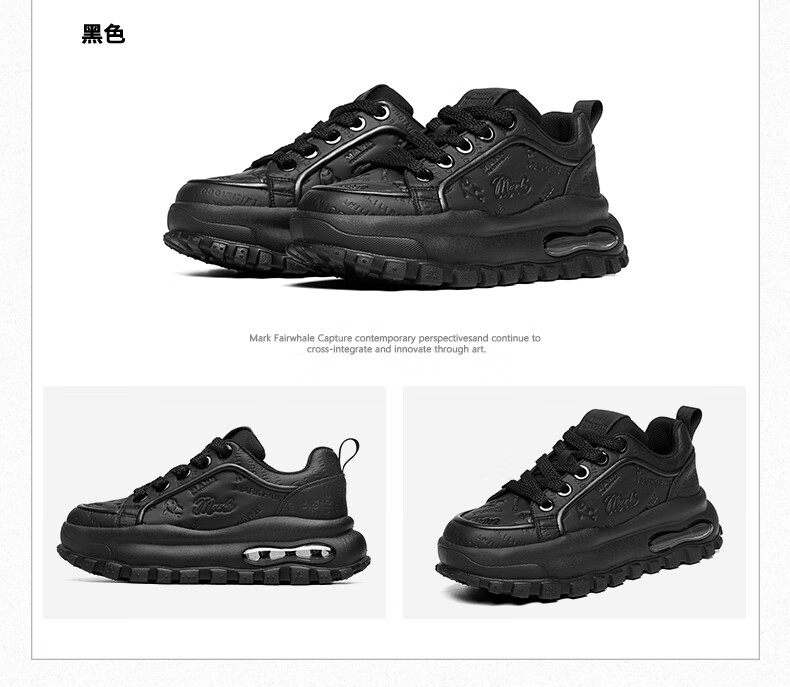 马克华菲小白鞋男2025夏季透气休闲鞋男气垫运动鞋厚底增高男鞋 黑色 39
