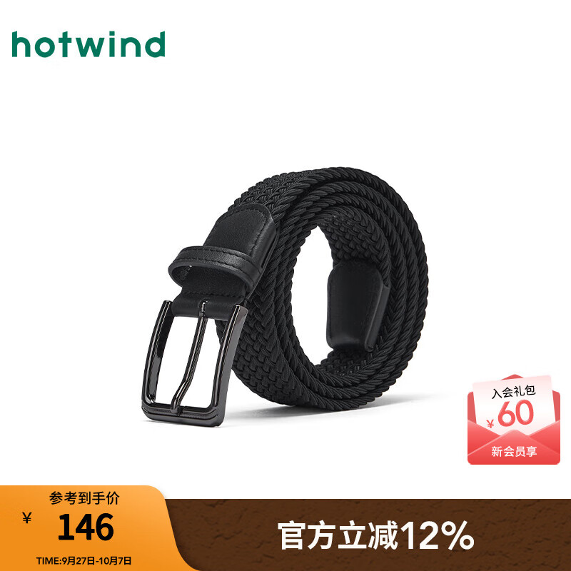 热风【商场同款】男腰带25年秋新款时尚潮流编织针扣皮带裤装腰带配件 01黑色 120cm