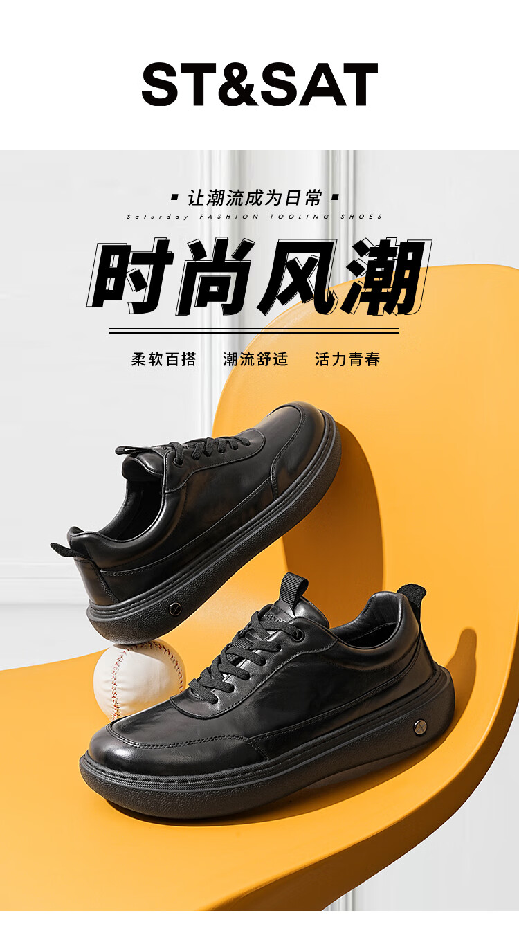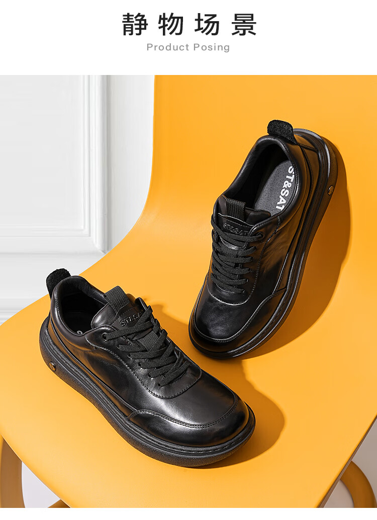 星期六星期六男鞋牛皮时尚百搭商务正装皮鞋男通勤鞋休闲皮鞋子男
