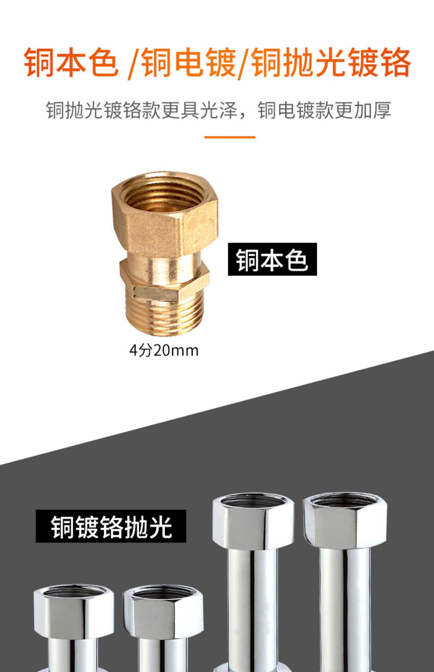 一靓黄铜4分内外丝直接头6分变4分螺纹接头变径加长伸缩接头水管配件 黄铜延长接头可伸缩4分内丝4分外