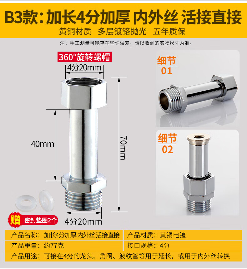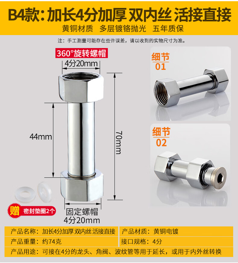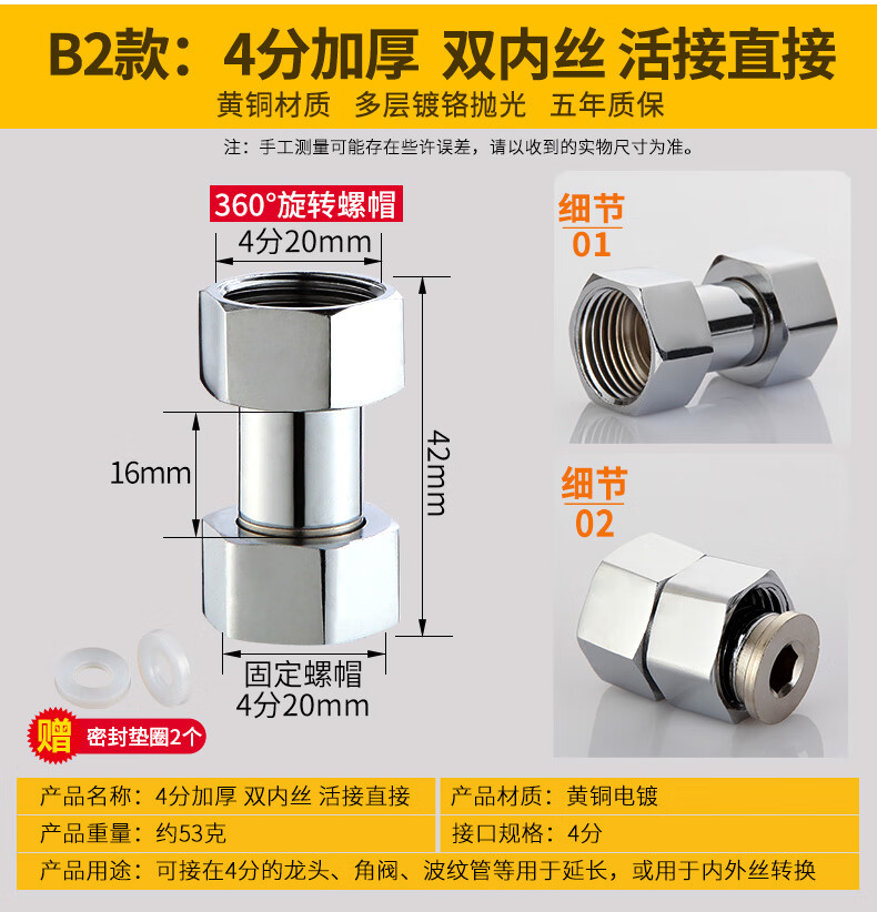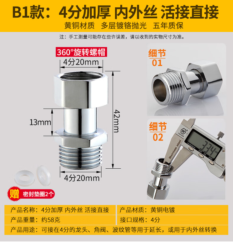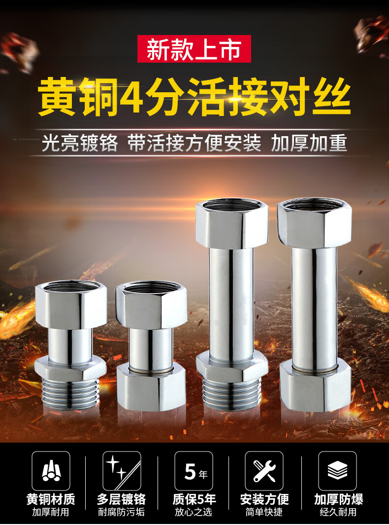 一靓黄铜4分活接加长内外丝直接对丝短丝对接进水管接头加厚管件配件 【4分特厚内外丝】黄铜电镀