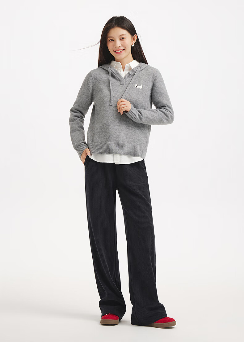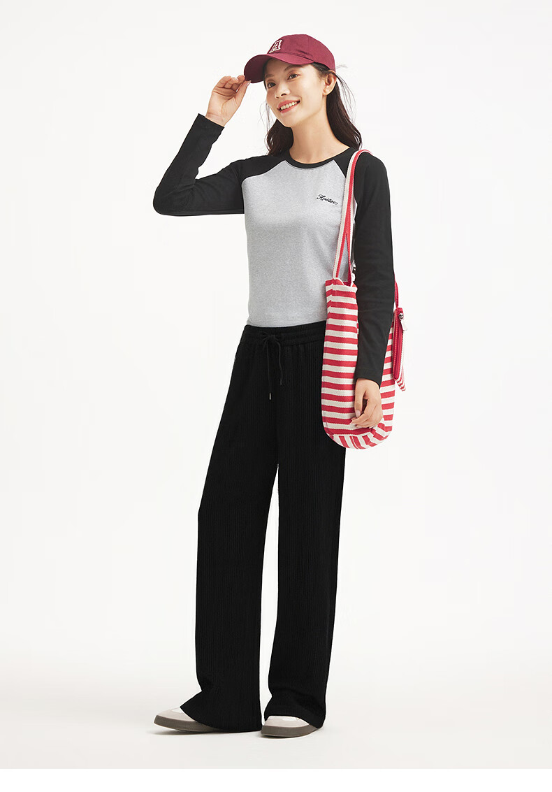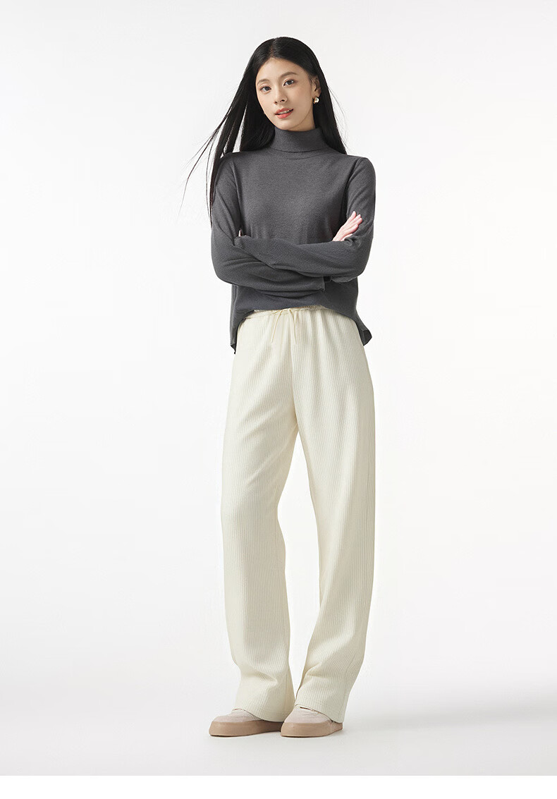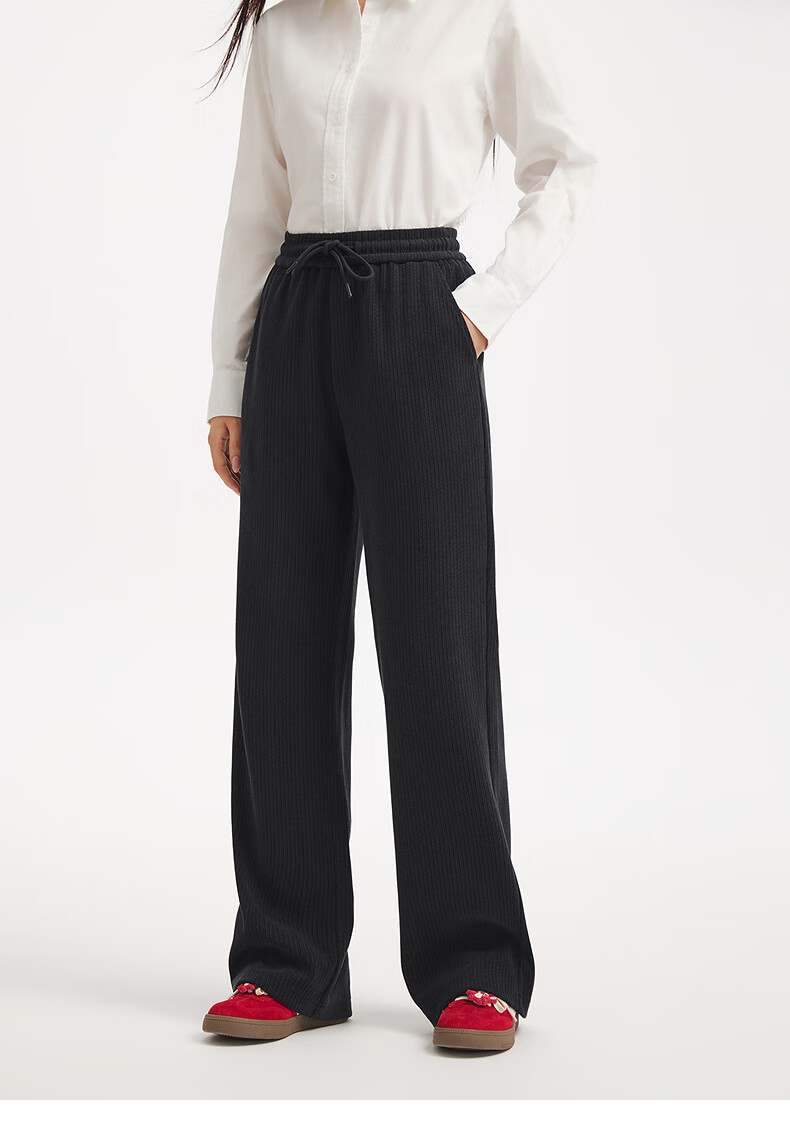 热风2025年冬季新款女士肌理直筒裤 01黑色 S