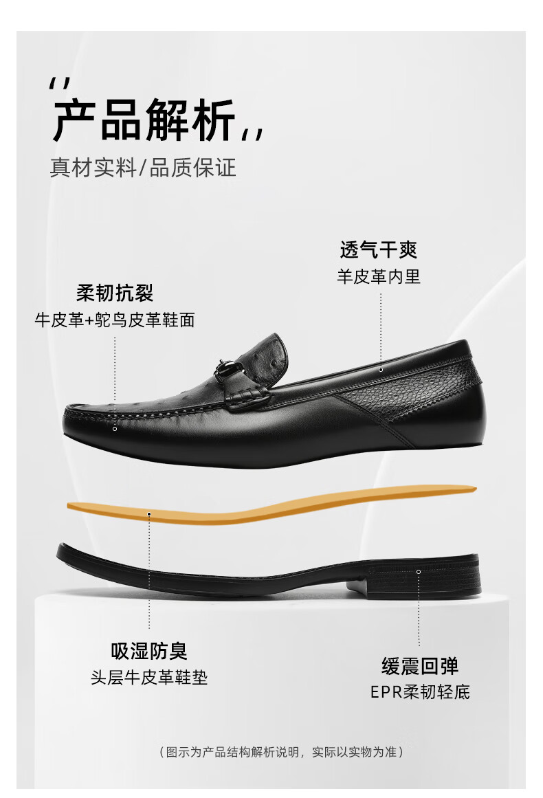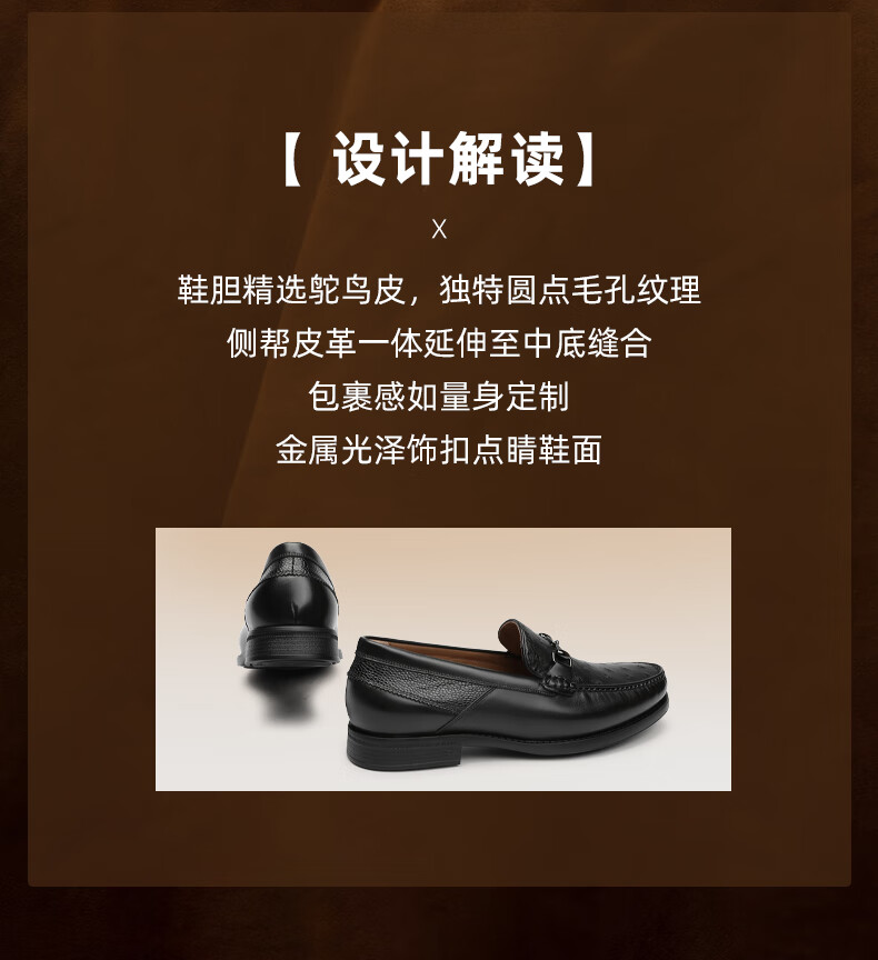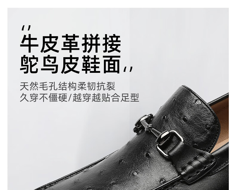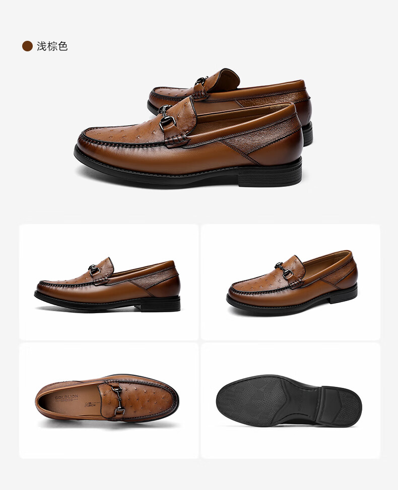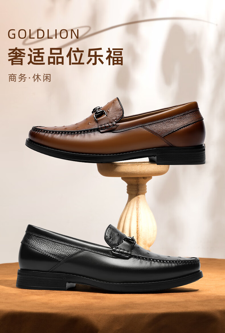 金利来(goldlion)男鞋商务休闲皮鞋轻奢鸵鸟皮革拼接牛皮革套脚乐福鞋男士正装皮鞋 浅棕 43