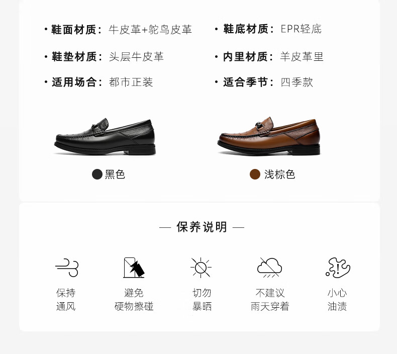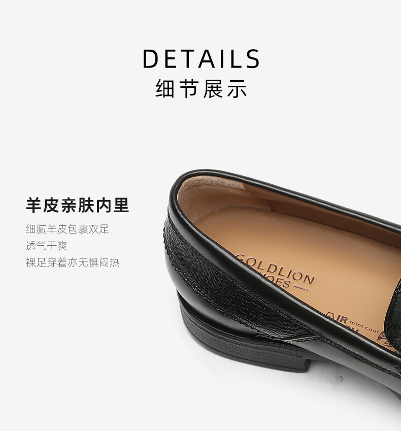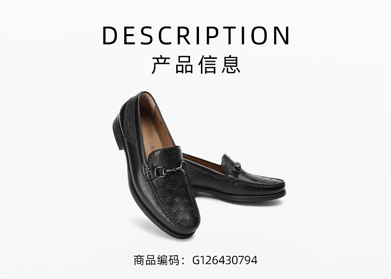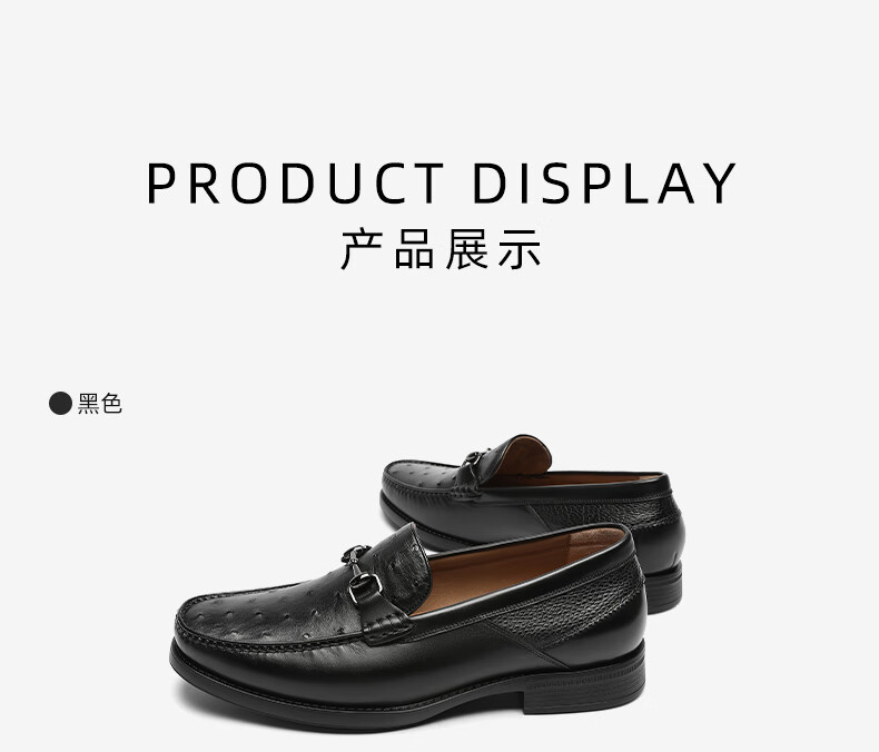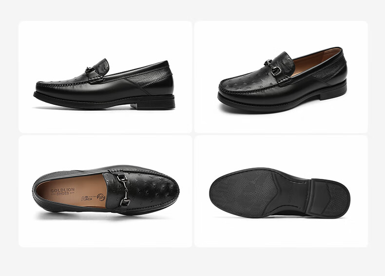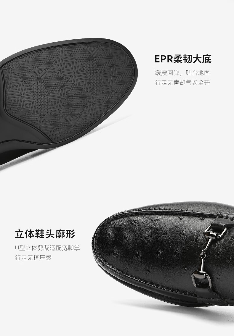 金利来(goldlion)男鞋商务休闲皮鞋轻奢鸵鸟皮革拼接牛皮革套脚乐福鞋男士正装皮鞋 浅棕 43