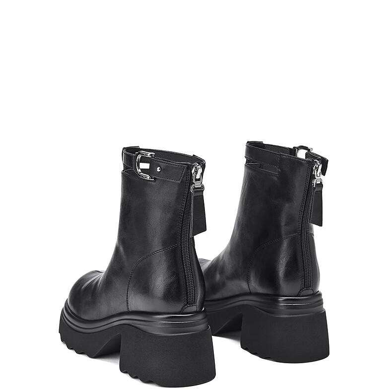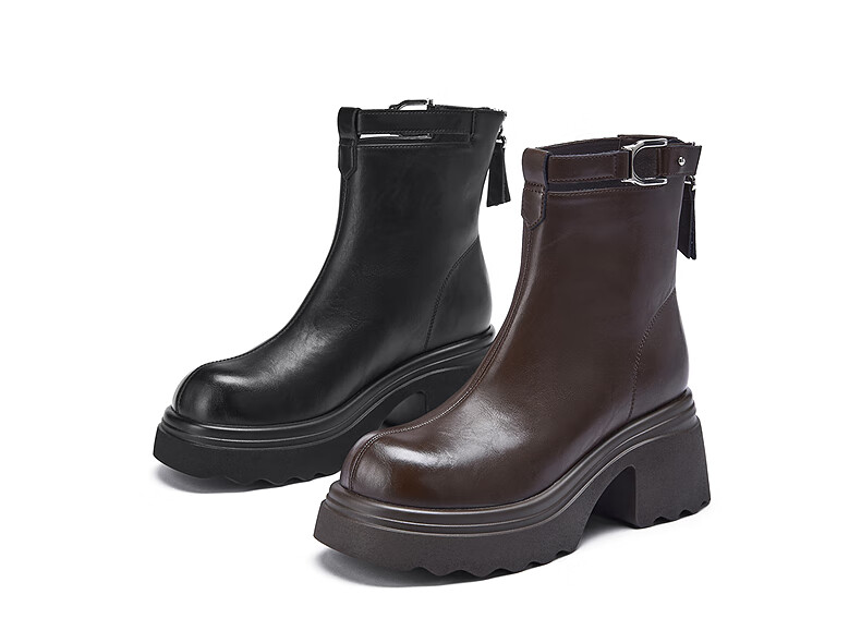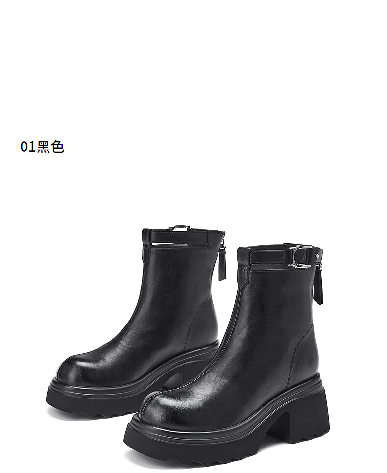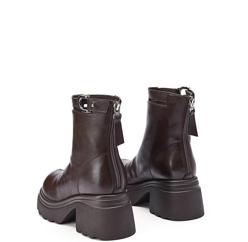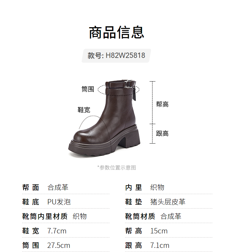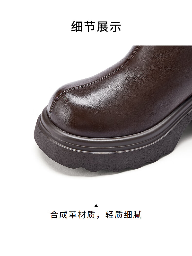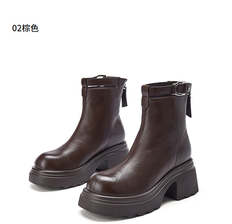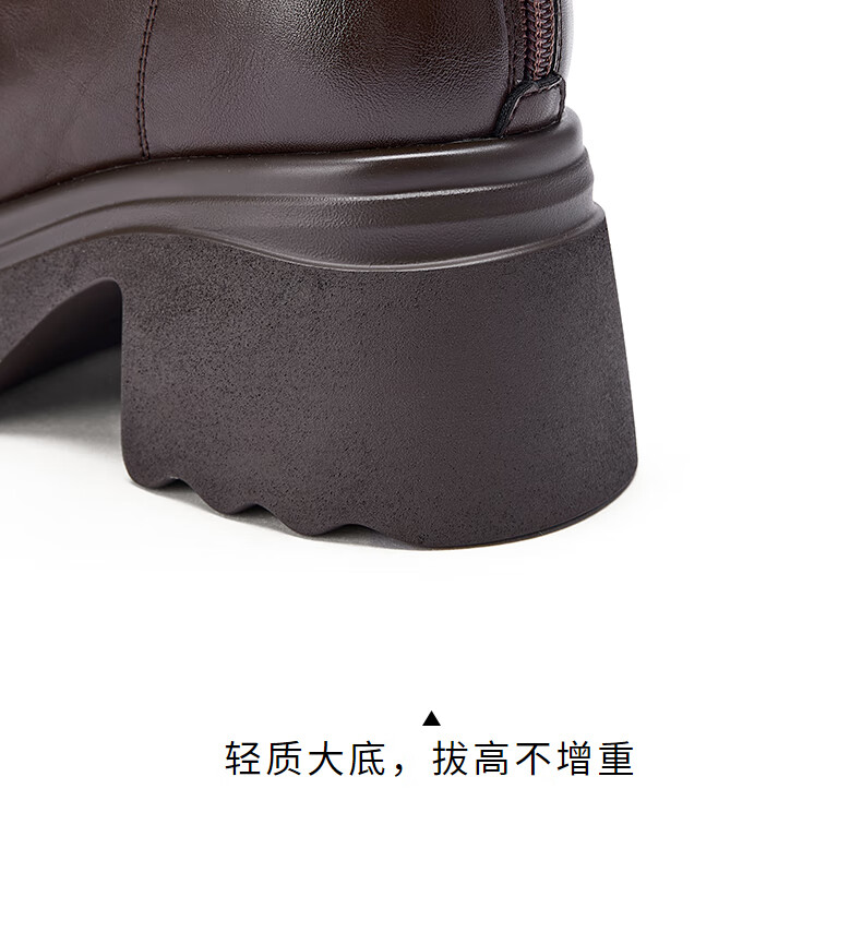 热风厚底时装靴女2025年冬季新款百搭瘦瘦靴小个子增高短靴子女鞋 02棕色 34
