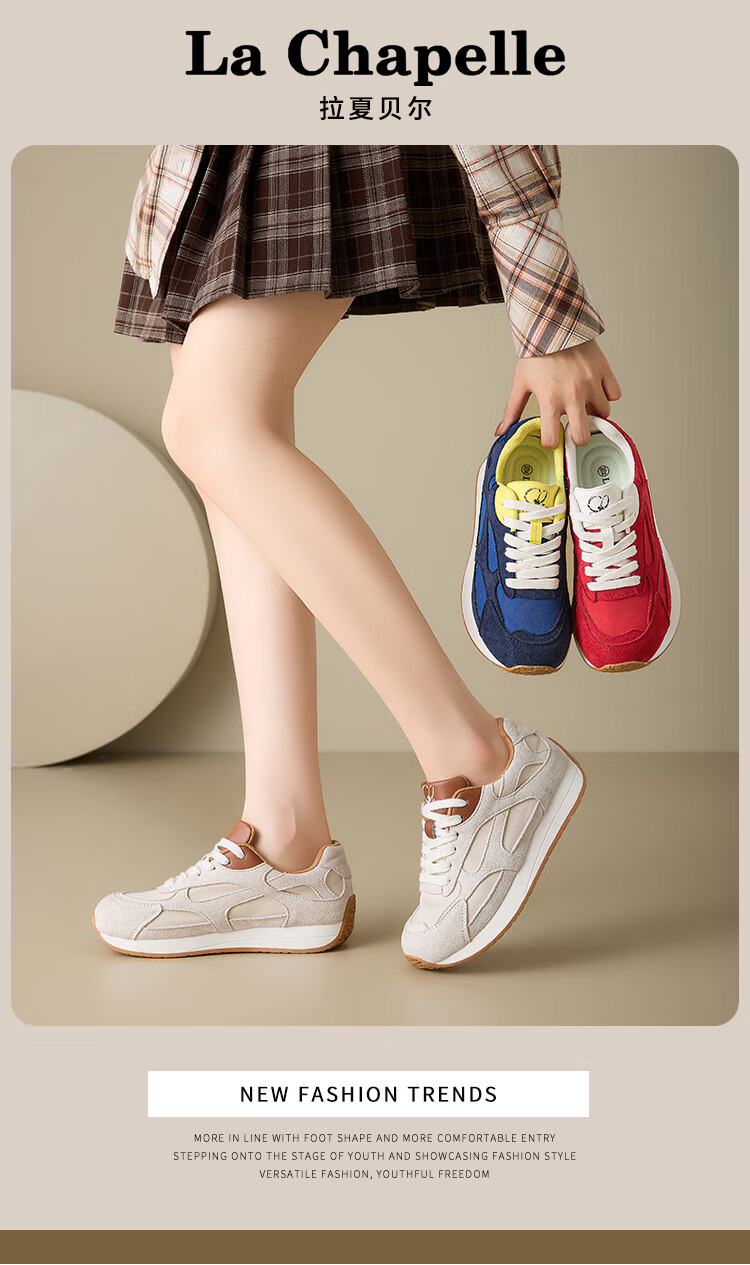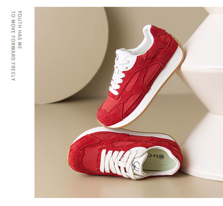 拉夏贝尔女鞋夏季运动女鞋舒适透气不闷脚休闲百搭不累脚通勤女鞋 红色 35
