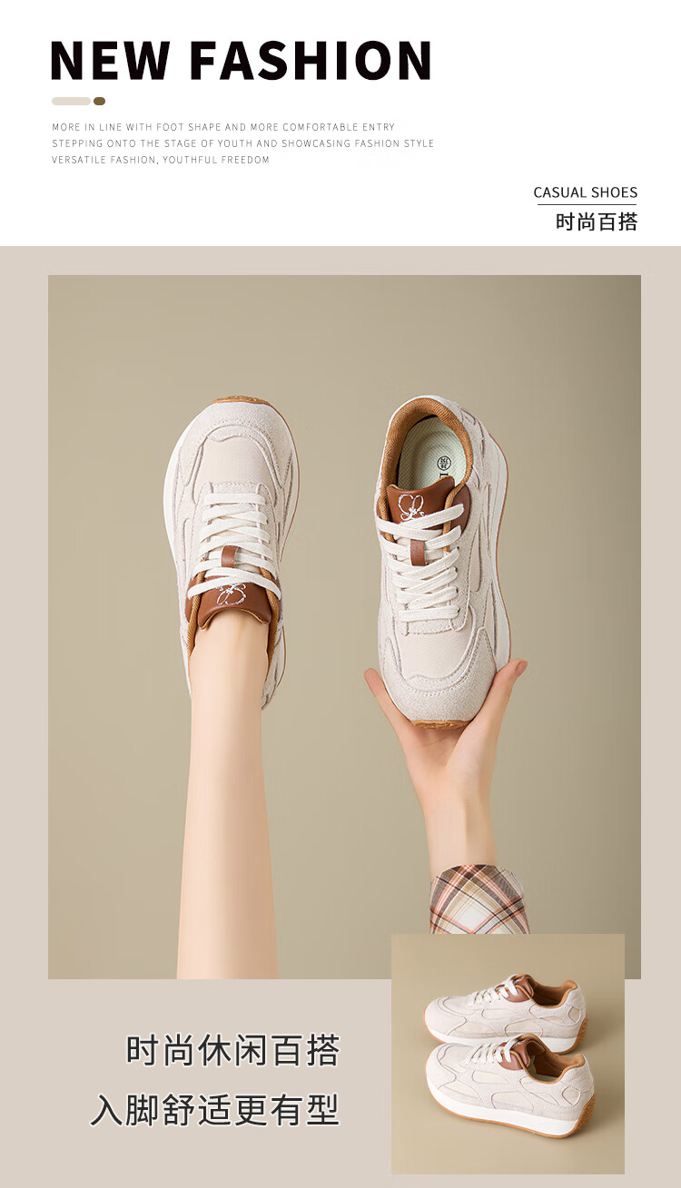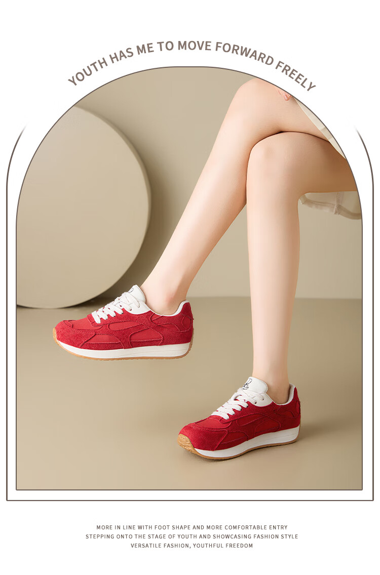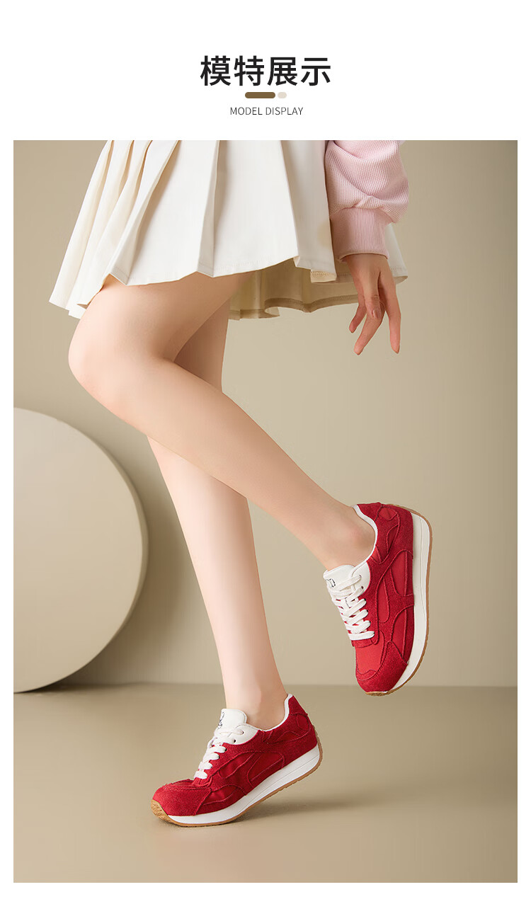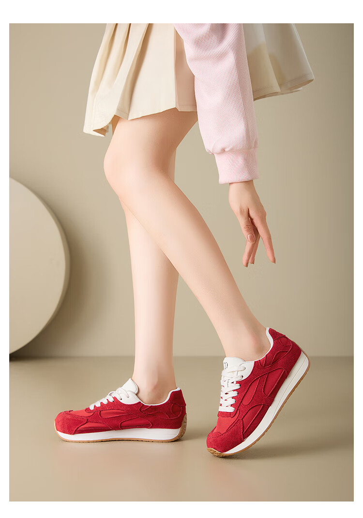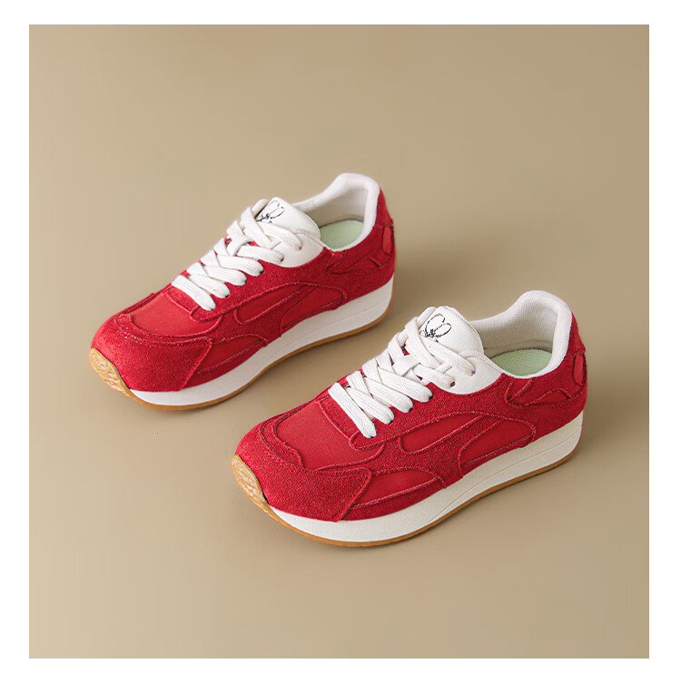 大东老爹鞋女鞋2025年秋季新款时尚潮流休闲鞋拼接5015 米红色 35