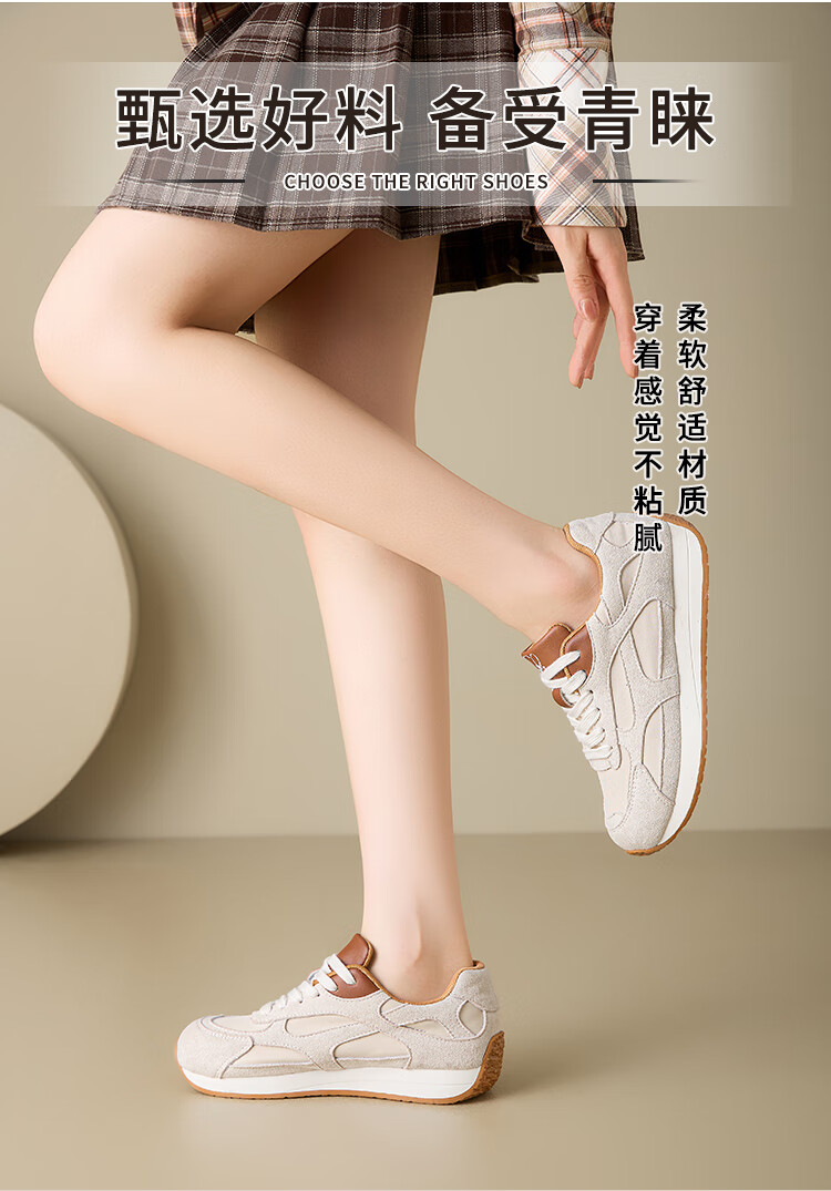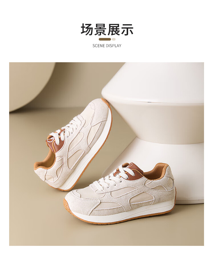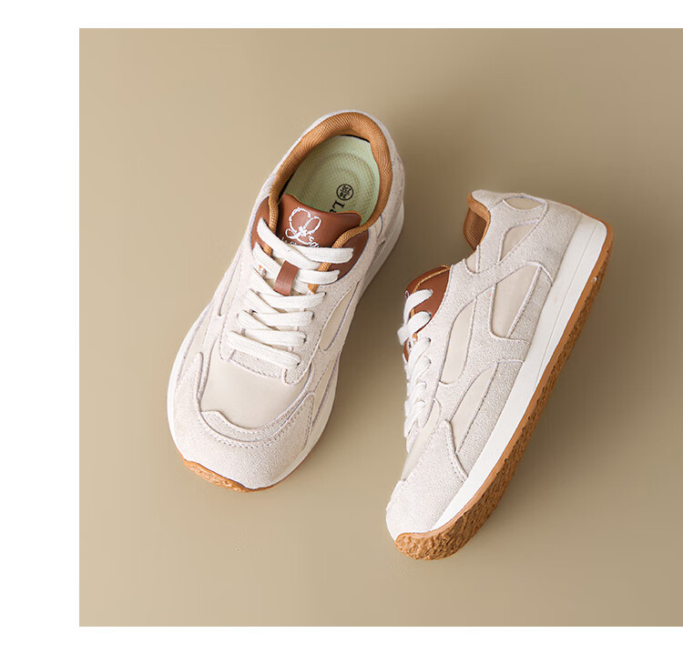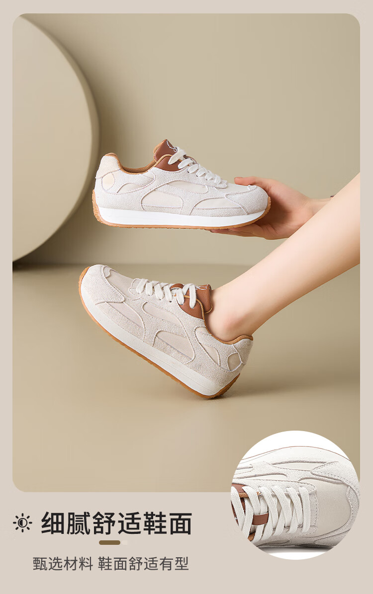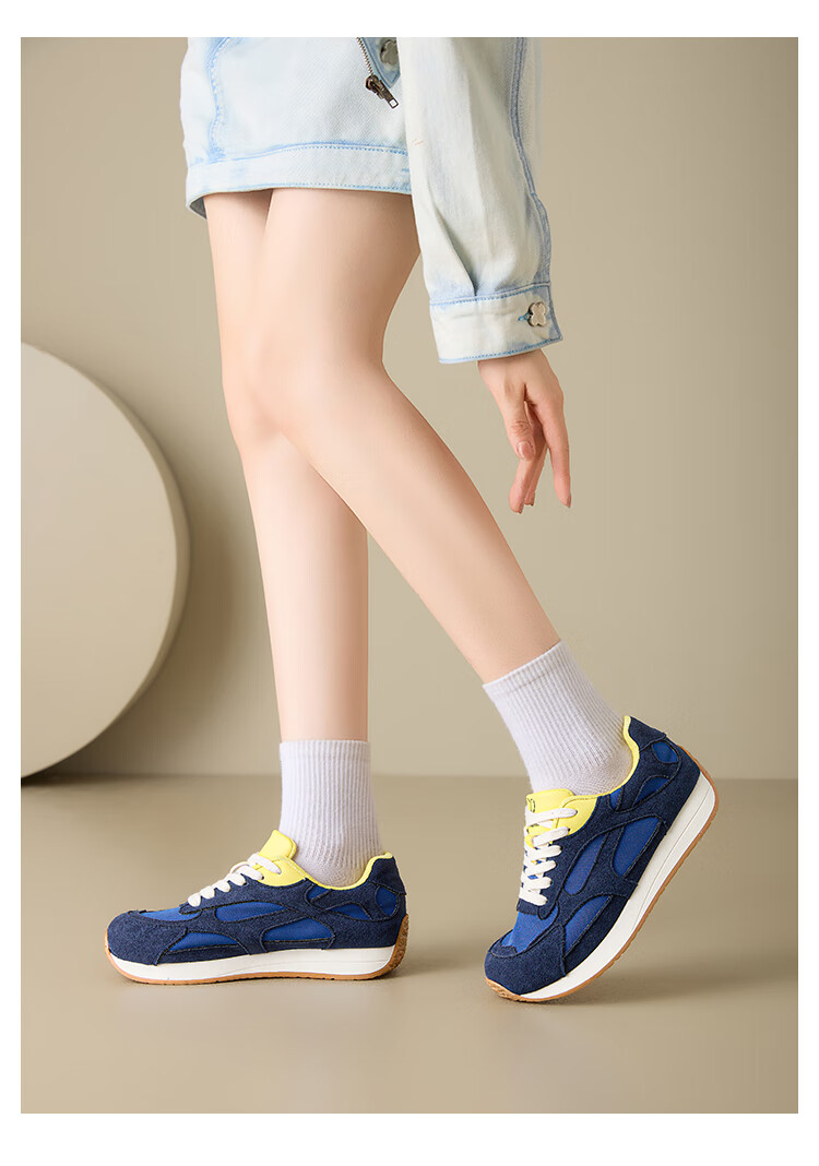大东老爹鞋女鞋2025年秋季新款时尚潮流休闲鞋拼接5015 米红色 35