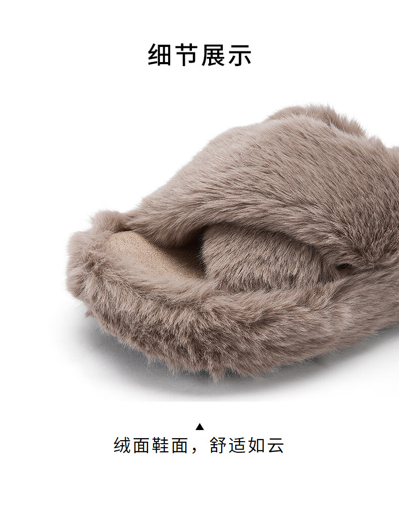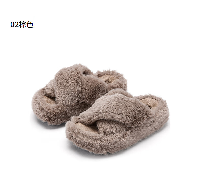 热风【商场同款】加绒毛毛拖女2025年冬季新款保暖毛绒家居鞋百搭女鞋 02棕色 35-36 S