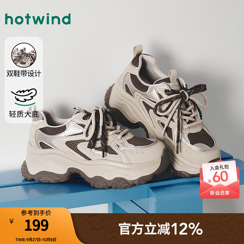 热风女鞋厚底老爹鞋2025年秋季新款女士增高透气网面鞋轻便休闲运动鞋 121杏棕 37