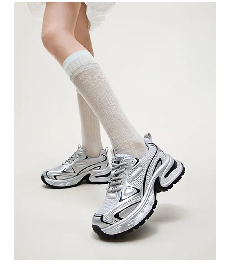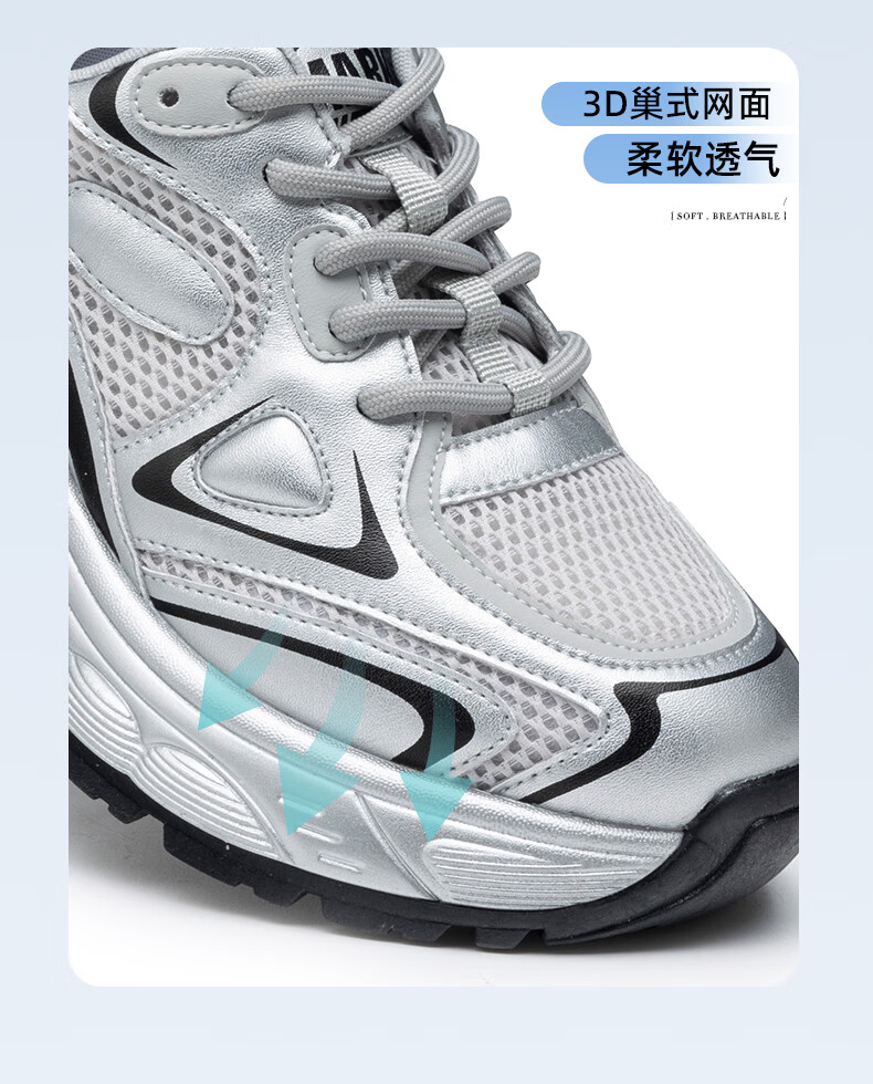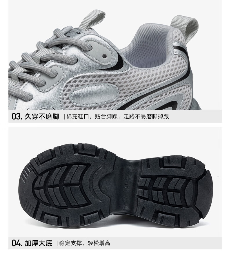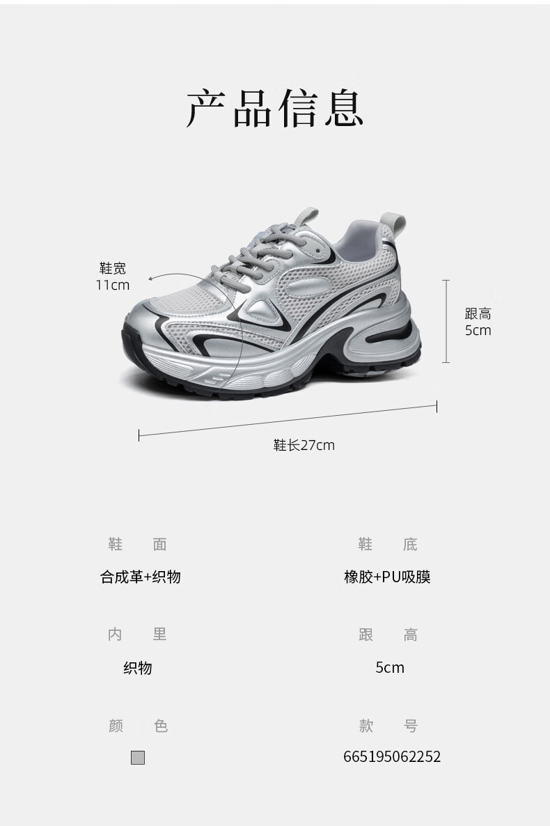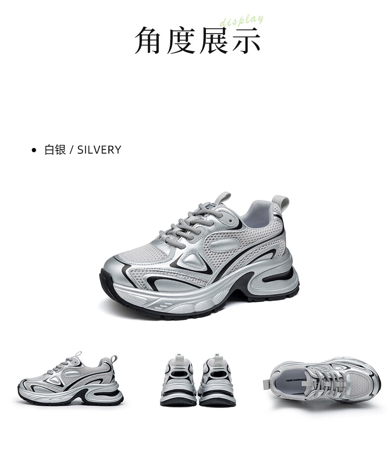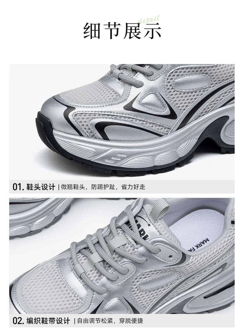 马克华菲老爹鞋女厚底增高透气网孔运动鞋时尚百搭舒适轻便鞋 白银 37