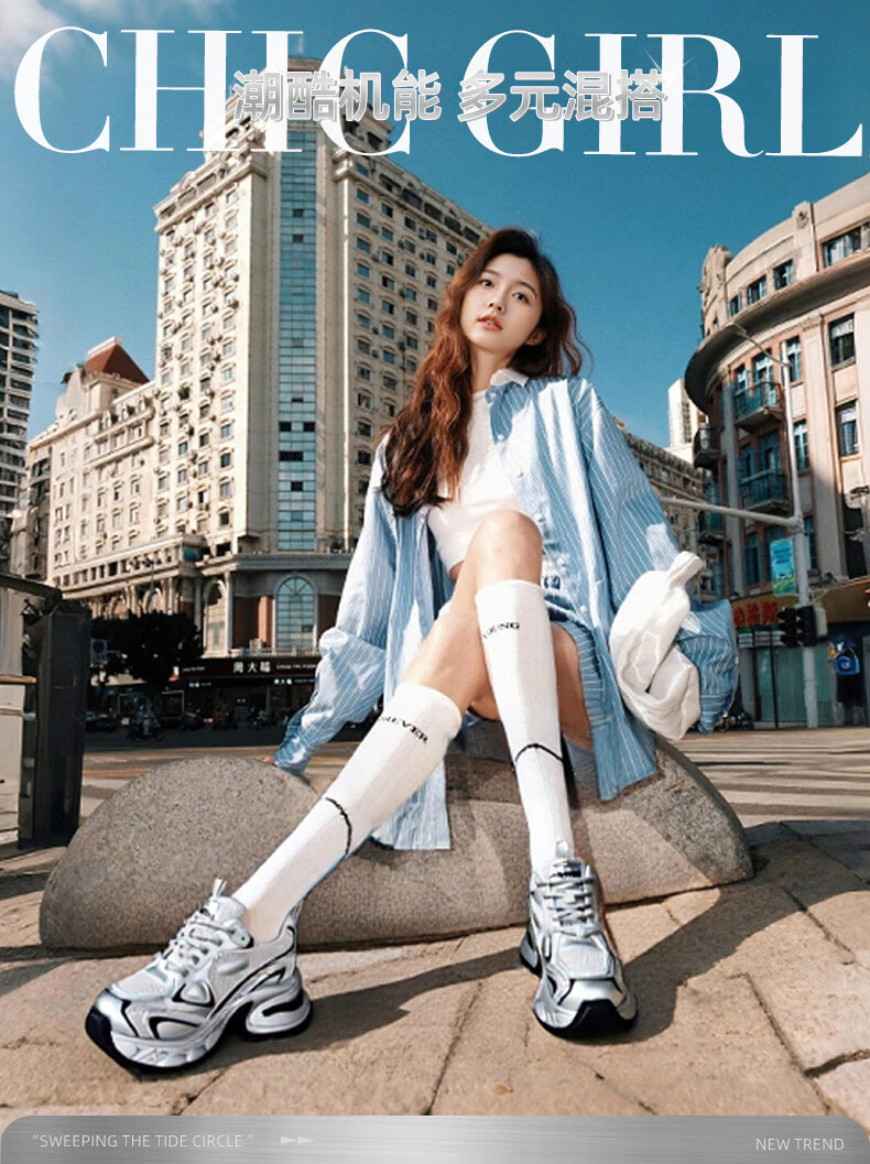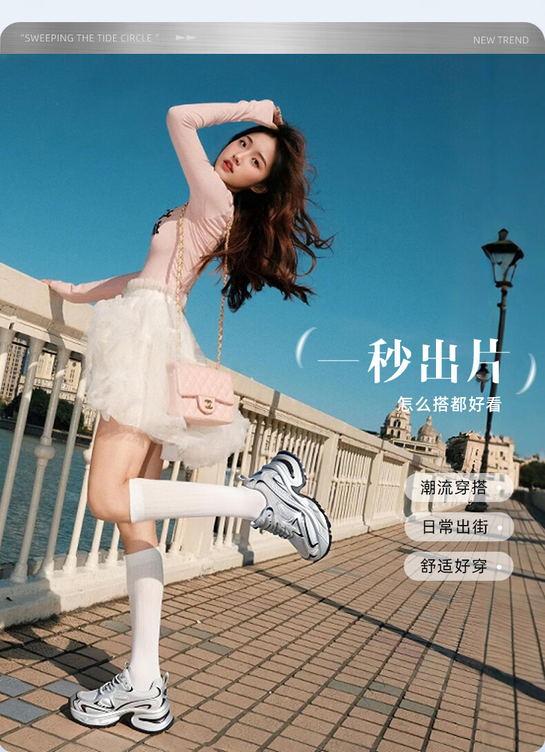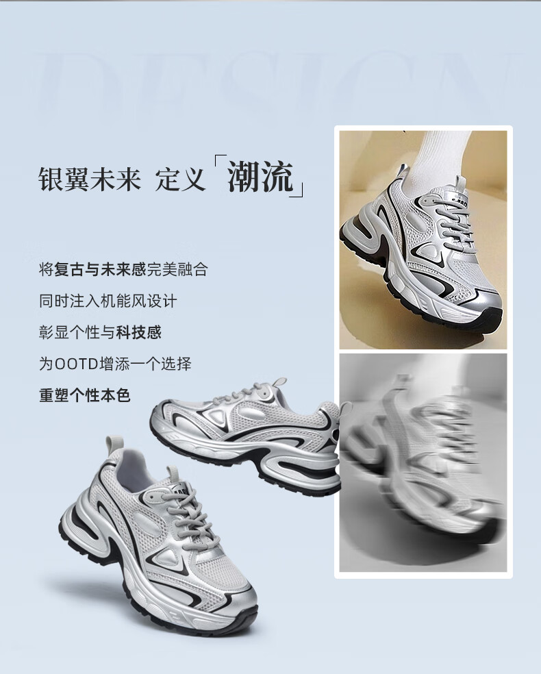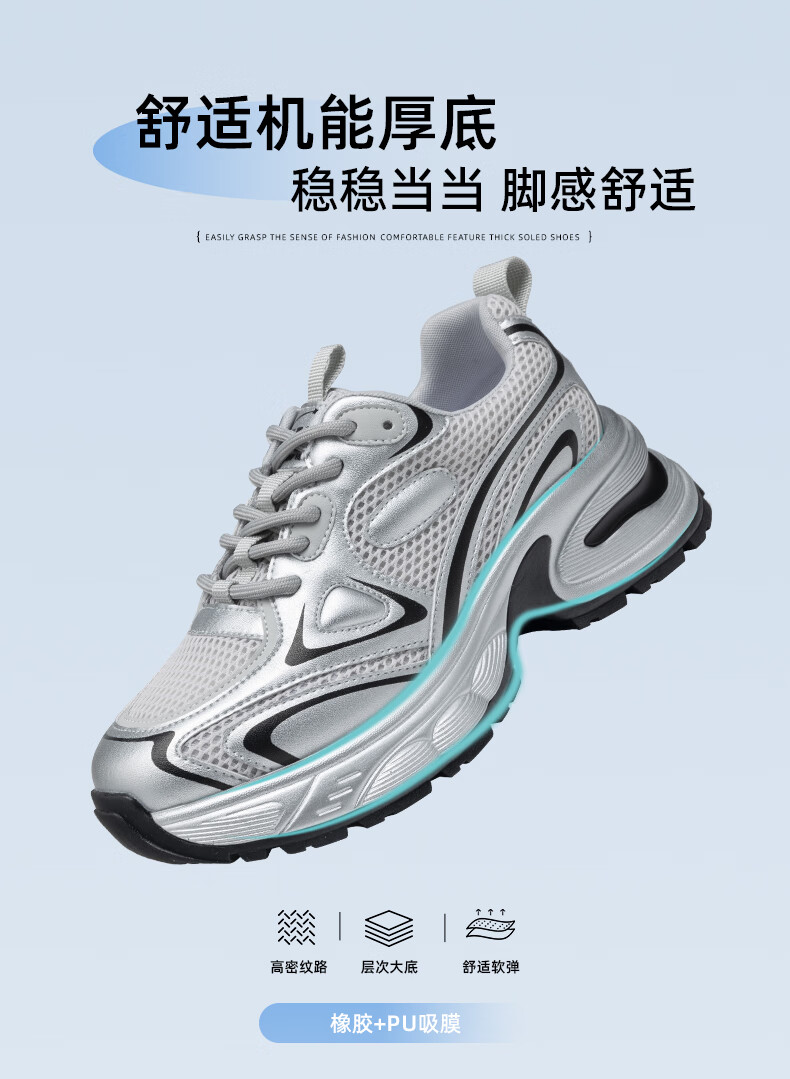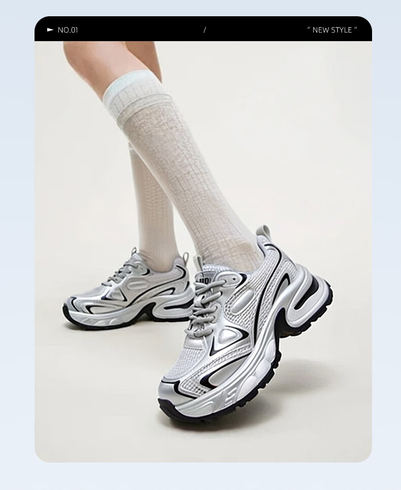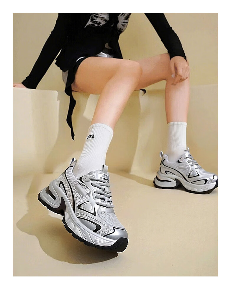 马克华菲老爹鞋女厚底增高透气网孔运动鞋时尚百搭舒适轻便鞋 白银 37