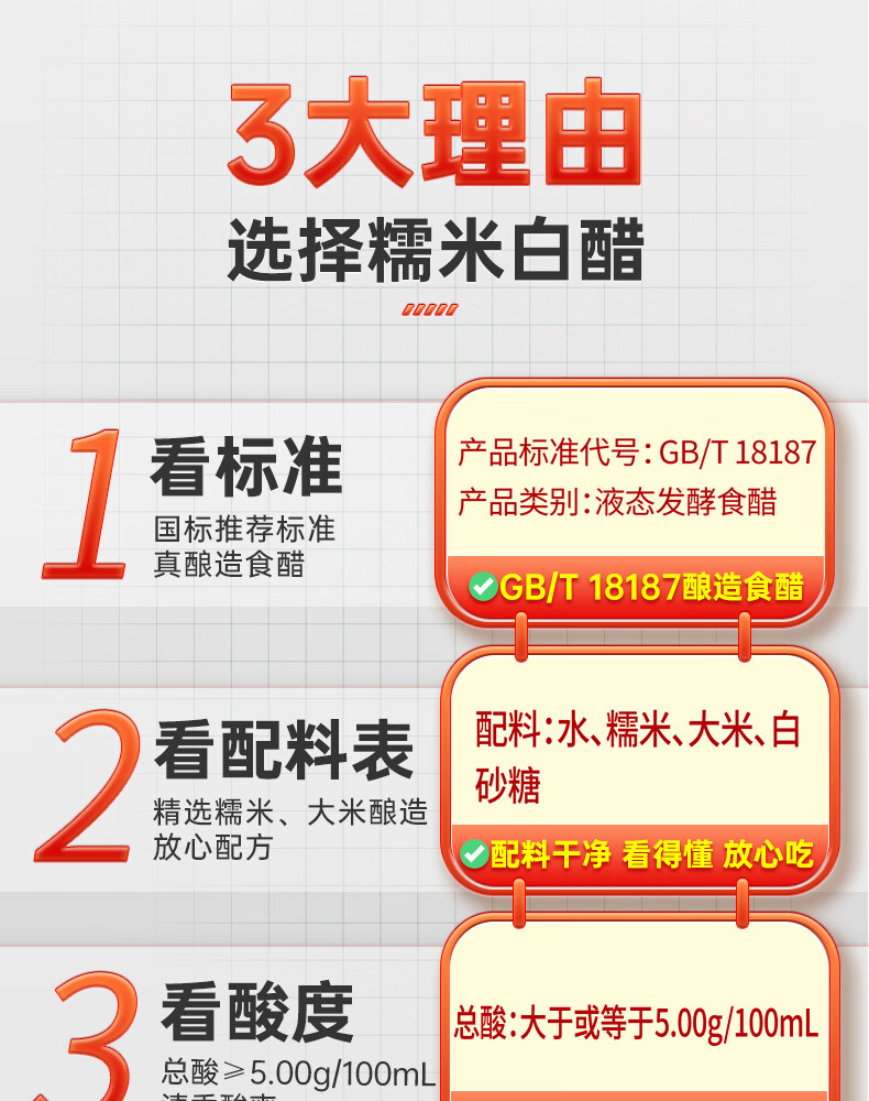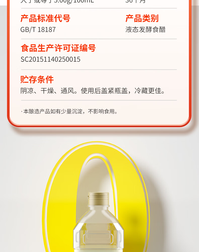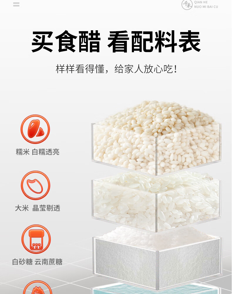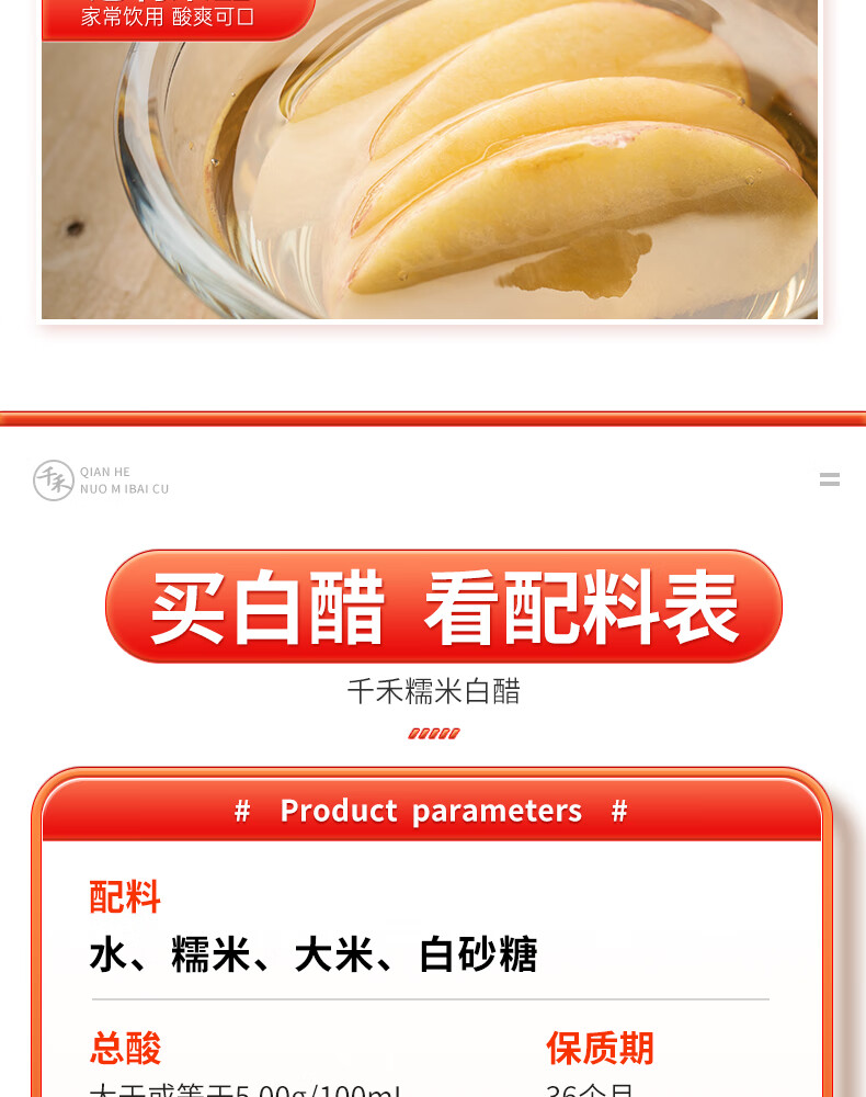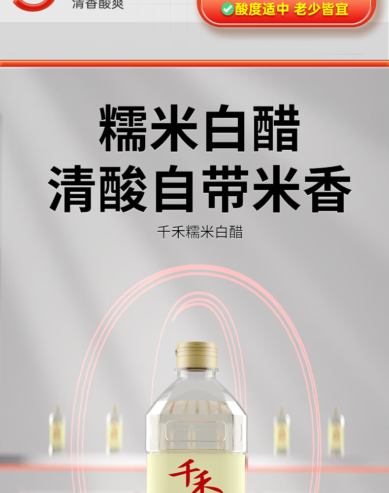 千禾糯米白醋1L 5度【0添加】酿造大米醋泡菜炒菜食用