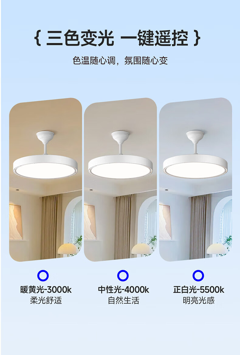欧普隐形扇叶多档可调高显色低噪风扇灯 【呵护光+智控】36寸46瓦-1级能效