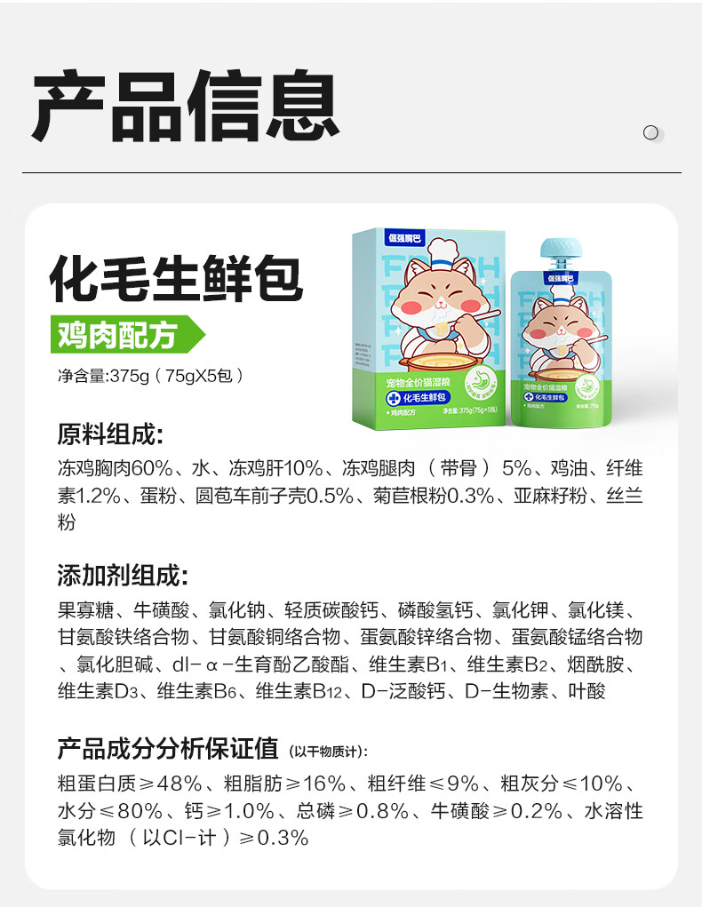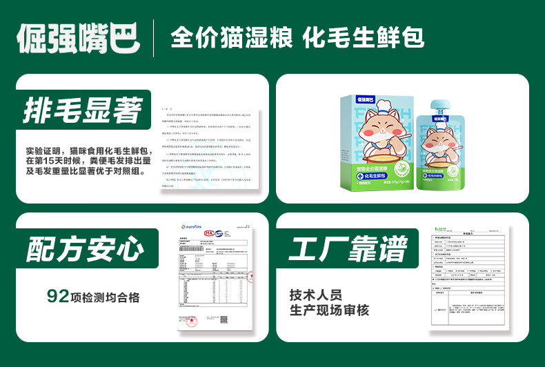 倔强嘴巴【老爸抽检】化毛排毛生鲜包猫主食湿粮 餐包轻松吐毛75g试吃装