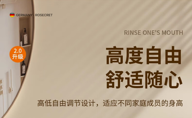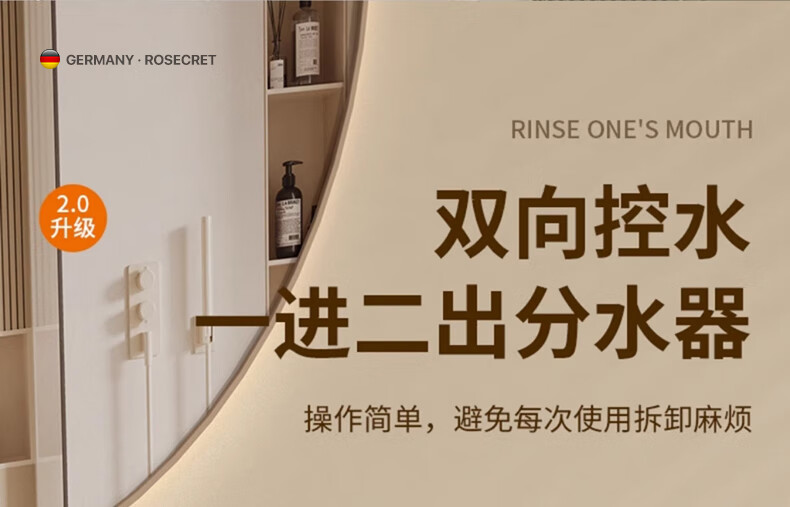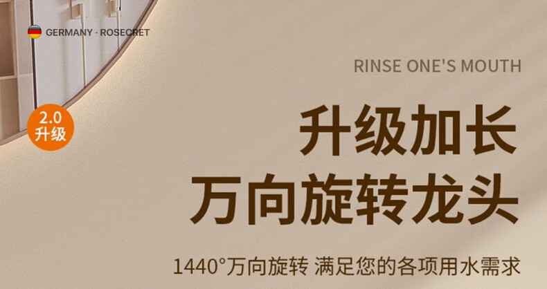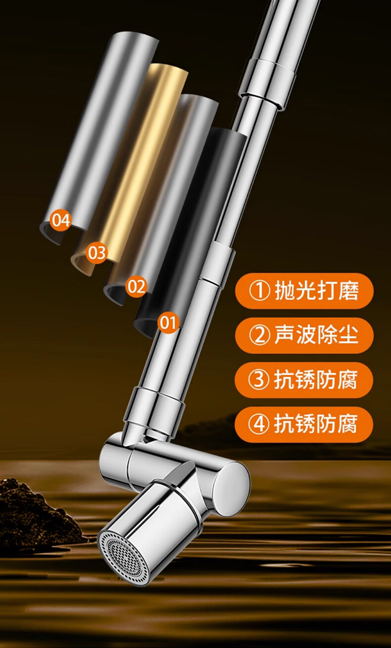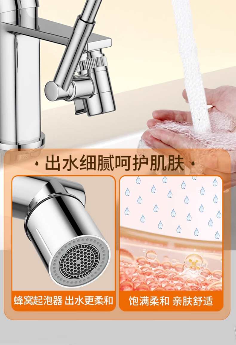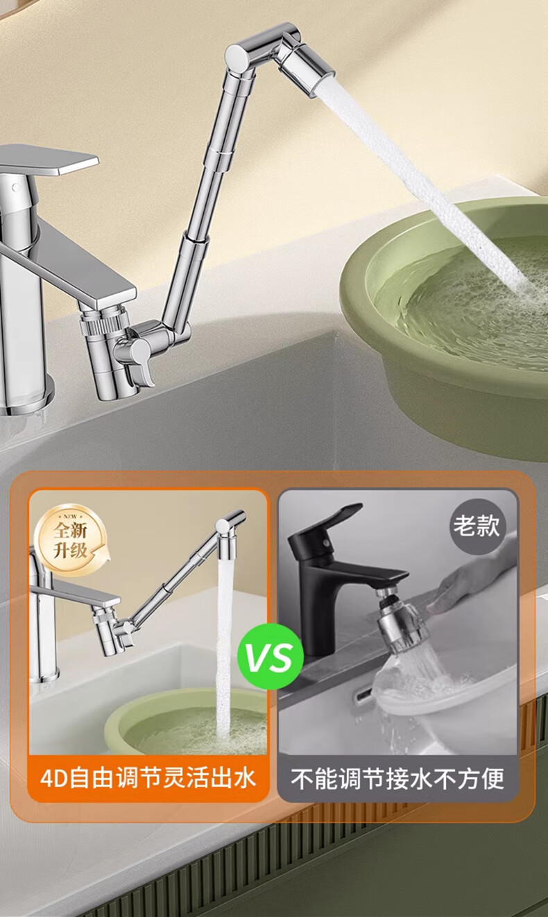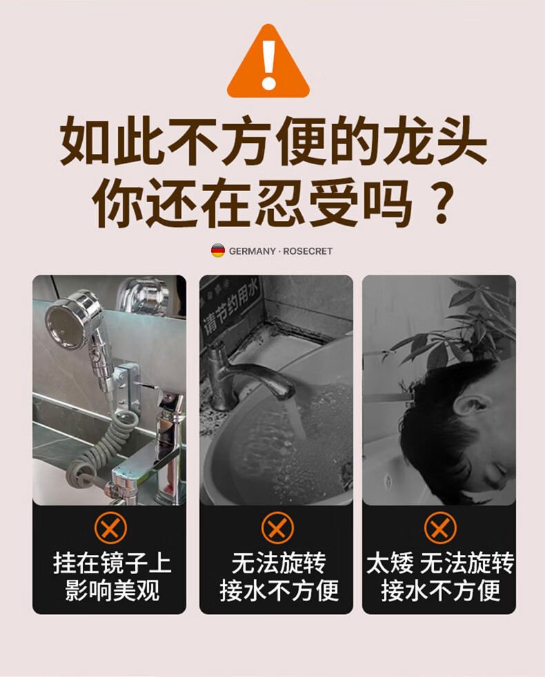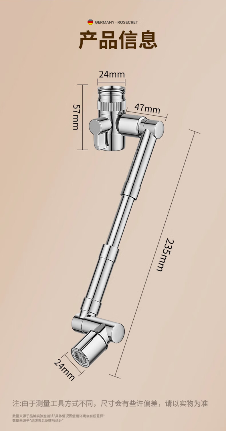 Rosecret【德国】面盆水龙头延伸器万向旋转伸缩机械臂增压防溅通用转接头 加长两档水龙头起泡器【亮银色】 通用安装丨一进二出洗头神器
