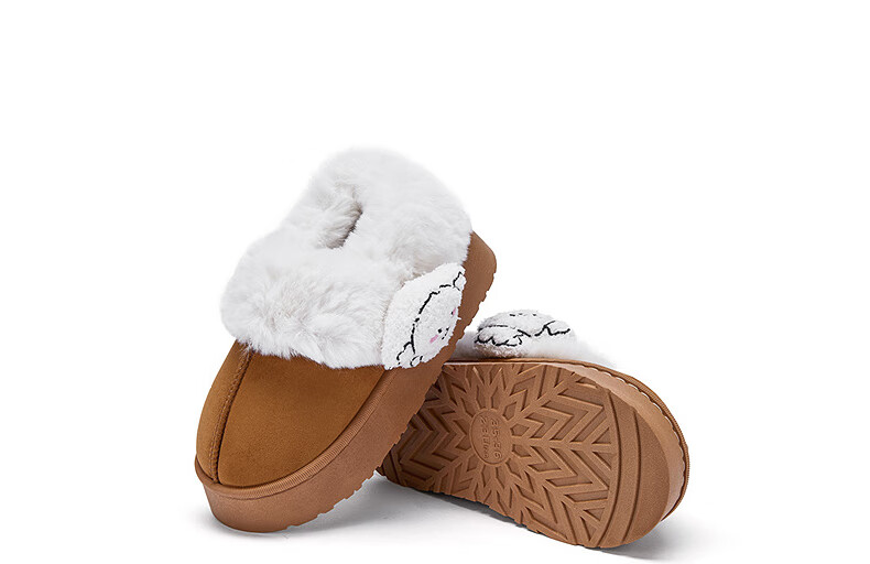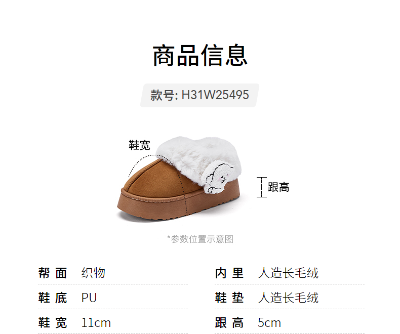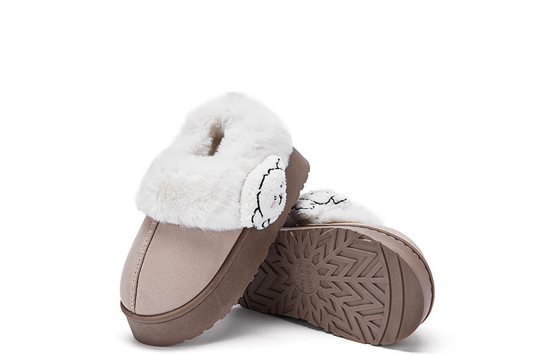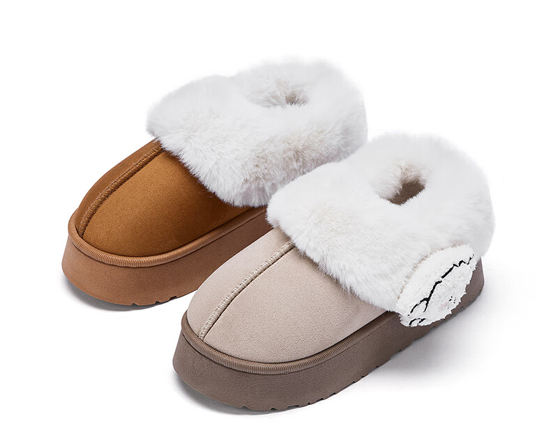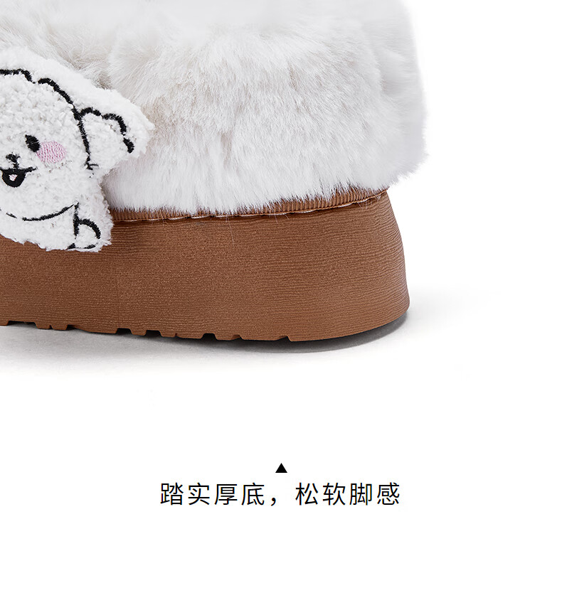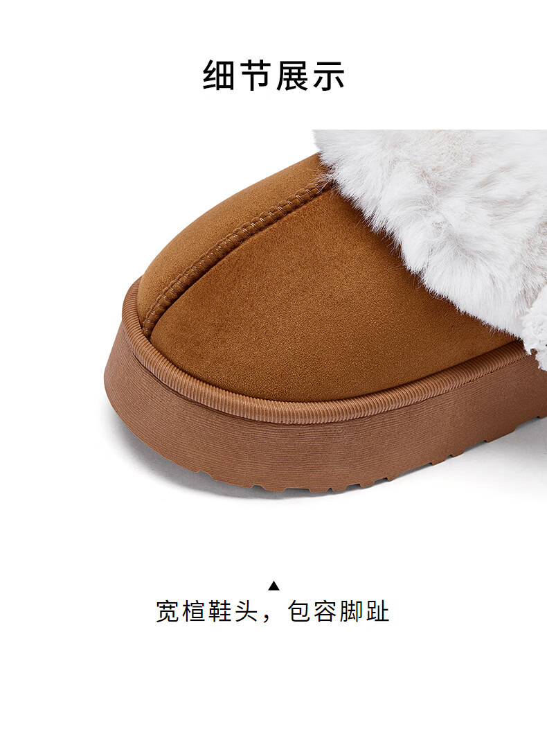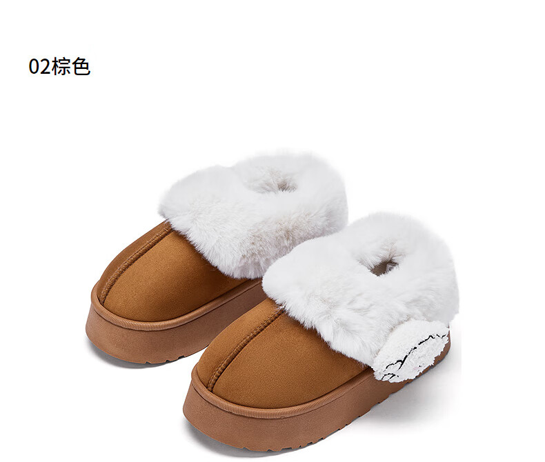 热风【商场同款】【晚心联名】厚底雪地靴居家女鞋2025年新款保暖棉鞋 02棕色 39-40 L